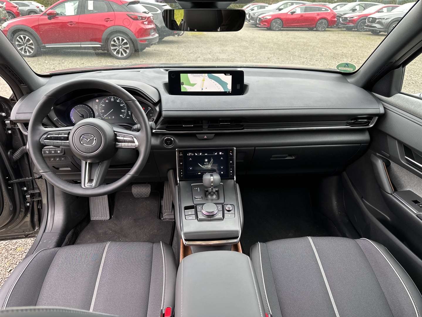ebedachPremium-Paket BOSE® Sound-System mit 12 Lautsprechern, USB-Anschluss, Digitalradio-Tuner (DAB+) und Mazda Connect mit 8,8 Zoll (22,4 cm) Display Aufmerksamkeitsassistent (DM) Erweiterte Stauassistenzfunktion (CTS) Rückfahrkamera Frontüberwachung (FCTA) Nur i.V.m. Premium-Paket: Ausparkhilfe mit Notbremsassistent für den hinteren Querverkehr (SBS-RC) 360° MonitorKomfortblinkfunktionTyp2-Ladekabel (13A, Länge: 8m) für Haushaltssteckdose (Mode2) ; Typ2-Ladekabel für Ladestationen (Mode3, Länge: 4m)Beifahrerairbag-DeaktivierungSchwarzer Dachhimmel mit SonnenbrillenhalterungKonnektivitätsfunktionen via MyMazda-App (Ladestatus-Anzeige, Fernbedienung der Klimatisierungsautomatik u.v.m.)DC-LadeanschlussLogIn: Schlüsselloses ZugangssystemGurtstraffer mit Gurtkraftbegrenzer, vorne und hinten (außen)Apple CarPlay und Android Auto®Mittelarmlehne, vorneLED-Rückleuchten und -BlinkerElektrische Fensterheber vorneLicht- und RegensensorAußenspiegel automatisch abblendend (Fahrerseite)Dynamische Stabilitätskontrolle (DSC) mit Traktionskontrollsystem (TCS)Auto Door Locki-Activ Display im zentralen Rundinstrument für erweiterte Geschindigkeitsanzeigen und Touring-Computer3. Bremslicht, hochgesetztMazda SD-NavigationssystemMatrix LED-LichtsystemAdaptive Geschwindigkeitsregelanlage (MRCC) mit StauassistenzfunktionLenkradbedientasten für Audioquelle und Lautstärke, Freisprechanlage und Geschwindigkeitsregelanlage, Lenkradpaddels zur Einstellung der 5 RekuperationsstufenAußenspiegel mit integrierten SeitenblinkernAdvanced Head-up DisplayAirbags: Frontairbags, Kopf-/ Schulter-Airbags vorne und hinten; Seitenairbags vorne, Knie-Airbag für FahrerWärmepumpeColorverglasung, wärmedämmendLenksäule höheneinstellbarNotbremsassistent (SBS) mit Fußgänger-/ Radfahrererkennung und KreuzungsfunktionAlarmanlageLED-Innenraum- und KofferraumbeleuchtungHeck- und Seitenscheiben hinten abgedunkelt; D-Säulenverkleidung mit Mazda-SchriftzugMobilitäts-Kit mit Kompressor und ReifendichtmittelMake-up-Spiegel für Fahrer und BeifahrerEnteiserfunktion für ScheibenwischerReifendruckkontrollsystemISOFIX® Kindersitzhalterung für die äußeren Sitze, hintenMüdigkeitserkennungWegfahrsperre, elektronischAVAS Sound-Emulator (Acoustic Vehicle Alertiig System, rechtlich erforderlich)Lenkradheizung für das 3-Speichen-Sport-LederlenkradBeheizte BatterieElektronische Parkbremse mit Auto-Hold-FunktionWarnleuchte und -ton für nicht angelegte SicherheitsgurteSpurhalteassistent (LAS) & Spurwechselassistent (BSM) mit LenkunterstützungFensterleisten mit HochglanzfinishRahmenloser Innenspiegel, automatisch abblendendAußenspiegelabsenkung beim Rückwärtsfahrenasschiebedach, elektrischLederschaltknaufElektronische ParkbremseElektrische Fensterheber vorne, mit KomfortfunktionKlimatisierungsautomatik mit 7-Zoll (17,8cm) Touch-Panel-DisplayBerganfahrassistentVerkehrszeichenerkennung (TSR)Rücksitzlehnen im Verhältnis 60:40 geteilt klappbarE-Call NotrufsystemAntiblockiersystem (ABS) mit elektronischem Bremsassistent (EBA); Elektronische Bremskraftverteilung (EBD); Notbrems-Warnblinkautomatik (ESS)ScheinwerferreinigungsanlageAuswahl zwischen drei InnenraumkonzeptenParkhilfe: Ausparkhilfe (RCTA), Rückfahrkamera und Einparkhilfe, vorne und hinten3-Punkt-Automatikgurte für alle Sitzplätze, vorne mit HöheneinstellungStrom-Steckdose (150W)Mi-Drive Fahrmoduswahl: Normal, EV, ChargeStrom-Steckdose 1.500W (nur für R-EV erhältlich)Wie leicht fällt es dir, diese Seite zu nutzen?