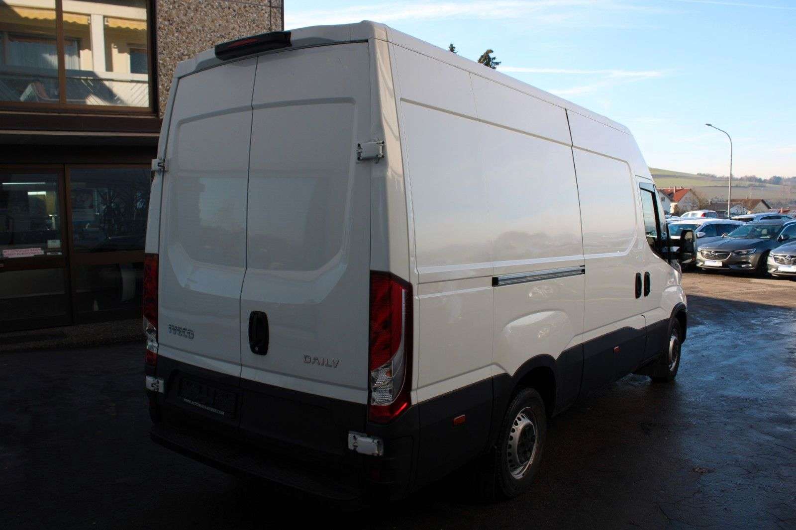 sstattung:Ablagefach auf Armaturentafel mit USB-AnschlussAudiosystem: Digitales Audiosystem (DAB) mit USB und Freisprecheinrichtung BluetoothHecktür (Öffnungswinkel 260 / 270 Grad)KlimaanlageLenksäule (Lenkrad) höhen-/längsverstellbarReserverad in FahrbereifungReserveradhalter zwischen BodenlängsträgerSchmutzfänger vorn und hintenAudio-/Telefonbedienung am LenkradKältekompressor 170 ccmAusstattung:Anhänger-Stabilisierungs-Programm (TSM)Anhängersteckdose VorbereitungAnti-Blockier-System (ABS)Antriebs-Schlupfregelung (ASR)Antriebsart: HeckantriebArmaturentafel Komfort blauAusführung: S-ReiheAuspuffrohr seitlich linksAußenspiegel elektr. verstell- und heizbarBremsassistentDeckenleuchte im LaderaumElektr. BremskraftverteilungElektron. Stabilitäts-Programm (ESP)Fahrassistenz-System: Berganfahr-Assistent (AAS)Federung Hinterachse: ParabelFederung Vorderachse: QuerblattfederFensterheber elektrischFrontscheibe und Seitenscheiben getöntGenerator 210 AGeschwindigkeits-Begrenzeranlage 160 km/hGetriebe 6-GangHarnstofftank (AdBlue): 20 Ltr.Karosserie/Aufbau: Kasten Hochraum ÜberhangKraftstofftank: 70 Ltr.Kühlergrill blauMotor 2,3 Ltr. - 100 kW DieselRadstand 3520 mmRußpartikelfilterSchadstoffarm nach Abgasnorm Euro 6d-TempSchiebetür Lade-/Fahrgastraum rechtsSitze im Fahrerhaus: BeifahrerdoppelsitzTagfahrlichtWartungsanzeigeWegfahrsperreZentralverriegelung mit FernbedienungZul. Gesamtgewicht 3,50 tOriginal Fahrzeug Farbe: WHITE IC 194Diese Daten werden aus der DAT Datenbank übernommen. Es kann keine Haftung für die Vollständigkeit und Richtigkeit übernommen werden.nstiges:Ein VorbesitzerScheckheftgepflegtGepflegtes Nichtraucher-Fahrzeug