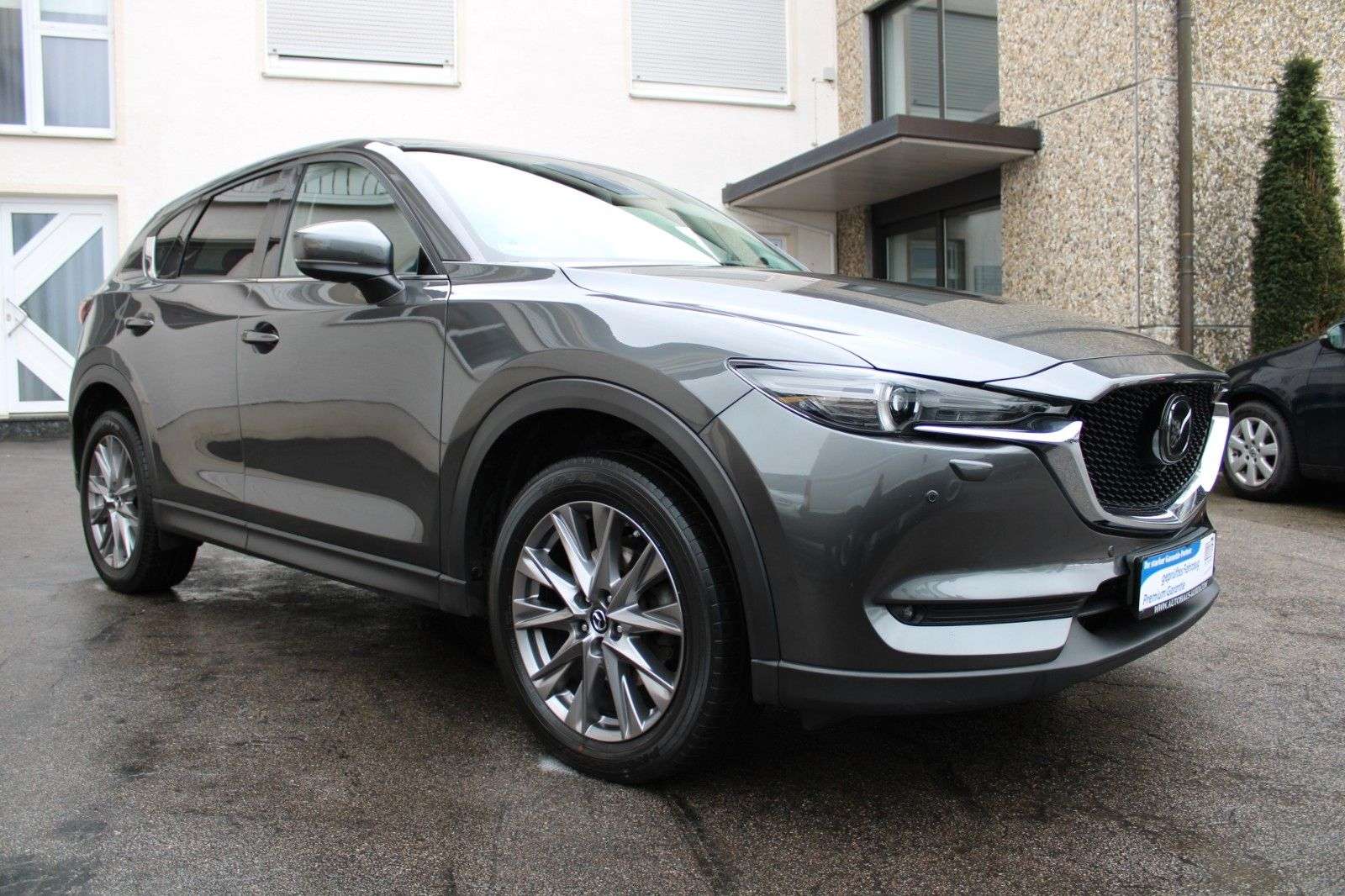 sstattung:Metallic-LackierungTechnik-PaketHead-up-Display AdvancedAdaptive Geschwindigkeits-Regelanlage (Tempomat) mit Pre-Crash-SystemFahrassistenz-System: StauassistentAusstattung:10 Lautsprecher3. BremsleuchteAbgasanlage 2-flutigActive Info-Display (Instrumentenanzeige digital)Airbag Fahrer-/BeifahrerseiteAirbagsystem Beifahrerseite abschaltbarAnti-Blockier-System (ABS)Antriebsart: AllradantriebAudiobedienung am LenkradAudiosystem: Radio mit CD-PlayerAusstattungs-Paket: I-ActivesenseAußenspiegel elektr. anklappbarAußenspiegel elektr. verstell- und heizbar, beideAußenspiegel lackiertBlinkleuchte in Außenspiegel integriertBremsenergierückgewinnung i-ELOOPDachspoiler WagenfarbeDynamische Stabilitätskontrolle (DSC)Einparkhilfe vorn und hintenEinschaltautomatik für FahrlichtElektr. BremskraftverteilungErweiterte Smartphone-Integration (Apple CarPlay und Android Auto)Fahrassistenz-System: Auspark-AssistentFahrassistenz-System: BerganfahrhilfeFahrassistenz-System: Fahrdynamikregelung G-Vectoring ControlFahrassistenz-System: Notbrems-AssistentFahrassistenz-System: SpurhalteassistentFahrassistenz-System: Spurwechselassistent Plus (BSM)Fahrmodusschalter (Mi-Drive)Fensterheber elektr. vorn und hinten mit KomfortschaltungFernentriegelung HeckklappeFreisprecheinrichtung mit Voice-Control und BluetoothGetriebe Automatik - (6-Stufen)Gurtstraffer hinten außenGurtstraffer vornHandschuhfach beleuchtetHeckklappe/-Deckel elektr. betätigt (öffnen + schliessen)Heckleuchten LEDInnenspiegel mit AbblendautomatikInternetbasierende DiensteIsofix-Aufnahmen für KindersitzKarosserie: 5-türigKennzeichenbeleuchtung LEDKlimaautomatikKopf-Schulter-Airbag vorn und hintenLendenwirbelstütze Sitz vorn linksLenkrad (Sport/Leder, 3-Speichen)Lenkrad heizbarLenksäule (Lenkrad) mech. Höhen-/LängsverstellungLeseleuchte vornLichtassistent (Coming Home, Leaving Home)Log-in-SystemMake-up-Spiegel beleuchtetMatrix-LED-Scheinwerfer inkl. Fernlichtassistent mit adaptiver Lichtverteilung (ALH)Mittelarmlehne hintenMotor 2,2 Ltr. - 135 kW Turbodiesel KATMulti-CommanderMulti-Info-Display (Farbe)Navigationssystem: SD-Karten-NavigationNebelscheinwerfer LEDNotbrems-Warnblinkautomatik (ESS)Parkbremse elektrischRadioempfang digital (DAB)Radstand 2700 mmReifendruck-KontrollsystemRußpartikelfilterRücksitzlehne geteilt/klappbarSchadstoffarm nach Abgasnorm Euro 6d-TEMPSchalt-/Wählhebelgriff LederScheibenwischer mit RegensensorScheibenwischerenteiser vornScheinwerfer-Reinigungsanlage (SRA)Seitenairbag vornSeitenscheiben hinten und Heckscheibe abgedunkeltSitzbezug / Polsterung: StoffSitze vorn höhenverstellbarSitzheizung vorncial Media Integration (Onlinedienste / Apps)und-System BOSESprachsteuerung, erweiterter UmfangStart-Stop-KnopfStart/Stop-Anlage (i-Stop)Tagfahrlicht LEDTouchscreen-Farbdisplay (7,0 Zoll)Türgriffe außen WagenfarbeUSB-Anschluss hintenUSB-Anschluss und AUX-IN-AnschlussWegfahrsperre (elektronisch)Wärmeschutzverglasung getöntZentralverriegelung mit FernbedienungFahrassistenz-System: Verkehrszeichenerkennung (TSR)Head-up-DisplayKamerasystem 360°Fahrassistenz-System: City-Notbremsfunktion Plus, rückwärts (SCBS R)Fahrassistenz-System: Müdigkeitserkennungs-Sensor (DAA)Original Fahrzeug Farbe: Machine GrayDiese Daten werden aus der DAT Datenbank übernommen. Es kann keine Haftung für die Vollständigkeit und Richtigkeit übernommen werden.nstiges:HU bis 11.2024Ein VorbesitzerZwei SchlüsselScheckheftgepflegt bei MazdaGepflegtes Nichtraucher-Fahrzeug