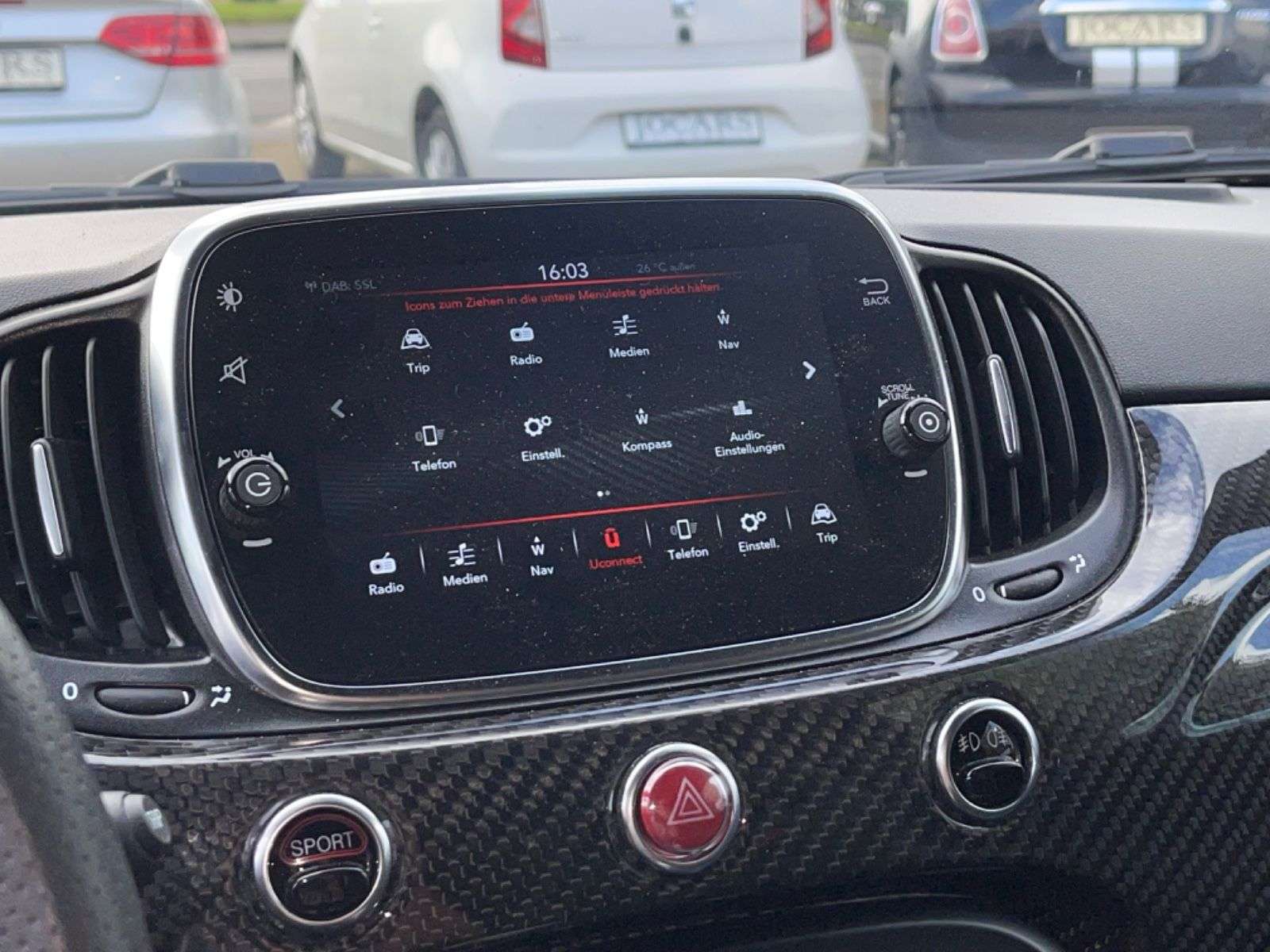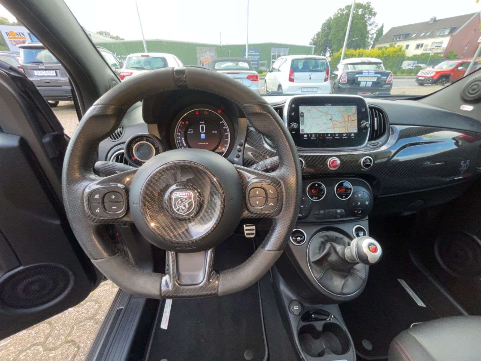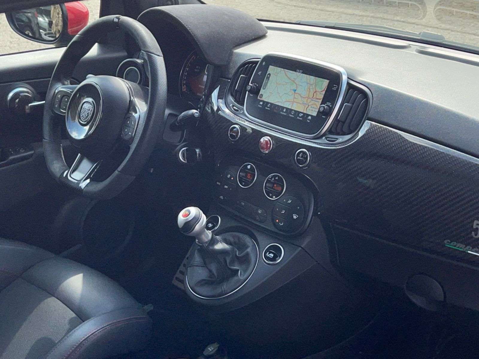 sstattung:Antenne in Seitenfenster integriert, Einparkhilfe hinten, Sicherheitsgurte, Farbe nach Wahl, und-System Beats Audio, Urban-PaketWeitere Ausstattung:Adaptives Dämpfersystem an der Hinterachse (Frequenzy Selective Damping), Adaptives Dämpfersystem an der Vorderachse (Frequenzy Selective Damping), Airbag Fahrer-/Beifahrerseite, Außenspiegel elektr. verstell- und heizbar, beide, Bremsanlage: Brembo, Bremssättel Rot lackiert, Elektr. Bremskraftverteilung, Infotainment-System: UConnect mit MP3-Player, Navigationssystem und DAB Radioempfang (Touchscreen 7"), Innenausstattung: Einlagen Armaturenbrett, Schwarz Matt, Karosserie: 3-türig, Kit ESTETICO Abarth (Design Set), Klimaautomatik, Knieairbag Fahrerseite, Kopf-Airbag-System vorn und hinten, Lenkrad (Leder/Alcantara, mit Carbon-Einsatz), Lenksäule (Lenkrad) höhenverstellbar, LM-Felgen, Luftfilter: Sportluftfilter, Modellpflege, Motor 1,4 Ltr. - 132 kW, Multifunktionsanzeige mit Farbdisplay, Reifen-Reparaturkit, Rennsportsitze Kunstleder / Carbonblende, Schadstoffarm nach Abgasnorm Euro 6d-TEMP, Seitenairbag vorn, Seitenschweller Wagenfarbe, Smartphone Schnittstelle (Apple CarPlay & Android Auto), Sport-Auspuffanlage Edelstahl (Akrapovic) Endrohre Carbon, Steckdose (12V-Anschluß) im Armaturenbrett, Tankdeckel Aluminium, Uni-Lackierung (nderfarbe), Verglasung getönt