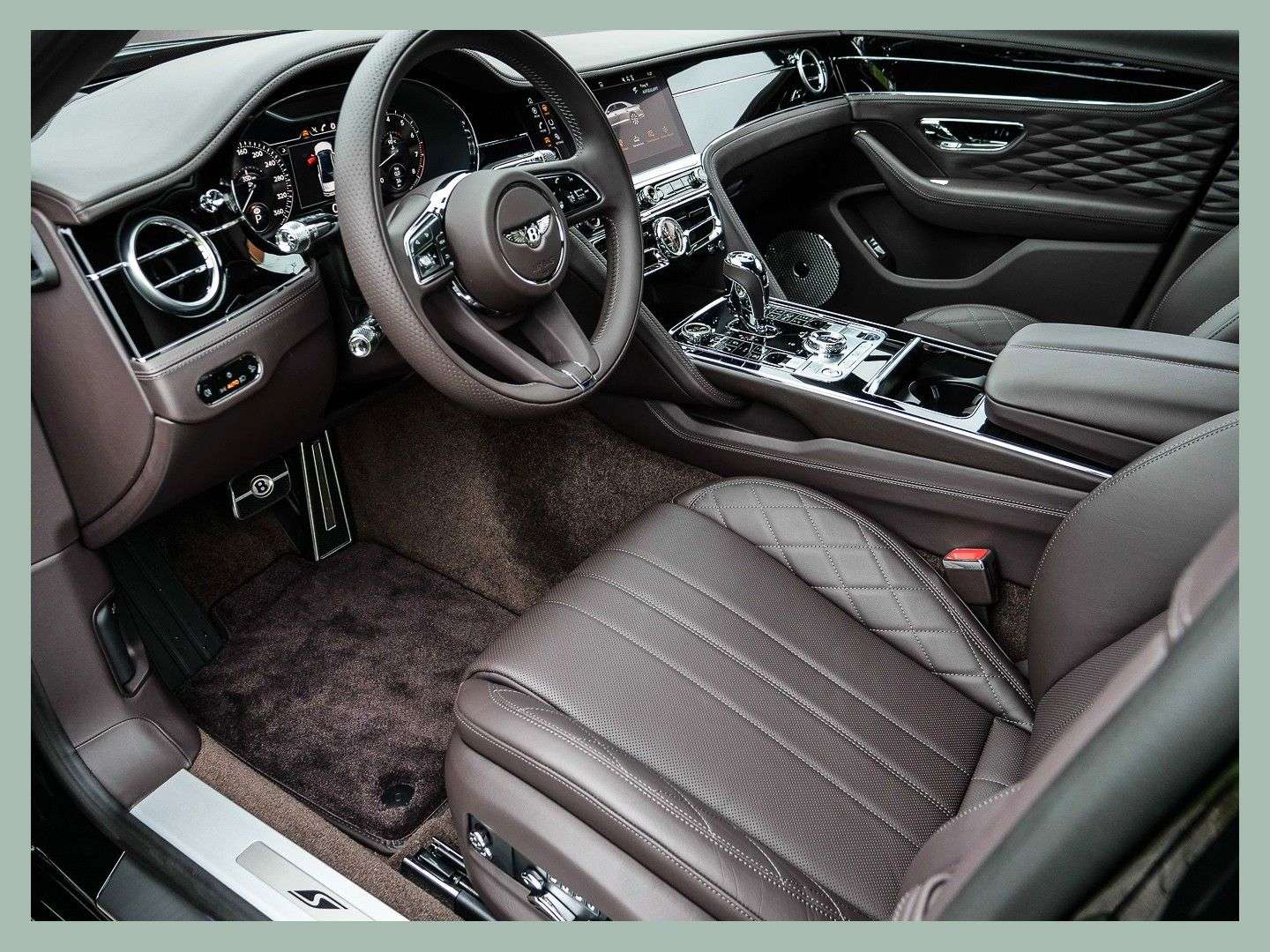 des Fahrzeuges: Münster-HiltrupBentley Flying Spur S V8VorführfahrzeugFarbkombination:Außenfarbe: Mitnight Emerald (dunkelgrün)Hauptleder: Burnt Oak (braun)Furnier: Piano BlackSonderausstattung:22" Leichtmetallfelgen im 10- Speichen-S-Design, schwarz lackiertselbstnivellierende Radnaben der Felgen by MullinerTouring Specification- ACC - Abstandregeltempomat- Kollisionswarnungssystem „Bentley Safeguard Plus“- Head-Up Display- Spurhalteassistent- Nachtsichtassistent „Night Vision“- auassistent „Traffic Assist“PanoramadachSitze und Türeinlagen in Leder und Diamantgestepptes LederAmbientebeleuchtung inkl. Beleuchtete EinstiegsleisteExtended Range Lackierung in "Midnight Emerald"3-Speichen Lederlenkrad, 1-farbig, beheiztColour SpecificationLED Bodenbeleuchtung mit Bentley-Emblem vor Türendunkel getönte "Flying B" Kühlerfigurbelederter Dachhimmel (Main-Hide)Chromstreifen im Armaturentafelfurnier und in den TürfurnierenSportpedalerie"Naim for Bentley" Highend AudiosystemRotierendes Display, 3-fachMulliner Tankverschluss und ÖleinfülldeckelandheizungGaragentoröffner, 3-fachBatterieladegerät...Änderungen, Zwischenverkauf und Irrtümer vorbehalten.