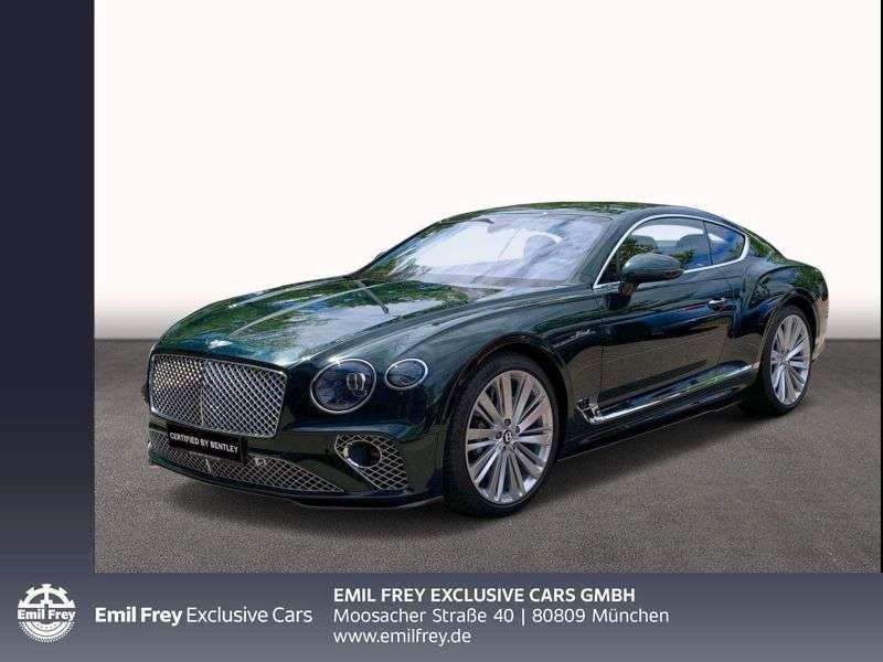 ank für Ihr Interesse an unseren exklusiven Fahrzeugen und Ihrem virtuellen Besuch bei Bentley München.Wir fühlen uns sehr geehrt, dass Sie sich bei uns nach Ihrem neuen Fahrzeug umsehen.Als offizieller Bentley-Händler verfügen wir über ein umfangreiches Angebot an wunderschönen Neu- & Vorführwagen, sowie Gebrauchtfahrzeugen, die nach Herstellervorgaben geprüft sind und angeboten werden.Wir bieten Ihnen hier einen Bentley New Continental GT Speed in der sportlichen & sehr eleganten Farbkombination Cumbrian Green / Saddle-BelugaDas Fahrzeug ist sehr gepflegt, unfallfrei und hat einen Vorbesitzer.Die Mehrwertsteuer ist nicht ausweisbar.Dieses Fahrzeug hat folgende Extra- / Sonderausstattung:Außenfarbe: Cumbrian GreenInnenfarbe: Saddle-Beluga22" Felgen, lackiert in silber3-Speichen-Lederlenkrad, zweifarbig & beheizt, mit geprägtem Lederadaptive GeschwindigkeitsregelanlageAir IonizerBentley Premium-Sound-System by NAIMBentley Rotating DisplayCarbon Ceramic BrakesFrontscheibe, beheizt hochflorige Fußmatten, vorn, mit Kontrastnähteninduktive Handy-Lademöglichkeit, vornInnenhimmel in LederKomfort-Sitze, vorn, inkl. MassagefunktionKontrastnähte & Sitzkeder im Farbton "Beluga"Kühlergrill im unteren Bereich des vorderen Stoßfängers, verchromtLackierung im Farbton "Cumbrian Green"Leather SpecificationLED-Welcome-Lamps by MullinerLuftauslässe im Innenraum mit Diamond KnurlingMood-Lighting-AmbientebeleuchtungSicherheitsgurte im Farbton "Saddle"Styling SpecificationTouring SpecificationVeneer in "Dark Stained Burr Walnut over Grand Black"Welcome LightingZierleiste auf dem Veneer, verchromtWir freuen uns auf Ihren Besuch in unserem Showroom und beraten Sie gern.Sie erreichen uns natürlich auch per Telefon oder E-Mail.Eingabefehler, Irrtum und Zwischenverkauf vorbehalten!Die Fahrzeugbeschreibung dient lediglich der allgemeinen Identifizierung des Fahrzeuges und stellt keine Gewährleistung im kaufrechtlichen Sinne dar.Ausschlaggebend sind einzig und allein die Vereinbarungen im Kaufvertrag oder in der Auftragsbestätigung.Den genauen Ausstattungsumfang erhalten Sie von unserem Verkaufspersonal.Bitte kontaktieren Sie uns.Selbstverständlich bieten wir Ihnen auch individuelle Finanzierungen oder Leasingangebote an!Unsere Öffnungszeiten sind: Wochentags von 8.30 - 18.30 Uhr und samstags von 10 - 14 Uhr, jeweils durchgehend.Besuchen Sie unsere Homepage: www.muenchen.bentleymotors.comEin Unternehmen der Emil Frey Gruppe Deutschland.