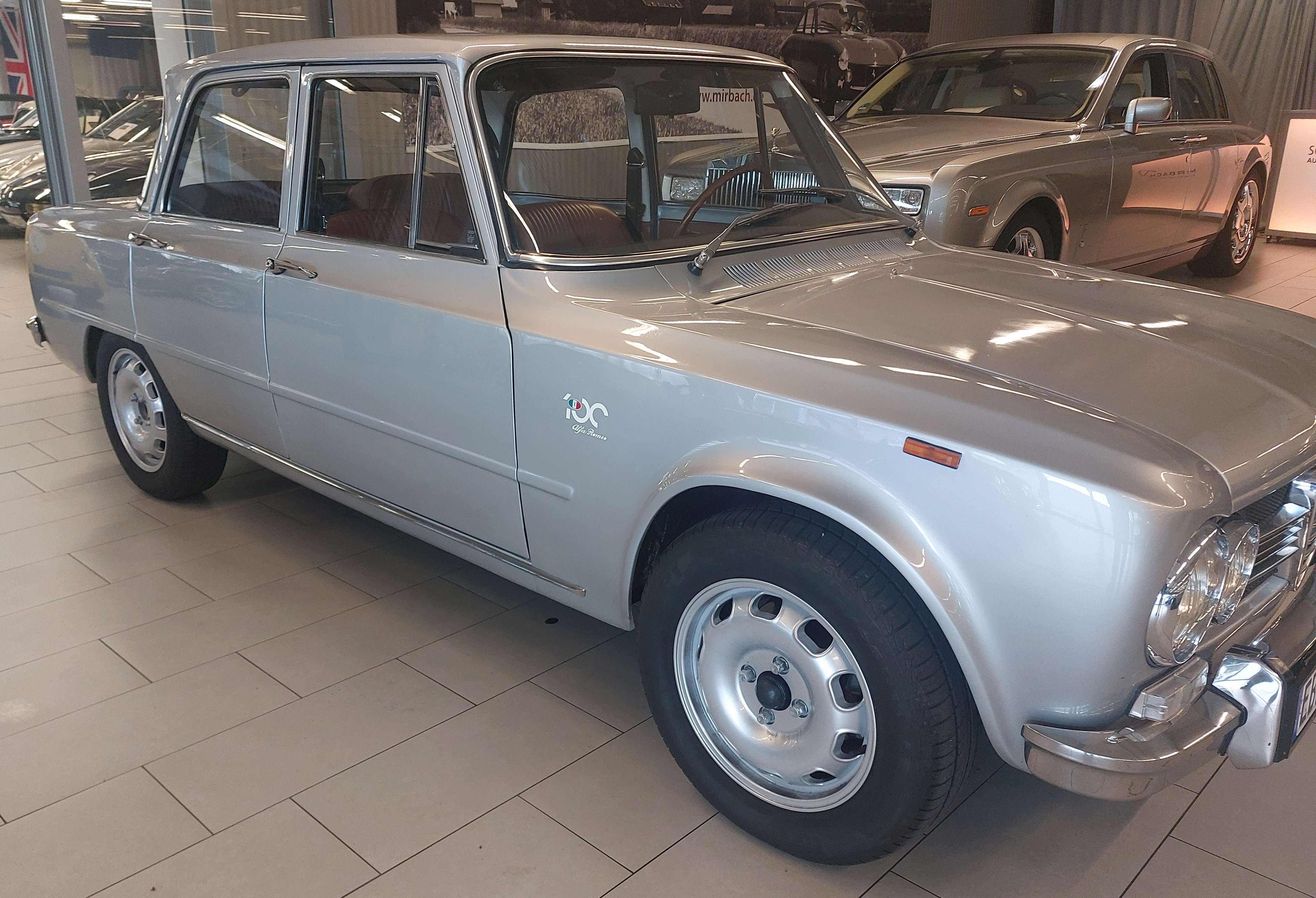 r 2023 / 2024 wurde die Technik im Wagen umfassend revidiert und restauriert, dazu folgende Einzelheiten:Motor überholt und optimiert, dafür:Motor komplett zerlegt, gereinigt und überprüft. Zylinderkopfgeplant, Ventilsitze erneuert, Ventile eingeschliffenMotor mit neuen Teilen zusammengebautSteuerzeiten und Ventile eingestelltAlle Dichtungen erneuertPleuel anpassen lassenDazu wurden u.a. folgende Neuteile verbaut:SPORTKOLBEN, ZYLINDERLAUFBUCHSEN, MOTORDICHTSATZ, ZKD ALFA, HAUPTLAGERSATZ, PLEUELLAGERSATZSATZ, SPORTNOCKENWELLE, VENTILFÜHRUNG, SCHWUNGRAD, STEUERKETTE UNTEN, STEUERKETTE MOTORAUFHÄNGUNG 1300-2000 NORD AUS, MOTORAUFHÄNGUNG 1300-2000 NORD EIN, ABDECKUNG BENZINPUMPEN, UMBAU BENZINPUMPE, SATZ KÜHLWASSERSCHLÄUCHE, VENTILFEDER SATZ, PLEUELMUTTER, KUPPLUNGSATZ, H SCHAFT PLEUELSATZ, SIMMERRING KW HINTEN, SIMMERING KW VORNE, ANLAUFSCHEIBE KETTENRAD, KEIL KETTENSPANNER, SCHRAUBE KETTENSPANNER, FEDER KETTENSPANNER, SATZ GUMMI REAKTIONSDREIECK, 123 VERTEILER ALFA, KURBELWELLE 1600 TAUSCH, SILIKONDICHTMITTEL, AUSLAßVENTIL, SATZ ANSAUGFLANSCHE ALU, WASSERPUMPE, SAUGROHR ALFA, STEHBOLZEN, SCHEIBE, HOSENROHRDICHTUNG, SICHERHEITSGURT GIULIA, 2-PUNKT SICHERHEITSGURT, BENZINFILTER, ÖLFILTER FT5682, ZÜNDKERZE BPR9EIX, ÖLDRUCKSCHALTER, HOCHLEISTUNGSGETRIEBEÖL, HEIZVENTIL 1.SERIE, HEIZZUG, DÜSENSATZ WEBERVERGASER, RÜCKZUGFEDER KIT Vergaserumbau auf Weber Vergaser (Originalvergaser undicht und schlechteinstellbar passend zu verbauten Komponenten)Motor eingefahrenÖlwechsel nach Einlaufen des MotorsHeizung in stand gesetzt, neues Heizungsventil eingebaut, dafür: Heizungskasten zerlegt, gereinigt und Heizungskühler gespült.123 Verteiler + Gurte für Alfa BertoneBremsflüssigkeit erneuert, dazu System entlüften.Kupplungsnehmerzylinder inkl. Anschlußschlauch gewechselt.Regler nach Herstellerangben eingestellt 2x Leitung, Kabelanschlüssel, Spannungsregler und D+ Klemme erneuert.Spannungsregler lackiert und restauriert, Löcher für Platzierunggebohrt. Scheibenwaschpumpe und Schlauchstück erneuert.Neue Bremsen verbaut---Probefahrt und Sichtprüfung des Fahrzeuges auf der Hebebühne sind selbstverständlich nach kurzer Absprache möglich.Als versierter Fachbetrieb verfügen wir über eine eigene Werkstatt.Unser erfahrenes und speziell geschultes Mechaniker-Team steht bereit für Service, Reparaturen und individuelle Änderungswünsche am Fahrzeug.Alle unsere Verkaufsfahrzeuge finden Sie gesammelt auf unserer homepage unter www.mirbach.deWir freuen uns auf Sie!