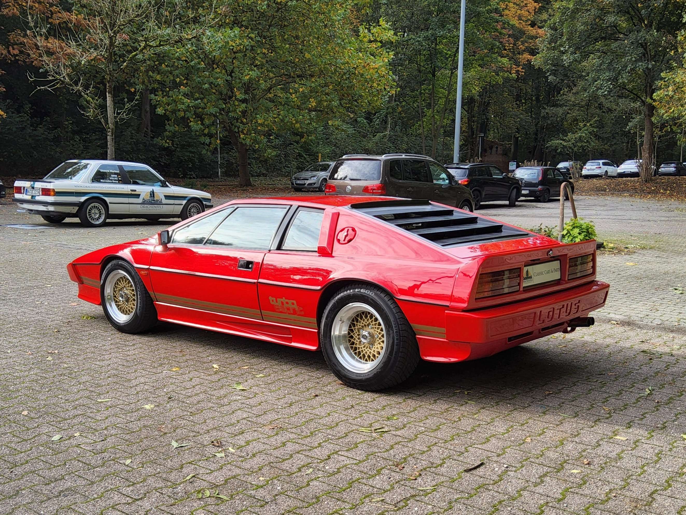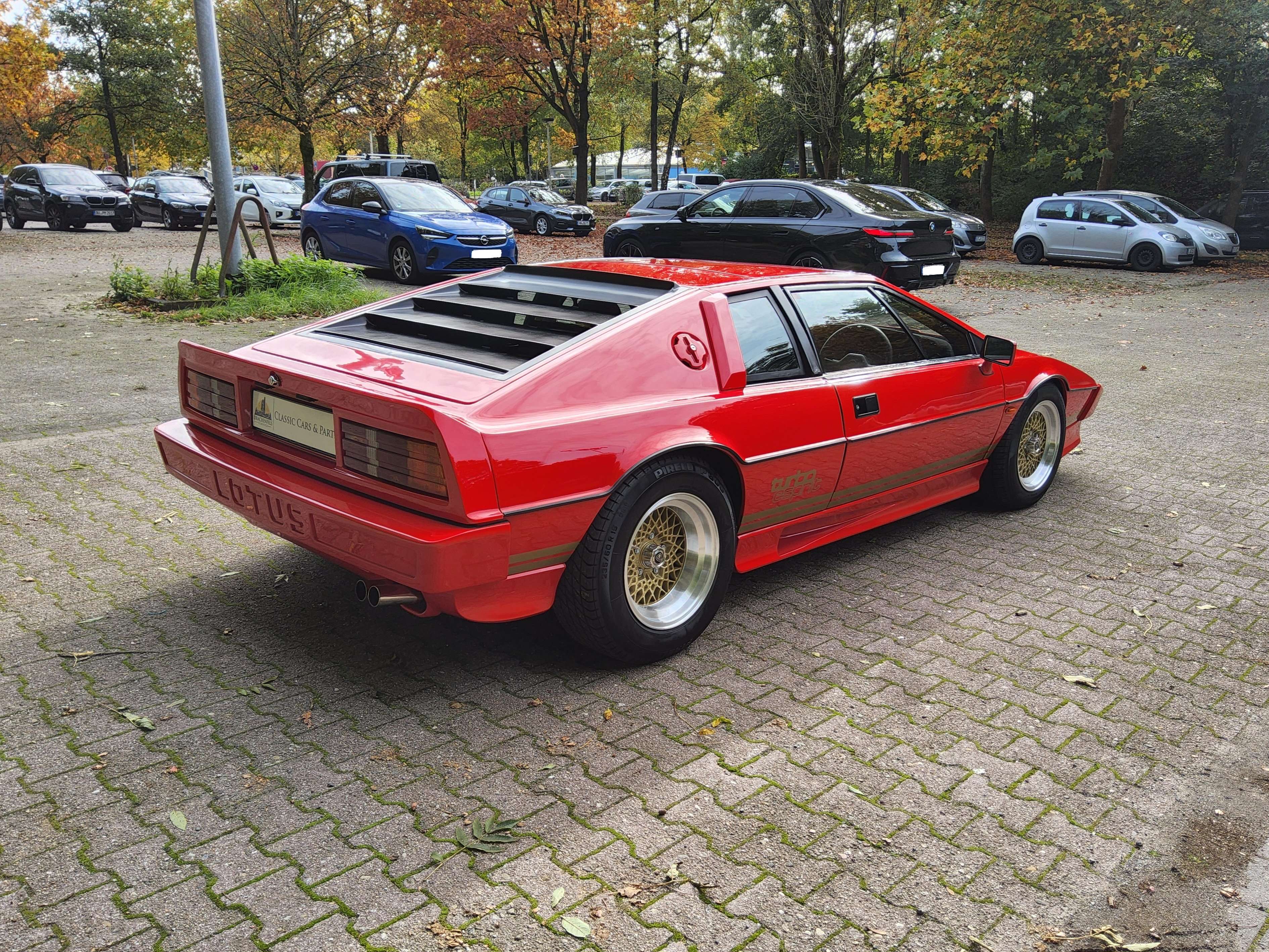 e mich darauf Dir heute dieses tolle Fahrzeug im Kundenauftrag anbieten zu können: Lotus Esprit S3 Turbo mit HC Motor in RotModell allgemeinDer Dienstwagen von James Bond, ein absoluter Erfolg und der damals schnellste Lotus der Welt. Vorgestellt erstmalig 1980 in der Londoner Albert Hall und von da an folgten regelmäßig und in kurzen abständen überarbeitete Modelle. Somit gelangte man von der einfachen S1 Variante schon nach wenigen Jahren bei der S3 Turbovariante, dem damaligen Topmodell. Ausgestattet mit einem 213 PS starken 4-Zylinder Reihenmotor getoppt mit dem Garret T3 Turbolader. Ein absoluter Sportwagen, welcher sich nicht vor der Konkurenz verstecken musste, ganz im Gegenteil. In diversen vergleichen ließ er seine Mitstreiter Ferrari, Porsche und Co. hinter sich. Mit seinen 213 PS und dem maximalen Drehmoment von 271 Newtonmetern, erreichte er eine Höchstgeschwindigkeit von 235 Km/h, unglaublich für die damalige Zeit. Den Sprint von 0-100 absolvierte er in nur 6,7 Sekunden.Historie/WartungenDieser Esprit S3 Turbo fand im Laufe der letzten Jahre bei verschiedenen Lotus-Fans ein liebevolles Zuhause. Erstmalig in Deutschland zugelassen wurde er 1994 und verbrachte von nun an sein Leben ausschließlich in Deutschland und der Schweiz. Alle deutschen Briefeinträge sowie Rechnungen bis Dato sind vorhanden. Im Laufe der letzten Jahren wurden diverse Arbeiten an dem Fahrzeug durchgeführt, unter Anderem getauscht wurden Zylinderkopfdichtung, Motorlager, Zahnriemenspanner sowie Kraftstoffschläuche. In Summe wurden knapp 7000€ investiert, alle Arbeiten sind nachweisbar. Nun kommen wir zum Highlight, dem Motor. Dieser Lotus war einer der ersten Turboaufgeladenen und kam zur Welt mit dem eher anfälligen Dry-Sump Motor. Nun kam es so wie es kommen musste und damals nicht ungewöhnlich war, zu einem Schaden am Motor. Anstatt den originalen aufzubauen, entschied sich der Eigentümer dazu, die wesentlich bessere und vor Allem haltbarere HC-Motorenvariante zu verbauen. Die abkürzung HC steht für "High Compression" und wies auf die größte Veränderung bei diesem Motor hin, das Verdichtungsverhältnis. Damit aber nicht genug, im Jahre 2022 wurde eine Motorrevision im Wert von 10.100,00€ durchgeführt, sprich dieser Lotus befindet sich seit 2022 in einem technischen einwandfreien Zustand. Ein voller Ordner sowie eine Fotodokumentation belegen alle durchgeführten Arbeiten. In Summe wurden in den letzten 15 Jahren 30.800€ in diesen Lotus investiert. Ein aktuelles Wertgutachten mit dem Gesamtzustand 1- aus dem Jahr 2023 liegt vor. AusstattungSchon von Haus aus war der Lotus ein gut ausgestatteter Sportwagen. Die Velours-Ausstattung sorgt auf ganzer Linie für eine Wohlfühlatmosphäre. Außerdem gab es eine Klimaanlage sowie eine Stereoanlage. Die späteren Modelle standen serienmäßig auf einteiligen BBS-Alufelgen (Kreuzspeichen), was dem Auto den klassischen 80er Jahre Charme verleiht. Die tiefe Sitzposition und die flache Frontschutzscheibe geben einem das Gefühl, in einem echten Rennwagen zu sitzen.Lotus Esprit S3 Turbo... Ein Auto mit einem unverkennbaren Klang und einer atemberaubenden Optik, das jeden begeistern wird.Deine Vorteile bei Drachenfels Classics- neue HU/AU vor Abgabe (wenn 12 Monate Rest-TüV)- Fahrzeugcheck auf einer Bühne vor Ort- 12 Monate Gewährleistung- Teileservice- Werkstattgeprüfte Fahrzeuge- Auf Wunsch Classic Car Garantie nach Deinen Wünschen- Finanzierung ohne Anzahlung möglich- großes Teilelager für BMW und Volvo