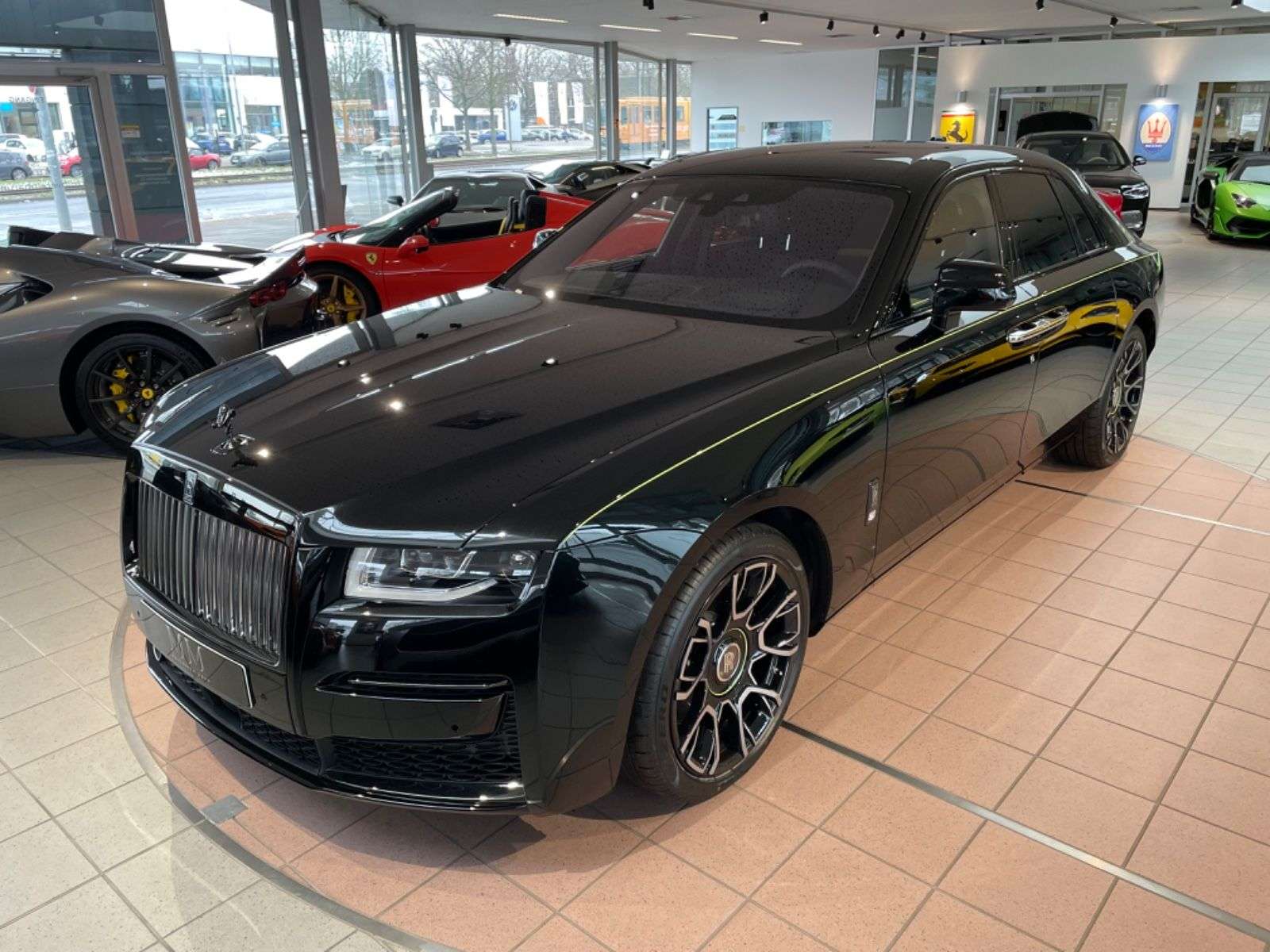 r:RBR1 - Leather BlackLL2X1 - Secondary Colour - Lime GreenLASZK - Coloured Stitching - Lime GreenLAN1 - RR Monogram to all Headrests - Lime GreenLAV - strument Panel with ner StitchRA5 - Lambswool FootmatsOptions: LCP Single CoachlineLE5X1 Coachline Colour Lime GreenRRS Shooting Star HeadlinerL2U Illuminated Fascia6FR Rear Theatre ConfigurationRA1 Picnic Tables319 Garage Door Opener322 Comfort Entry System3CD Effortless Doors420 Rear Privacy Glass453 Front Ventilated Seats454 Rear Ventilated Seats460 dividual Seat Configuration477 Extended Veneer Application High Gloss4HC Heated Passenger Surround4T6 Rear Massage Seats4T7 Front Massage Seats5AC High-Beam Assistance5AS Driving Assistant5DF Active Cruise Control5DP Park Assistant601 Television Tuner610 Head-Up Display654 DAB Tuner6AC telligent Emergency Call6AE Teleservices6AK Connected Drive Services6AM Real Time Traffic formation6CP Apple CarPlay6WD WiFi Hotspot Preparation8R9 Refrigerant940 Special Request Equiptment962 Delete Front Number PlateL0ER1 Signature Key BlackL1Z Dynamic Bespoke ClockLCAX1 Pinstripe Applied to Wheel Centre Lime GreenR9F 21" Carbon Alloy Composite WheelRAE Extended Leather HeadlinerRE6 Dark Chrome Spirit of EcstasyREN Central Cool ChamberRPE Rolls-Royce Bespoke AudioRSL Illuminated GrillRU9 Black Badge Technical FibreZ02 Driver Assistance SystemsZ0D Immersive Seating with occ. Third SeatZ9D Black Boot Trim2BQ Black Brake CalipersOthers:First HandAccident Free