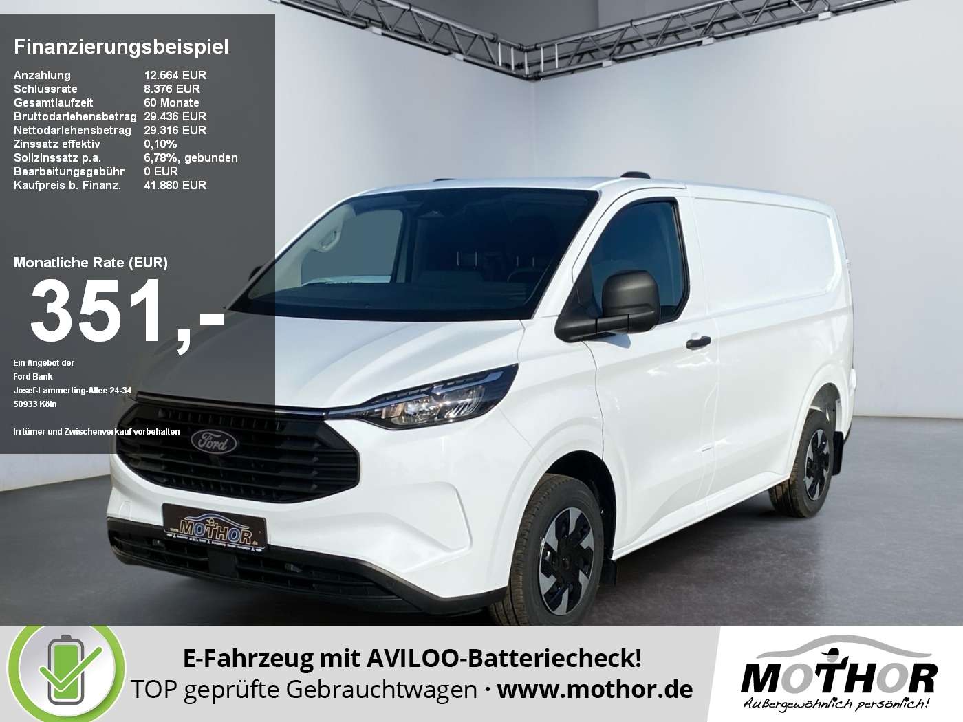 nummer: 1725101211Brutto-Listen-Neupreis: 53.859 EURErweitertes Garantiepaket: In dem Angebotspreis ist bereits eine weit über die gesetzlichen Anforderung hinausgehende Garantieabsicherung einkalkuliert Bundesweite Auslieferung kostengünstig zum Selbstkostenpreis möglichGünstige Finanzierungsmöglichkeiten bis 96 Monate ohne AnzahlungWir erstellen Ihr persönliches Angebot innerhalb weniger MinutenProbefahrt jederzeit möglichUnkomplizierte und schnelle AbwicklungWir haben bereits über 2600 positive Bewertungen mit 100% WeiterempfehlungsquoteWir sind unter den Top 25 der Mitsubishi und Skoda Händler. *Abbildung ähnlich* ASSISTENZSYSTEMEMüdigkeits-WarnerMOTOR GETRIEBE & FAHRWERKAnti-Blockier-System (ABS)Elektron. Stabilitäts-Programm (ESP)TraktionskontrolleAntriebsart: FrontantriebAUDIO & KOMMUNIKATIONUSB-SchnittstelleAudiosystem: Radioempfang Digital (DAB / DAB+) mit 13 Multifunktionsdisplay und SYNC 4Ford SYNC 4 mit AppLink und TouchscreenBordcomputerINTERIEURKlimaautomatikArmlehne hrersitzFensterheber elektrischLaderaumtrennwand MetallLICHT & SICHTFernlichtassistent (Scheinwerfer mit Abblendautomatik)Scheibenwischer mit RegensensorRÄDERReifendruck-KontrollsystemTECHNIK & SICHERHEITNotbrems-AssistentAirbag BeifahrerseiteNotrufsystemReifen-ReparaturkitZentralverriegelung mit FernbedienungEXTERIEURFrontscheibe heizbarSchiebetür Lade-/hrgastraum rechtsWärmeschutzverglasung leicht getöntE-MOBILITYHaltegriff A-SäuleSONSTIGE AUSSTATTUNGENHeckflügeltüren (Öffnungswinkel 90 Grad)Radstand 3100 mmWeitere MerkmaleAussenspiegel elektr. verstell- und heizbarNavi über App ConnectFensterheber elektrisch vorn mit Quickdown / -up-Schaltung hrer-/BeifahrerseiteGetriebe Automatik stufenlos - CVTHybrid 171 kW (Motor 2.5 Ltr. - 171 kW Benzin)Laderaumschutz-Paket (Bodenbelag: Vinyl im Lade-/hrgastraum - Verkleidung im Lade-/FG-Raum: hoch - Laderaumleuchte LED - extra hell)Schadstoffarm nach Abgasnorm Euro 6eSitz-Paket 6A: hrersitz (2-fach verstellbar) - Beifahrerdoppelsitz - Stoff (Radiovorbereitung - 4 Lautsprecher)Technologie-Paket 2 (Audiosystem: Radioempfang Digital (DAB / DAB+) mit 13 Multifunktionsdisplay und SYNC 4 - Müdigkeits-Warner - Pre-Collision-System - Spurwechsel-Warnsystem - Spurhalteassistent)Radiovorbereitung - 4 LautsprecherSitze im hrerhaus: hrer- und Beifahrersitz heizbar Dieses hrzeug wird nach Kauf einer KOMPLETTEN TECHNISCHEN KONTROLLE unterzogen und erneut frisch aufbereitet. Beim Ratenkauf bieten wir Ihnen Ihre persönliche Wunschrate an oder stellen Ihnen eine individuelle Finanzierung nach Ihren Vorstellungen mit einem stets GÜNSTIGEN ZINSSATZ zusammen. Für unsere GEBRAUCHTWAGEN gilt: Um das Risiko eines Gewährleistungsfalls möglichst gering zu halten werden der Zustand und die Technik unserer hrzeuge durch eine für Sie kostenlose Durchsicht überprüft. Wir empfehlen den Abschluss einer Garantieversicherung. Irrtum und Zwischenverkauf vorbehalten.
