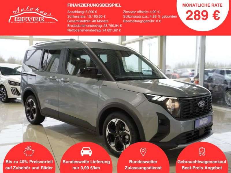 bei Autohaus Meyer!* * Clever sparen, besser fahren: 20 % Preisvorteil gegenüber der Hersteller-UPE von 34.500 €. Ihr Aktionspreis: nur 27.610 € – sofort verfügbar!* Schnell sein lohnt sich – nur solange verfügbar.FORD Tourneo Courier Active 1,0 125PS Automatik als Neufahrzeug mit Tageszulassung und einer super Ausstattung wie zb:SonderausstattungKlimaautomatikWinter-Paket 2Sitzheizung vornbeheizbare Windschutzscheibebeheizbares MultifunktionslederlenkradInnenspiegel, automatisch abblendend Sitz-Paket 12 - Fahrersitz 4-fach einstellbar Armlehne für FahrersitzIsofix-Aufnahmen für Kindersitz17 Zoll LeichtmetallfelgenPrivacy VerglasungRückfahrkameraEinparkhilfe vorn und hintenAudio-Navigationssystem mit Touchscreen-FarbdisplayRadioempfang digital (DAB)Android Auto/Car PlayFahrassistenz-System: VerkehrsschildassistentFahrassistenz-System: Totwinkel-Assistent inkl. Cross Traffic AlertFahrassistenz-System: Rückfahr-Assistent (Notbremsassistent)Fahrassistenz-System: Ausweich-Assistent (Evasive Steer Assistance, ESA)Fahrassistenz-System: SpurhalteassistentFahrassistenz-System: ACC AbstandstempomatDigital CockpitLed TagfahrlichtMetalic Lackierungelek.anklappbare AussenspiegelSerienausstattungAntriebsart: FrontantriebAußenspiegel elektr. verstell- und heizbarAußenspiegel schwarz lackiertBord-/VerbrauchscomputerDachreling silberElektron. Stabilitäts-Programm (ESP)Fahrassistenz-System: Sicherheitssystem SYNC mit automatischem NotrufFahrer-Assistenz-Paket 3Audio-Paket 34 LautsprecherSprachsteuerung und Bluetooth-SchnittstelleUSB-AnschlussFarbdisplay (8 Zoll)Außenspiegel elektr. anklappbarFahrassistenz-System: Falschfahrer-WarnfunktionAdaptive Geschwindigkeits-Regelanlage mit Stop&Go-FunktionIntelligenter Geschwindigkeits-BegrenzerFensterheber elektrisch vorn, mit Auf-/Ab-AutomatikTürgriffe außen WagenfarbeFahrassistenz-System: Pre-Collision-SystemFenster elektr. betätigt, in Schiebetür linksFenster elektr. betätigt, in Schiebetür rechts* FordPass Connect inkl. eCallGepäcksicherungsnetzGetriebe 7-Gang - DoppelkupplungsgetriebeHeckklappe verglastHeckscheibenwischerHeckscheibe heizbarInduktionsladeschale für mobile EndgeräteKarosserie/Aufbau: KombiKühlergrill schwarzLeseleuchte vornLM-FelgenMittelkonsole langMotor 1,0 Ltr. - 92 kW EcoBoost KATNebelscheinwerferPower KeyFree-StartfunktionRadstand StandardReifen-ReparaturkitReifendruck-KontrollsystemSchadstoffarm nach Abgasnorm Euro 6dScheibenwischer mit RegensensorSchiebetüren beidseitigSchiebetür rechtsSonnenblende links mit SpiegelSonnenblende rechts mit SpiegelStart/Stop-AnlageSteckdose (12V-Anschluß) im Koffer-/LaderaumTagfahrlichtTeppichboden in Fahrgast-/LaderaumUnterfahrschutz (Motor)Unterfahrschutz hintenVerglasung hinten abgedunkelt (Privacy Glass)Zentralverriegelung mit FernbedienungZweiter Schlüssel mit FernbedienungSonderausstattung/Zubehör wie z.B. Winterreifen, Anhängerkupplung kann bei Bedarf kurzfristig und kostengünstig nachgerüstet werden!Wir bieten Finanzierung oder Leasing mit und ohne Anzahlung an.Inzahlungnahme zu fairen Preisen.Interesse geweckt? Sie selbst wohnen aber weiter entfernt oder sind zeitlich begrenzt, dann erkundigen Sie sich bitte nach unseren besonders günstigen deutschlandweiten Anlieferungen.Rufen Sie uns an - wir beraten Sie gern.Dieses Fahrzeug ist an 2 Standorten verfügbar. Bitte fragen Sie nach, an welchem Standort sich das Fahrzeug derzeit befindet.Weitere Fahrzeuge auf unserer Homepage:www.autohaus-meyer-eu.de Bauart: VanMotor 1,0 Ltr. - 92 kW EcoBoost KATKarosserie/Aufbau: KombiRadstand StandardAntriebsart: FrontantriebGetriebe 7-Gang - DoppelkupplungsgetriebeAnzahl Achsen: 2Höchstgeschwindigkeit: 175Anhängelast gebremst: 1