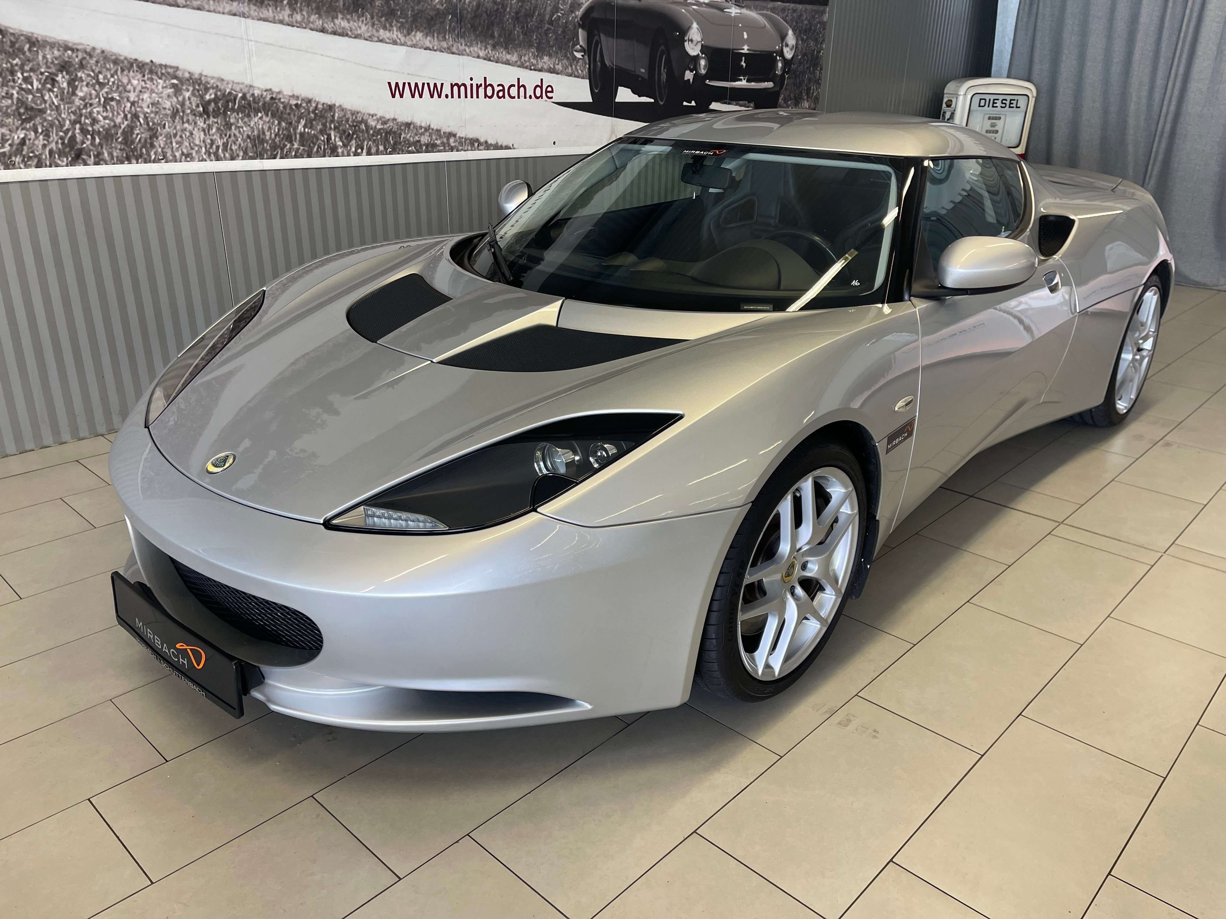 s Evora (Typ 122) ist ein viersitziger Mittelmotor-Sportwagen des britischen Automobilherstellers Lotus Cars mit einem Motor des japanischen Herstellers Toyota.AusstattungABS, Alarmanlage, Armlehne, Bi-Xenon Scheinwerfer, Bordcomputer, CD-Spieler, ESP, Elektrische Fensterheber, Elektrische Seitenspiegel, Elektrische Wegfahrsperre, Freisprecheinrichtung, Heckantrieb, Klimaanlage, Tagfahrlicht, Lederlenkrad, Leichtmetallfelgen, Arctic Silber Metallic, Mulitfunktionslenkrad, Navigationssystem, Nichtraucherfahrzeug, Notrad, Radio (Tuner/Radio), Reifendruckkontrolle, Scheckheft gepflegt, Scheinwerferreinigung, Servolenkung, Sommerreifen, Sportsitze, Traktionskontrolle, Zentralverriegelung.Der Wagen befindet sich in einem super Zustand, keine Beschädigungen, leichte Gebrauchsspuren innen und außen. 100% nachvollziehbare Historie, Scheckheft gepflegt bei einem offiziellen Lotus Service Partner in Deutschland. Serviceheft liegt im Original vor.e Evora mit dem besten Preis / Leistungsverhältnis am Markt, der Wagen für den Evora Einsteiger.---Probefahrt und Sichtprüfung des Fahrzeuges auf der Hebebühne sind selbstverständlich nach kurzer Absprache möglich.Als versierter Fachbetrieb verfügen wir über eine eigene Werkstatt. Unser erfahrenes und speziell geschultes Mechaniker-Team steht bereit für Service, Reparaturen und individuelle Änderungswünsche am Fahrzeug.Alle unsere Verkaufsfahrzeuge finden Sie gesammelt auf unserer homepage unter www.mirbach.deWir freuen uns auf Sie!