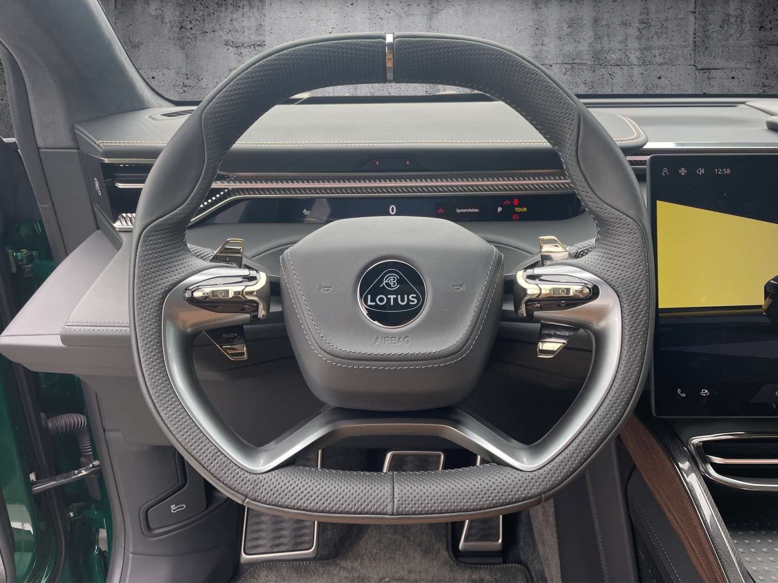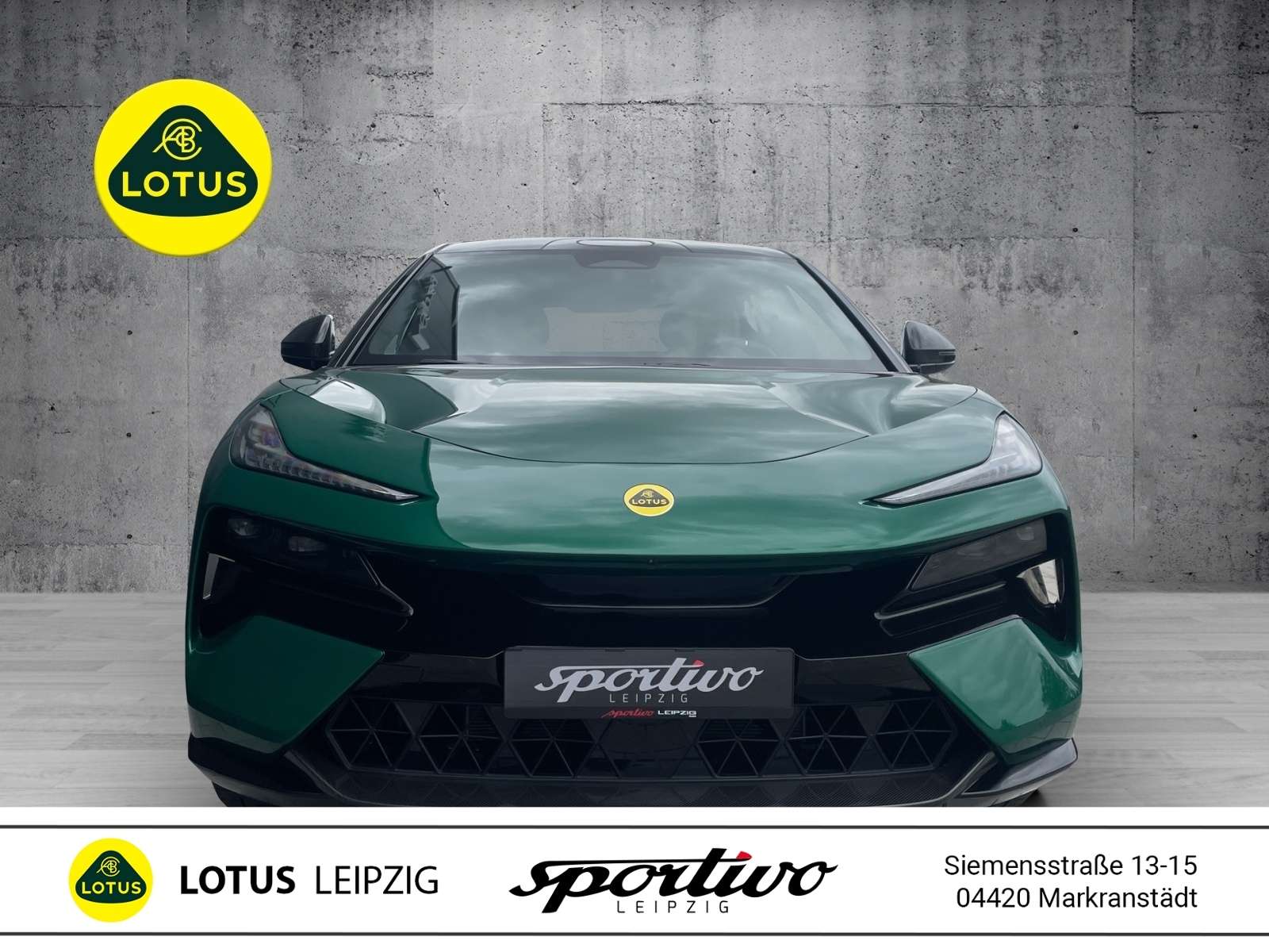 ts: 1. HandScheckheftgepflegtTechnik +Sicherheit:ESPABSASRFahrerairbagSeiten-AirbagsBeifahrer-AirbagDiebstahlwarnanlageAußentemperatur-AnzeigeFahrw ParkbremseElektr. Bremssystem (EBS)Fahrwerksregelung: Adaptives DämpfungssystemPre-CrashServolenkungelektr. WegfahrsperreNotbrems-Warnblinkautomatik (ESS)Multimedia: NavigationssystemAutotelefonFreisprecheinrichtungSoundsystemSprachsteuerungdigitaler RadioempfangBluetoothRadioWLANTouch ScreenFond EntertainmentAndroid AutoInduktionsladen für SmartphonesCarPlayMusikstreaming integriertAssistenzsysteme: BerganfahrassistentRückfahrkameraSpurwechselassistentSpurhalteassistent (lane assist)Verkehrszeichen-ErkennungTempomat (GRA): autom. DistanzregelungTotwinkelassistent (side assist)ParklenkassistentEinparkhilfeEinparkhilfe hintenEinparkhilfe vornRegensensorLichtsensorGeschwindigkeitsregelanlage (GRA) TempomatAbstandswarnerHead-up-Display (HUD)Seitenkamera360° KameraInnen: Klimaautomatik: MehrzonenklimaautomatikKlimaautomatikStandheizungMultifunktionslenkradBordcomputerelektrische FensterheberFensterheber elektr. 4*Virtuelles CockpitDurchladeeinrichtungGepäckraumabdeckungFußmattenSportlenkradKlimaautomatik 4 ZonenDachhimmel AlcantaraLenkrad beheizbarStandklimaanlageDachhimmelSitze + Polster: SitzheizungSitzheizung vorne + hintenMittelarmlehneMittelarmlehne vorneMemorysitz(e)elektr. Sitz(e)Komfortsitz(e) vornbelüftete Sitz(e)LendenwirbelstützeEinstieghilfe ("Easy Entry")Fahrersitz höhenverstellbarRücksitzbank umlegbarMassagesitzeelektr. Sitzeinstellung, hintenIso-FixAussen: ZV mit Funkfernbedienungelektr. AussenspiegelZentralverriegelungGlasdachZentralverriegelung: Keyless Entrygetönte ScheibenAußenspiegel beheizbarSpoilerAußenspiegel elektr.: MemoryspiegelScheinwerfer +Leuchten:LED-RückleuchtenLED-ScheinwerferScheinwerferregulierungAbbiege-/KurvenlichtTagfahrlichtLED-Tagfahrli HomeComing HomeBlendfreies FernlichtRäder + Reifen: Reifendruck-KontrolleLeichtmetallfelgenLeichtmetallfelgen: 23"SommerreifenPannensetSonstiges: - Lotus Eletre S - Galloway Grün- 23 Zoll 5-Speichenfelgen- grüne Bremssättel 6 Kolben- Beige Lederausstattung mit schwarzen Kontrasten- Schwarzes Lederlenkrad- Aerodynamikpaket mit Spoiler- Dimmbares Glasdach- Interieur Carbon Paket- Getönte Scheiben hinten- Parkpaket- AutobahnassistantGerne unterbreiten wir Ihnen Leasing- oder Finanzierungsangebote nach Ihren Wünschen.Wir freuen uns auf Ihren Anruf.Ihr Lotus Leipzig Team.Änderungen, Zwischenverkauf und Irrtümer vorbehalten!