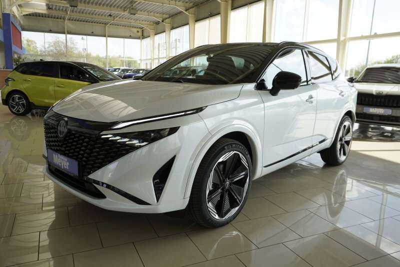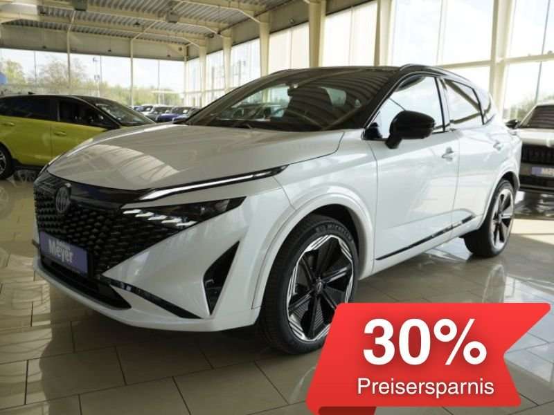 Herstellers liegt bei 47500 Euro!Nissan Qashqai N-Design 1,3 DIG-T Xtronic Mild-Hybrid 158PS als Neufahrzeug mit Tageszulassung, Herstellergarantie bis 02/2028 und einer super Ausstattung wie zb:Zwei-Farbenlackierung: Karosseriefarbe Pearl White, Kontrastfarbe BlackN-Design spezifische Stoßfängereinsätze und Kotflügel in WagenfarbeSuperrot LED-RückleuchtenPremium Bose® Sound System mit 10 Lautsprechern: 2 Hochtönern, 6 Hoch- und Mitteltonlautsprecher in den Türen und 2 Lautsprecher im SubwooferPanorama-Glasdach mit elektrischem SonnenschutzrolloIntelligent Key: Start/Stopp-Knopf, Keyless Entry und Speicherung von Sitz- und Außenspiegelpositionen (Fahrer)10,8-Head-up-DisplayAußenspiegel mit Memory-FunktionAutomatische Neigung der Außenspiegel bei RückwärtsfahrtFahrersitz elektrisch einstellbar, inkl. Memory-FunktionBeifahrersitz mit 2-fach elektrisch einstellbarer LordosenstützeHeckklappe, elektrisch und sensorgesteuertPrivacy VerglasungDachreling20 Zoll LeichtmetallfelgenLeder-Alcantara SitzeSchließ-/Startsystem intelligent keyVoll-LED Scheinwerfer mit adaptivem Fernlicht-AssistentBeheizbare Frontscheibe Thermaclear®Beheizbare VordersitzeBeheizbares Multinfunktionslederlenkrad mit SchaltwippenDrahtloses Apple CarPlayEinparkhilfe vorn und hintenDigital CockpitIntelligenter Adaptiver Geschwindigkeits- und Abstands-AssistentAirbag Fahrer-/BeifahrerseiteAmbiente-BeleuchtungAnti-Blockier-System (ABS)Around View Monitor (360° Umgebungsansicht)Ausstattungs-Paket: Nissan Connect Navigationssystem mit Around View MonitorAudiosystem6 LautsprecherSprachbediensystem SpracherkennungTouchscreen-Farbdisplay (12,3 Zoll)Service-System: Google ServicesService-System: Nissan Connect ServicesSmartphone Schnittstelle (Apple CarPlay & Android Auto)Kamerasystem Around ViewAuto-Hold-FunktionAutomatische FahrlichtschaltungAußenspiegel elektr. anklappbarAußenspiegel elektr. verstell- und heizbarBlinkleuchten LED in Außenspiegel integriertDachantenne im Haifischflossen-DesignDiebstahl-WarnanlageElektr. Bremskraftverteilung (EBD)Elektron. Stabilitäts-Programm (ESP)Fahrassistenz-System: aktiver Spurhalteassistent, mit korrigierendem BremseingriffFahrassistenz-System: Auffahrwarnsystem (Forward Collision Warning, FCW)Fahrassistenz-System: Autonomer Notbrems-AssistentFahrassistenz-System: Berganfahr-AssistentFahrassistenz-System: FernlichtassistentFahrassistenz-System: Moving Object Detection (MOD, Fußgängererkennung und bewegliche Objekterkennung)Fahrassistenz-System: Müdigkeitserkennungs-SensorFahrassistenz-System: Querverkehrs-Assistent Heck (Rear Cross Traffic Alert, RCTA)Fahrassistenz-System: Sicherheitssystem ERA GLONASS mit automatischem NotrufFahrassistenz-System: Totwinkel-AssistentFahrassistenz-System: VerkehrszeichenerkennungFahrmodusschalterFensterheber elektrisch vorn + hintenGepäck-/Laderaum-Unterteilung (Flexi-Board)Geschwindigkeits-BegrenzeranlageHandschuhfach beleuchtetHeckleuchten LEDInnenraumfilter: PollenfilterInnenspiegel mit AbblendautomatikInstrumentenanzeige TFT-Farbdisplay (12,3 Zoll)Isofix-Aufnahmen für KindersitzKarosserie: 5-türigKlimaautomatik 2-ZonenKniepolster Mittelkonsole seitlichKofferraumbeleuchtungKopf-Airbag-SystemLastenverankerung / VerzurrösenLendenwirbelstütze Sitz vorn links, elektr. verstellbarLenkrad (Leder) mit MultifunktionAudiobedienung am LenkradLenkrad mit Schaltwippen/-tastenLenksäule (Lenkrad) höhen-/längsverstellbarLeseleuchten vorn und hintenMittelarmlehne hinten mit GetränkehalterMultimedia-System Nissan ConnectNavigationssystemNebelschlussleuchte LEDNotbrems-WarnblinkautomatikOtto-Partikelfilter (OPF)Parkbremse elektrischRadstand 2666 mmReifendruck-KontrollsystemRückfahrkameraRücksitz geteilt/klappbarSchadstoffarm nach Abgasnorm Euro 6dSchalt-/Wählhebelgriff LederScheibenwischer mit IntervallschaltungScheibenwischer mit RegensensorKeyless-EntryStart-Stop-KnopfSeitenairbagSeitenairbag vorn mitte (Center-Airbag)Service-System: Amazon AlexaSitz vorn links höhenverstellbarSitz vorn rechts höhenverstellb