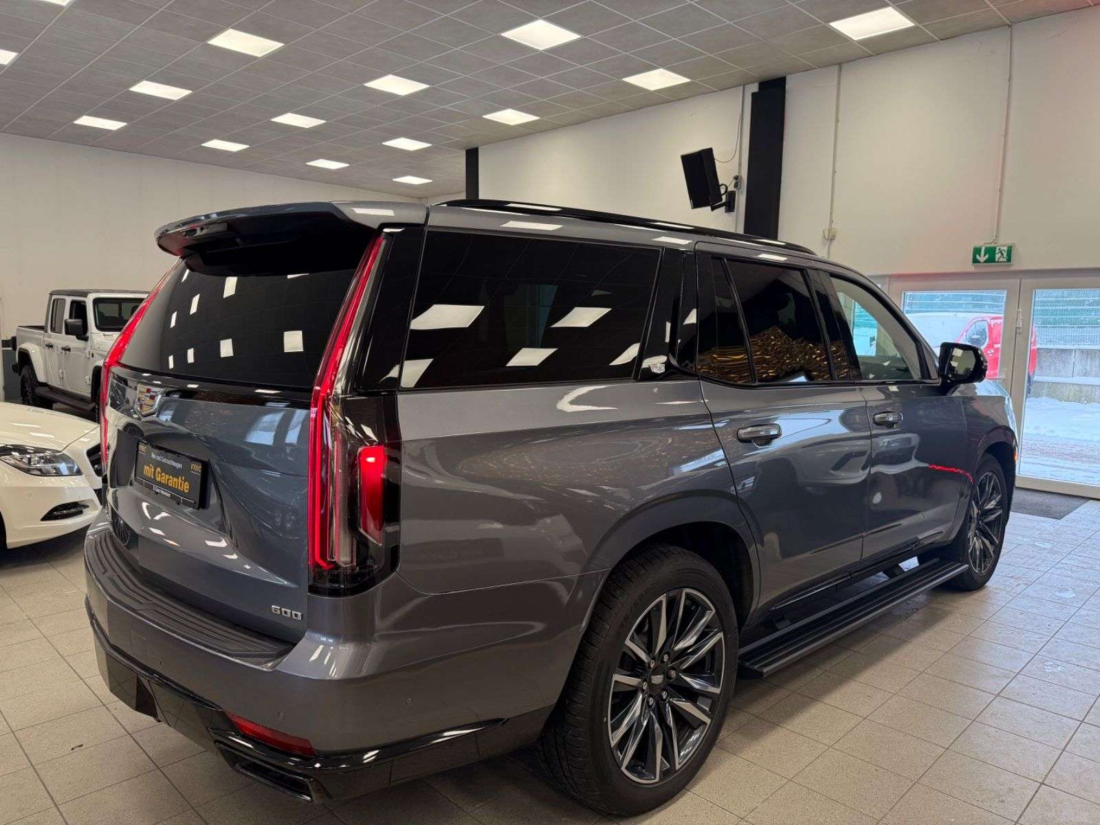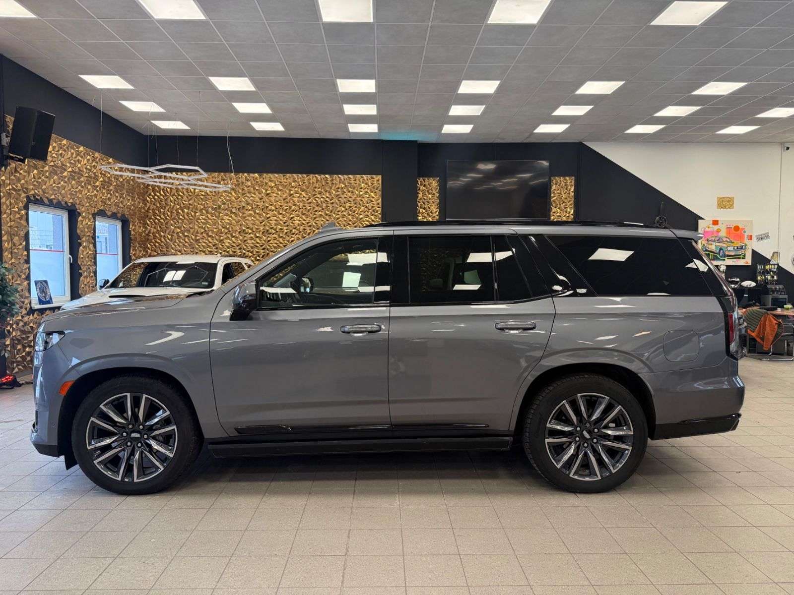 epflegte Cadillac Escalade aus dem Jahr 2021 mit nur einem Vorbesitzer vereint Luxus und Leistung in einem beeindruckenden SUV-Paket. Der kraftvolle 6,2-Liter V8-Motor mit 426 PS sorgt für souveräne Fahrleistungen, während der Allradantrieb optimale Traktion unter allen Bedingungen gewährleistet. e graue Metallic-Lackierung harmoniert perfekt mit dem schwarzen Lederinterieur, das durch Ambientbeleuchtung stilvoll in Szene gesetzt wird. e 4-Zonen-Klimaautomatik sorgt für individuellen Komfort auf allen sieben Sitzplätzen. Modernste Technologie wie das digitale Cockpit, Head-up-splay und 360-Grad-Kamera machen jede Fahrt zum Erlebnis.e umfangreiche Sicherheitsausstattung umfasst adaptive Scheinwerfer, Spurhalteassistent, Totwinkelwarner und Kollisionsvermeidungssystem. Für maximalen Komfort bietet der Escalade elektrisch verstellbare Sitze mit Massage- und Belüftungsfunktion, ein Panorama-Glasdach und eine elektrische Heckklappe.6,2-Liter V8-Motor mit 426 PS und AutomatikgetriebeAllradantrieb und adaptive Luftfederung360-Grad-Kamera und Head-up-splaySchwarze Lederausstattung mit Massage- und BelüftungsfunktionPanorama-Glasdach und elektrische HeckklappeApple CarPlay, Android Auto und kabelloses Laden4-Zonen-Klimaautomatik für individuellen KomfortUmfangreiche Fahrassistenzsysteme inklusive adaptivem TempomatLED-Scheinwerfer und TagfahrlichtAusstattung:Abgedunkelte ScheibenAmbiente-BeleuchtungArmlehneBeheizbares LenkradElektr. FensterheberElektr. HeckklappeElektr. SeitenspiegelElektr. Seitenspiegel anklappbarElektr. SitzeinstellungElektr. Sitzeinstellung mit Memory-FunktionInnenspiegel autom. abblendendLederlenkradLordosenstützeMassagesitzePanorama-DachRaucherpaketSchiebedachSchlüssellose Zentralverriegelung (Keyless)SitzheizungSitzheizung hintenSitzbelüftungSkisackStandheizungUmklappbarer BeifahrersitzZentralverriegelungBordcomputerHead-Up splayMultifunktionslenkradSchaltwippenServolenkungVolldigitales KombiinstrumentAndroid AutoBluetoothApple CarPlayCD-SpielerMulti-CD-WechslerFreisprecheinrichtungInduktionsladen für SmartphonesMusikstreaming integriertNavigationssystemSoundsystemSprachsteuerungTouchscreenTVUSBWLAN / Wifi HotspotWinterreifenLeichtmetallfelgenDachrelingLuftfederungScheinwerferreinigungTuner/Radio:Radio DABTuner/RadioGeschwindigkeitsregulierung:AbstandstempomatAnhängerkupplung:Anhängerkupplung abnehmbarKlimatisierung:4-Zonen-KlimaautomatikSicherheit:AlarmanlageABSAbstandswarnerAdaptives FahrwerkAnhängerrangierassistentBlendfreies FernlichtElektr.WegfahrsperreESPFernlichtassistentGeschwindigkeitsbegrenzerIsofixIsofixBeifahrersitzLichtsensorNebelscheinwerf Seiten- und weitere AirbagsTagfahrlicht (Art):LED-TagfahrlichtHauptscheinwerfer:LED-ScheinwerferKurvenlicht (Art):Adaptives KurvenlichtEinparkhilfe:360°-KameraInnenausstattung:VolllederFarbe der Innenausstattung:Schwarz1 Jahr Garantie und GewährleistungTÜV und Service NeuFinanzierung über unsere Hausbank ab 5,49& möglich.Gerne nehmen wir Ihren "Gebrauchten" in Zahlung.Garantie gegen Aufpreis bis zu 36 MOnate möglich.Für weitere Fragen oder einen Besichtigungsterminstehen wir IHnen per Mail oder telefonisch jederzeitzur Verfügung.Ihr E-Cars Hannover TeamTippfehler,Zwischenverkauf und Irrtümer vorbehalten