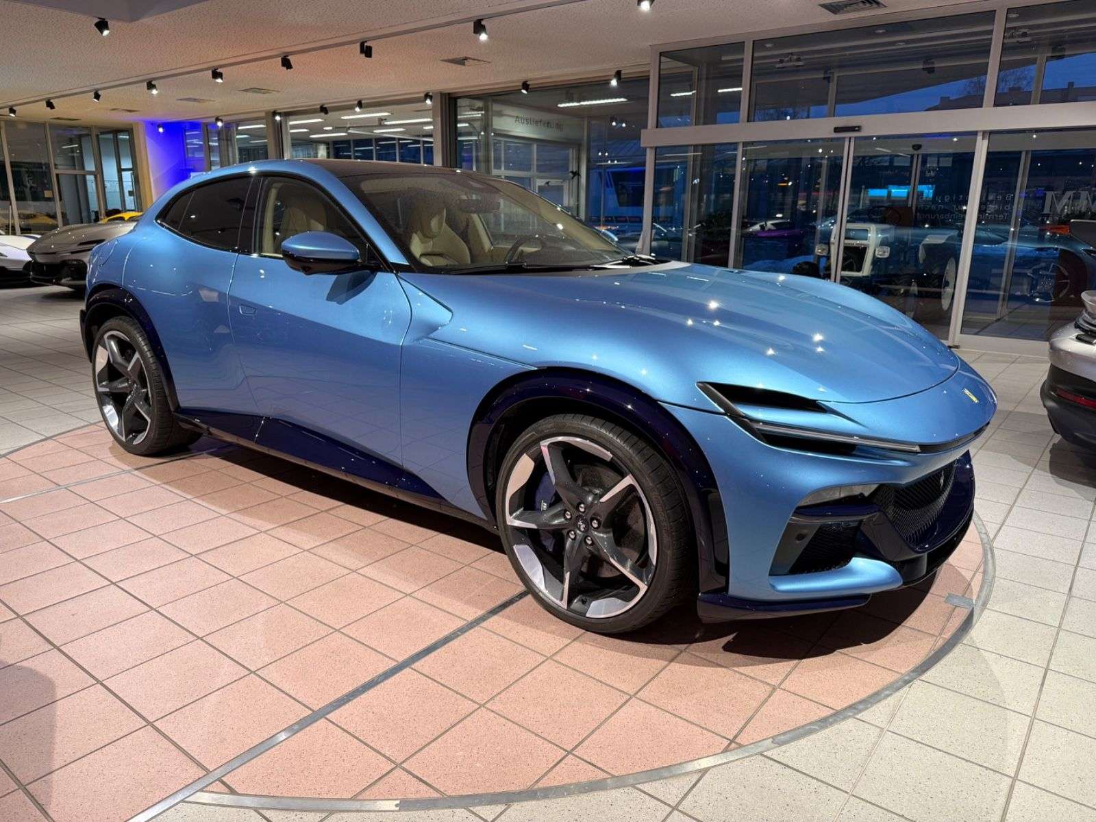 stattung:- Leder Crema INTP- Carbon Lenkrad mit LED LEDS- Sitze im Special Sitzdesign STYL- Fußraum Einstiege und Seitenverkleidung in Leder Alcantara ULEZ- Einstiege in Carbon (blau) CISK- Fußmatten mit Logo FLMASonderausstattung:- Special Carbon Fiber Exterieur (Blue) CECM- Heckdiffusor in Carbon (Blue) CEXD- Seitenschweller Carbon (Blue) CEXS- Frontspoiler Carbon (Blue) FCWS- Vordere Sitze mit Massage und Belüftung FSVM- Hintere Sitze mit Massage und Belüftung RSVH- Lenkradheizung STWH- Panoramadach ECRF- Air Quality Sensor AQS2- Auspuff in schwarz EXAB- MY Ferrari Connect HWCO- Privacy Verglasung PRG1- LM-Räder Diamond Finish RSGD- Smartphone terface SMRT- Wireless Smartphone charger WIRE- High End Audio System SNDX- 360° Kamerasystem SURR- Radbolzen Titanium TIWN- Active Matrix LED XLED- Bremssättel in blau CALC- Luggage Compartment Kit FLRWSonstiges:- 1 Hand- Unfallfrei- Deutsche Auslieferung und Zulassung- Maintenance Wartungsprogramm bis 07-2031- Herstellergarantie bis 07-2027