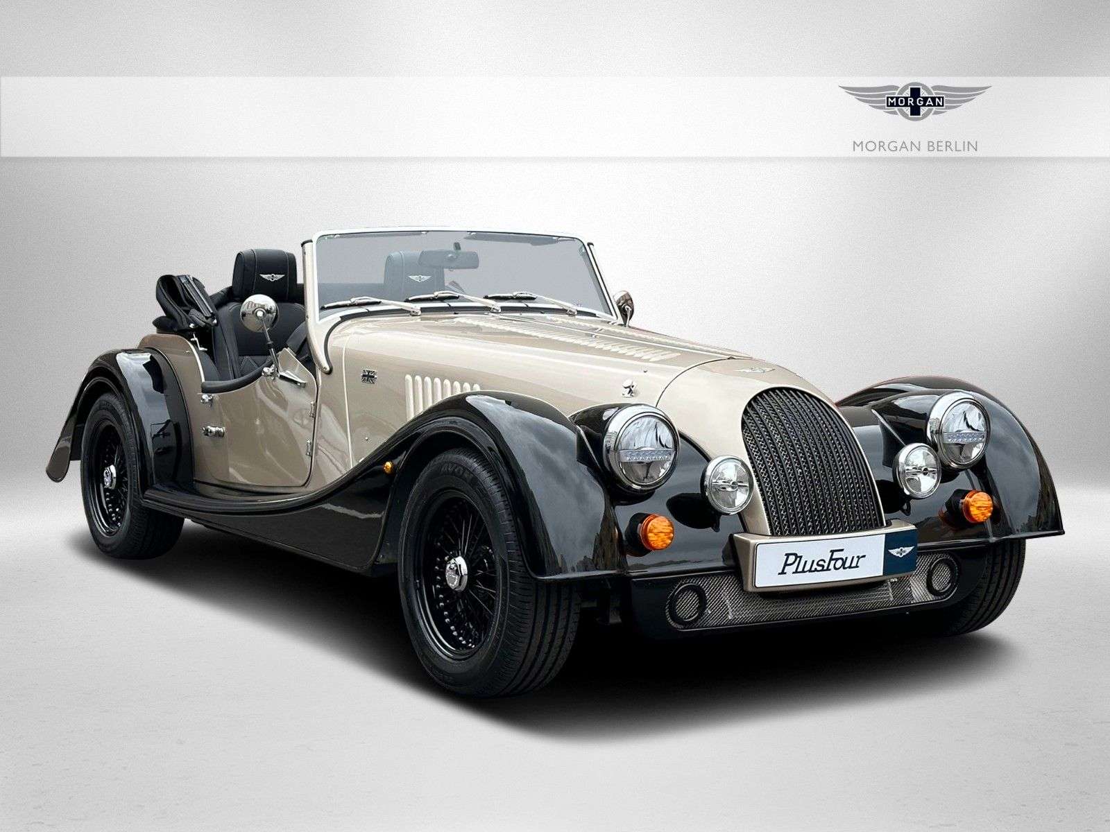 LUS FOUR - MY23 - sofort verfügbar - RGAN BERLIN -Außenfarbe: White Gold mit Metallic BlackInnenfarbe: Leder Pebble Morgan BlackVerdeck: SchwarzAusstattung :15" Speichenräder in schwarz mit ReserveradKlimaanlageZweifarblackierung White Gold mit Metallic BlackInnnenausstattungsleder in "Pebble Morgan Black"Kontrastnähte "Morgan Cream"Interieurteppich in "Box Weave Black"Beheizbare SitzeSitzflächen mit RautensteppungKopfstützen bestickt mit Morgan Logo in "Morgan Cream"Armaturenbrett in "White Gold" - glänzendLenkradeinsatz - Schwarz lackiertLautsprecher-System mit Bluetooth SteuerungCup HolderUnion Jack Badges - schwarzKühlergrill - schwarz lackiertGrillgitter - poliertZusatzscheinwerferVerdeck in "Mohair Black"Verdeckabdeckung in schwarzAbschließbares StaufachSportabgasanalge mit schwarz lackierten EndrohrenIndoor Car CoverBatterieladegerätVorbereitung für die Montage einer GepäckbrückeFahrzeug zugelassen auf Morgan BerlinÄnderungen, Irrtum sowie Zwischenverkauf vorbehalten. RGAN BERLIN