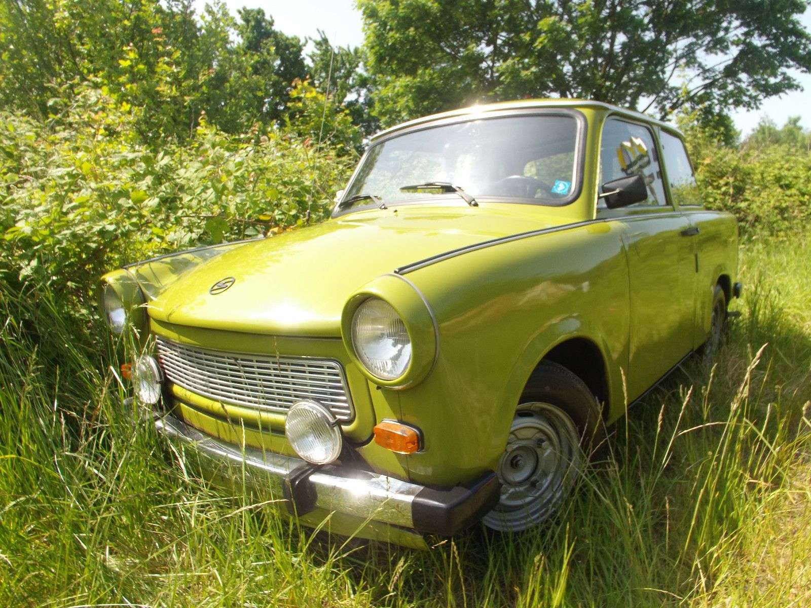 en in der schönen (?) und heilen (?) Welt der alten/historischen DDR, also der sog. Deutschen Demokratischen Republik. Dieser hier von uns angebotene Pkw Trabant 601 LX wurde exakt im Oktober 1989 in der DDR zugelassen. Das war also genau einen Monat vor dem Mauerfall, der bekannterweise am 09.11.1989 stattgefunden hat und dieser „Trabi“ wurde sozusagen als letztes Highlight „30 Tage“ vorher in der DDR zugelassen. Na, wenn das kein Knüller ist! Man konnte die Zeitenwende fast schon riechen! Dieses Highlight der ostdeutschen Automobilbaukunst war in der DDR hoch angesehen aber in der BRD eher weniger. Aber egal. Auf jeden Fall ist das eins der letzten Fahrzeuge, was in der „legendären“ (?) Deutschen Demokratischen Republik hergestellt worden ist und ist also ein historischer Zeitzeuge, wie man Autos eigentlich nicht bauen sollte. Heute, also 25 Jahre später, ist dieser Trabi ein Relikt aus dieser vergangenen Zeit und steht im krassen Gegensatz zu allen anderen Oldtimern, die damals hergestellt worden sind. Allein der Motorsound ist zum K... und die Leistung des Motors eher jämmerlich. Aber irgendwie hat sich dieser Trabi einen Status erworben und irgendwie macht er auch Spaß, wenn man ihn fährt. Allerdings würde man lieber mit einer Vespa durch Rom knattern als mit dem Trabi über den Kurfürstendamm. Aber egal! Der von uns hier und heute angebotene Trabi befindet sich praktisch in demselben guten (?) Zustand wie damals im Jahr 1989. Warum? Weil er seitdem nur 15.445 km gelaufen ist! Eigentlich stand er immer nur in der Garage herum und wurde gelegentlich nur für nostalgische Ausflüge genutzt. Deswegen sieht er heute im Jahr 2023 noch aus wie ein Vorführwagen in einer „ostzonalen“ Automobilausstellung und hat so gut wie keine Abnutzungserscheinungen oder Gebrauchsspuren. Sogar von Rost gibt es keinerlei Spur und die Polster sehen aus wie neu. Das liegt vielleicht aber auch daran, dass in der ganzen Zeit sog. Schonbezüge auf den Sitzen waren. Das machte man damals in seinem eigenen Auto so wie auch im eigenen Wohnzimmer. So, jetzt genug der Worte. Die „Kiste“ steht ja bei uns und wartet auf einen „Verrückten“, der Spaß an solch einem Automobil hat, was es eigentlich gar nicht geben dürfte. Allein das macht diesen Trabi schon sehr besonders!… und wer sich noch für ähnliche oder etwas andere Oldtimer interessiert: r haben noch weit über einhundert weitere Fahrzeuge hier. Nur ,,Michael Fröhlich“ googeln und ,,Fantastische Fahrzeuge“ anklicken. Fertig! Telefonischer Kontakt wird sofort bearbeitet. E-Mails dauern etwas länger. (Bitte eigene Telefonnummer angeben) Verkauf im Kundenauftrag! Irrtümer vorbehalten.