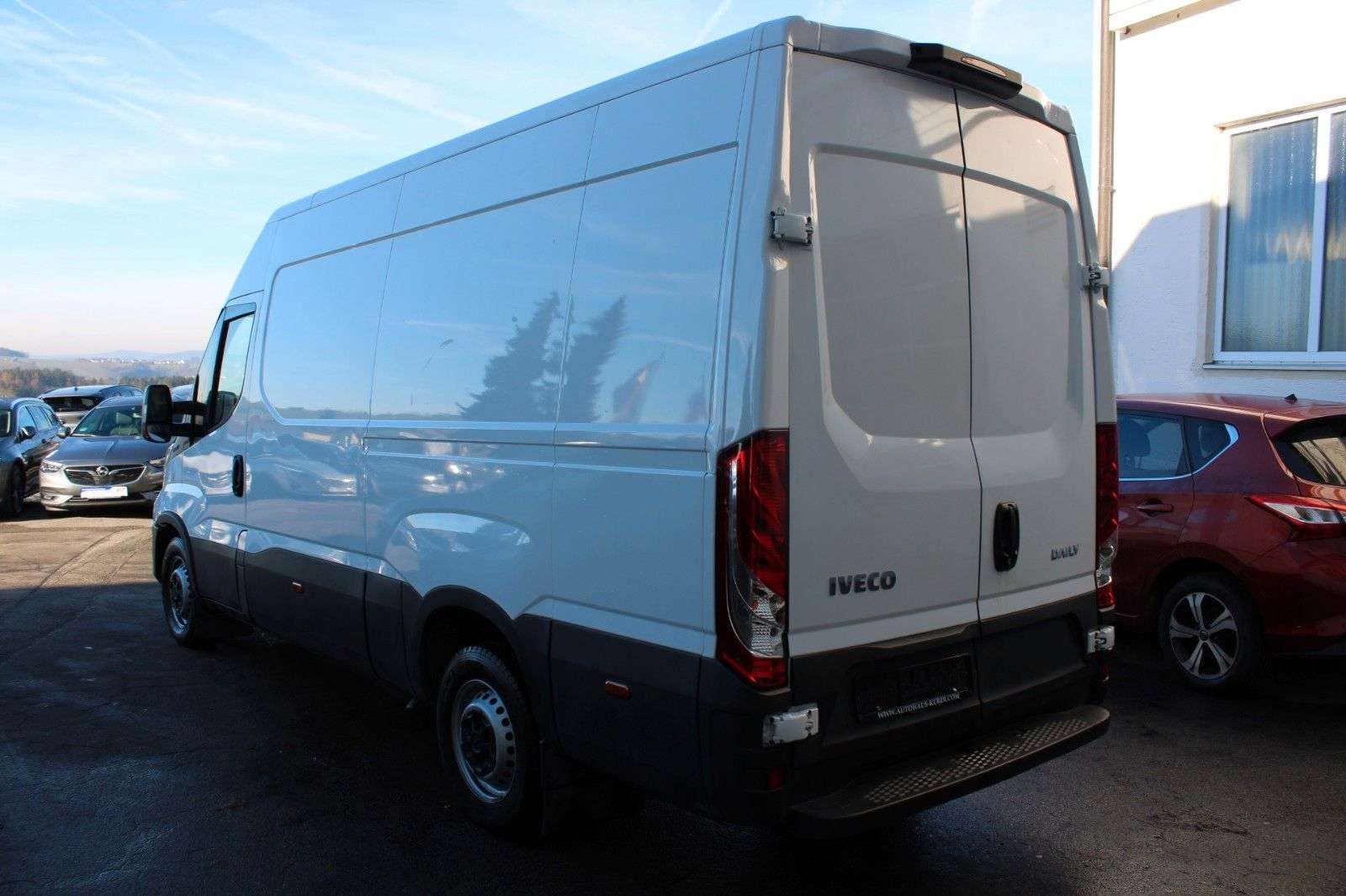sstattung:Ablagefach auf Armaturentafel mit USB-AnschlussAudiosystem: Digitales Audiosystem (DAB) mit USB und Freisprecheinrichtung BluetoothHecktür (Öffnungswinkel 260 / 270 Grad)KlimaanlageLenksäule (Lenkrad) höhen-/längsverstellbarReserverad in FahrbereifungReserveradhalter zwischen BodenlängsträgerSchmutzfänger vorn und hintenAudio-/Telefonbedienung am LenkradKältekompressor 170 ccmAusstattung:Anhänger-Stabilisierungs-Programm (TSM)Anhängersteckdose VorbereitungAnti-Blockier-System (ABS)Antriebs-Schlupfregelung (ASR)Antriebsart: HeckantriebArmaturentafel Komfort blauAusführung: S-ReiheAuspuffrohr seitlich linksAußenspiegel elektr. verstell- und heizbarBremsassistentDeckenleuchte im LaderaumElektr. BremskraftverteilungElektron. Stabilitäts-Programm (ESP)Fahrassistenz-System: Berganfahr-Assistent (AAS)Federung Hinterachse: ParabelFederung Vorderachse: QuerblattfederFensterheber elektrischFrontscheibe und Seitenscheiben getöntGenerator 210 AGeschwindigkeits-Begrenzeranlage 160 km/hGetriebe 6-GangHarnstofftank (AdBlue): 20 Ltr.Karosserie/Aufbau: Kasten Hochraum ÜberhangKraftstofftank: 70 Ltr.Kühlergrill blauMotor 2,3 Ltr. - 100 kW DieselRadstand 3520 mmRußpartikelfilterSchadstoffarm nach Abgasnorm Euro 6d-TempSchiebetür Lade-/Fahrgastraum rechtsSitze im Fahrerhaus: BeifahrerdoppelsitzTagfahrlichtWartungsanzeigeWegfahrsperreZentralverriegelung mit FernbedienungZul. Gesamtgewicht 3,50 tOriginal Fahrzeug Farbe: WHITE IC 194Diese Daten werden aus der DAT Datenbank übernommen. Es kann keine Haftung für die Vollständigkeit und Richtigkeit übernommen werden.nstiges:Ein VorbesitzerScheckheftgepflegtGepflegtes Nichtraucher-Fahrzeug