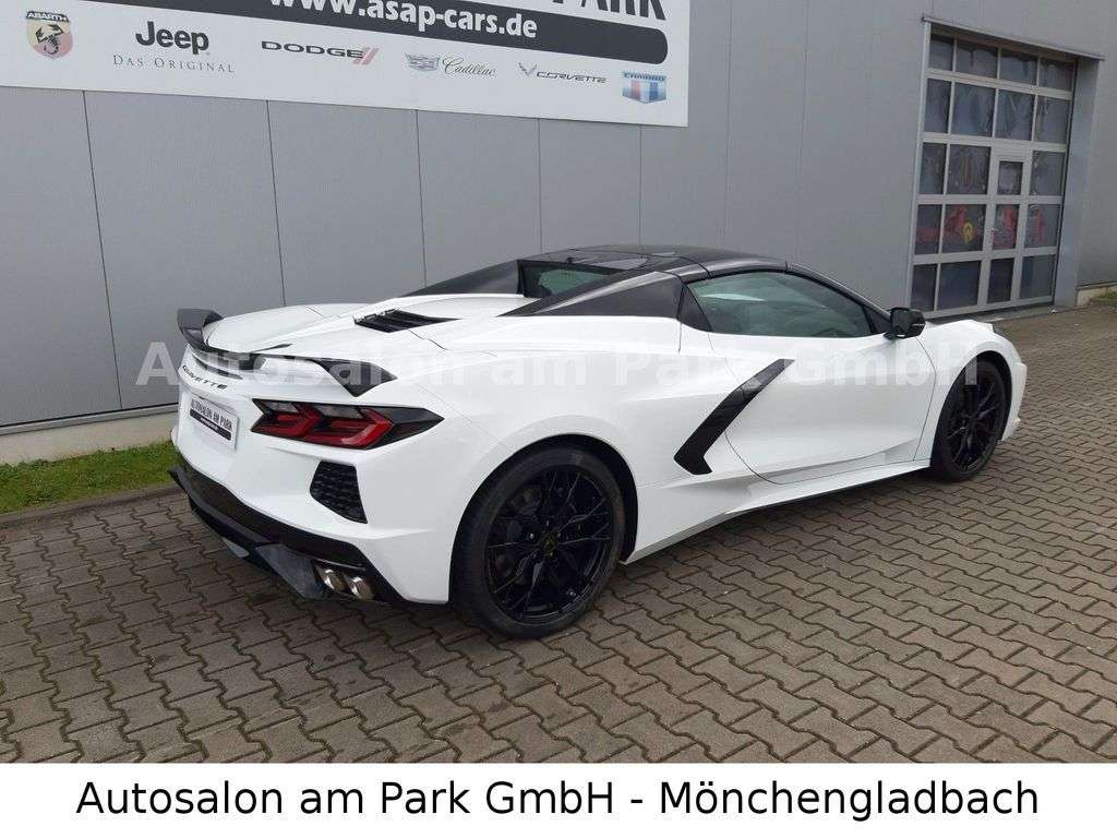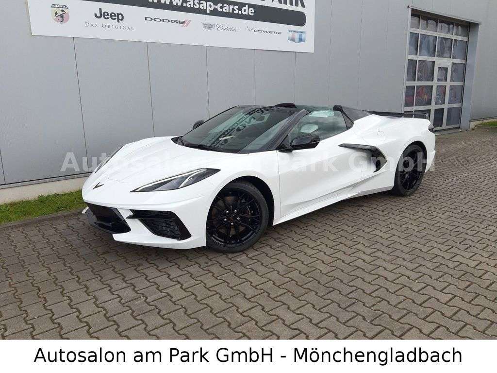 zielle Corvette C8 für Deutschland!!Corvette C8 Convertible 2LTarctic whiteMagnetic RideLeichtmetallfelgen 20 Speichen gloss blackAussenspiegel und Heckspoiler carbon black lackiertDach und hintere Dachausläufer carbon blackGT1 SitzeHTA / Jet Black Mulan interiorMittel-Motor 6,2 L LT2 V8 mit Trockensumpf-Schmierung,8-Gang Tremec Doppelkupplungs-Getriebe mit Schaltwippen,Z51 Performance Paket (Brembo-Bremsanlage, Sportauspuffanlage, elektronische fferenzialsperre, verstärktes Kühlsystem, Frontsplitter und Heckspoiler, Reifen Michelin Pilot Sport 4S VA 245/35ZR19, HA 305/30ZR20),Aluräder 19X8.5 / 20X11,Keyless Go System,Embleme in Carbon Flash,Zweizonen Klimaautomatik,Lederlenkrad,elektr. verstellbare Lenksäule,beheizbares Lenkrad,Sitzheizung,Sitzkühlung,Sitze 8-fach elektr. verstellbar inkl Memory Paket,Außenspiegel elektr. verstellbar /einklappbar / beheizt / Blinksignal im Außenspiegel,Rückfahrkamera, Frontkamera, Toterwinkel-Assistent, Einpark-Assistent hinten, Querverkehrswarner hinten,Head-Up splay, Performance Data Recorder, 12"-Farb-InfobildschirmBose Performance Soundsystem mit 14 Lautsprechern, Wireless Charging (Smartphone-Ladestation),Infotainment- System mit Navigation und 8"-Touchscreen-splayLED-Scheinwerfer2LT-Ausstattung08/23LS-34607Europamodell mit Werksgarantie von 3 Jahre oder bis 100.000 km ab Tag der ErstzulassungInklusive Überführungskosten.Wir sind offizieller Corvette, Cadillac, Chevrolet, Dodge, RAM und Jeep Vertrags- und ServicepartnerZwischenverkauf und Irrtümer für dieses Angebot sind ausdrücklich vorbehalten.e Fahrzeugbeschreibung dient lediglich der allgemeinen Identifizierung des Fahrzeuges und stellt keine Gewährleistung im kaufrechtlichen Sinne dar. Ausschlaggebend sind einzig und allein die Vereinbarung in der Auftragsbestätigung oder im Kaufvertrag. Den genauen Ausstattungsumfang erhalten Sie von unserem Verkaufspersonal. Bitte kontaktieren Sie uns. \Zwischenverkauf und Irrtümer für dieses Angebot sind ausdrücklich vorbehalten. e Fahrzeugbeschreibung dient lediglich der allgemeinen Identifizierung des Fahrzeuges und stellt keine Gewährleistung im kaufrechtlichen Sinne dar. Ausschlaggebend sind einzig und allein die Vereinbarungen in der Auftragsbestätigung der Verbindlichen Bestellung. Den genauen Ausstattungsumfang erhalten Sie von unserem Verkaufspersonal. Bitte kontaktieren Sie uns.Sprechen Sie uns an, wir beraten Sie gerne, Ihr freundliches und kompetentes Team vom Autosalon am Park.