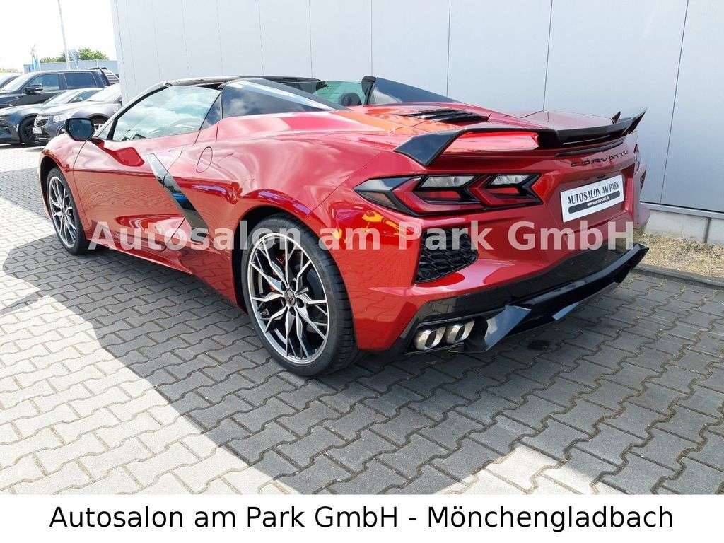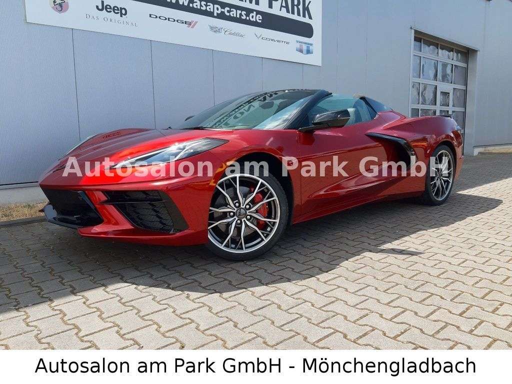 zielle Corvette C8 für Deutschland!!Corvette C8 Convertible 3LTtactical redGT2 SitzeNappa Leder jet blackedge red brake caliperscarbon fiber interieurstealth aluminium interieurDachausläufer und hintere Dachhälten carbon blackAussenspiegel und Heckspoiler carbon blackLM Felgen bright Machined 20 SpeichenBatterieladesystemFrontliftsystemMagnetic RideMittel-Motor 6,2 L LT2 V8 mit Trockensumpf-Schmierung,8-Gang Tremec Doppelkupplungs-Getriebe mit Schaltwippen,Z51 Performance Paket (Brembo-Bremsanlage, Sportauspuffanlage, elektronische fferenzialsperre, verstärktes Kühlsystem, Frontsplitter und Heckspoiler, Reifen Michelin Pilot Sport 4S VA 245/35ZR19, HA 305/30ZR20),Aluräder 19X8.5 / 20X11,Keyless Go System,Embleme in Carbon Flash,Zweizonen Klimaautomatik,Lederlenkrad,elektr. verstellbare Lenksäule,beheizbares Lenkrad,Sitzheizung,Sitzkühlung,Sitze 8-fach elektr. verstellbar inkl Memory Paket,Außenspiegel elektr. verstellbar /einklappbar / beheizt / Blinksignal im Außenspiegel,Rückfahrkamera, Frontkamera, Toterwinkel-Assistent, Einpark-Assistent hinten, Querverkehrswarner hinten,Head-Up splay, Performance Data Recorder, 12"-Farb-InfobildschirmBose Performance Soundsystem mit 14 Lautsprechern, Wireless Charging (Smartphone-Ladestation),Infotainment- System mit Navigation und 8"-Touchscreen-splayLED-ScheinwerferLT3-Ausstattung06/23LS-28089Europamodell mit Werksgarantie von 3 Jahre oder bis 100.000 km ab Tag der Erstzulassung Inklusive Überführungskosten. Wir sind offizieller Corvette, Cadillac, Chevrolet, Dodge, RAM und Jeep Vertrags- und Servicepartner Zwischenverkauf und Irrtümer für dieses Angebot sind ausdrücklich vorbehalten. e Fahrzeugbeschreibung dient lediglich der allgemeinen Identifizierung des Fahrzeuges und stellt keine Gewährleistung im kaufrechtlichen Sinne dar. Ausschlaggebend sind einzig und allein die Vereinbarung in der Auftragsbestätigung oder im Kaufvertrag. Den genauen Ausstattungsumfang erhalten Sie von unserem Verkaufspersonal. Bitte kontaktieren Sie uns. \Zwischenverkauf und Irrtümer für dieses Angebot sind ausdrücklich vorbehalten. e Fahrzeugbeschreibung dient lediglich der allgemeinen Identifizierung des Fahrzeuges und stellt keine Gewährleistung im kaufrechtlichen Sinne dar. Ausschlaggebend sind einzig und allein die Vereinbarungen in der Auftragsbestätigung der Verbindlichen Bestellung. Den genauen Ausstattungsumfang erhalten Sie von unserem Verkaufspersonal. Bitte kontaktieren Sie uns.Sprechen Sie uns an, wir beraten Sie gerne, Ihr freundliches und kompetentes Team vom Autosalon am Park.