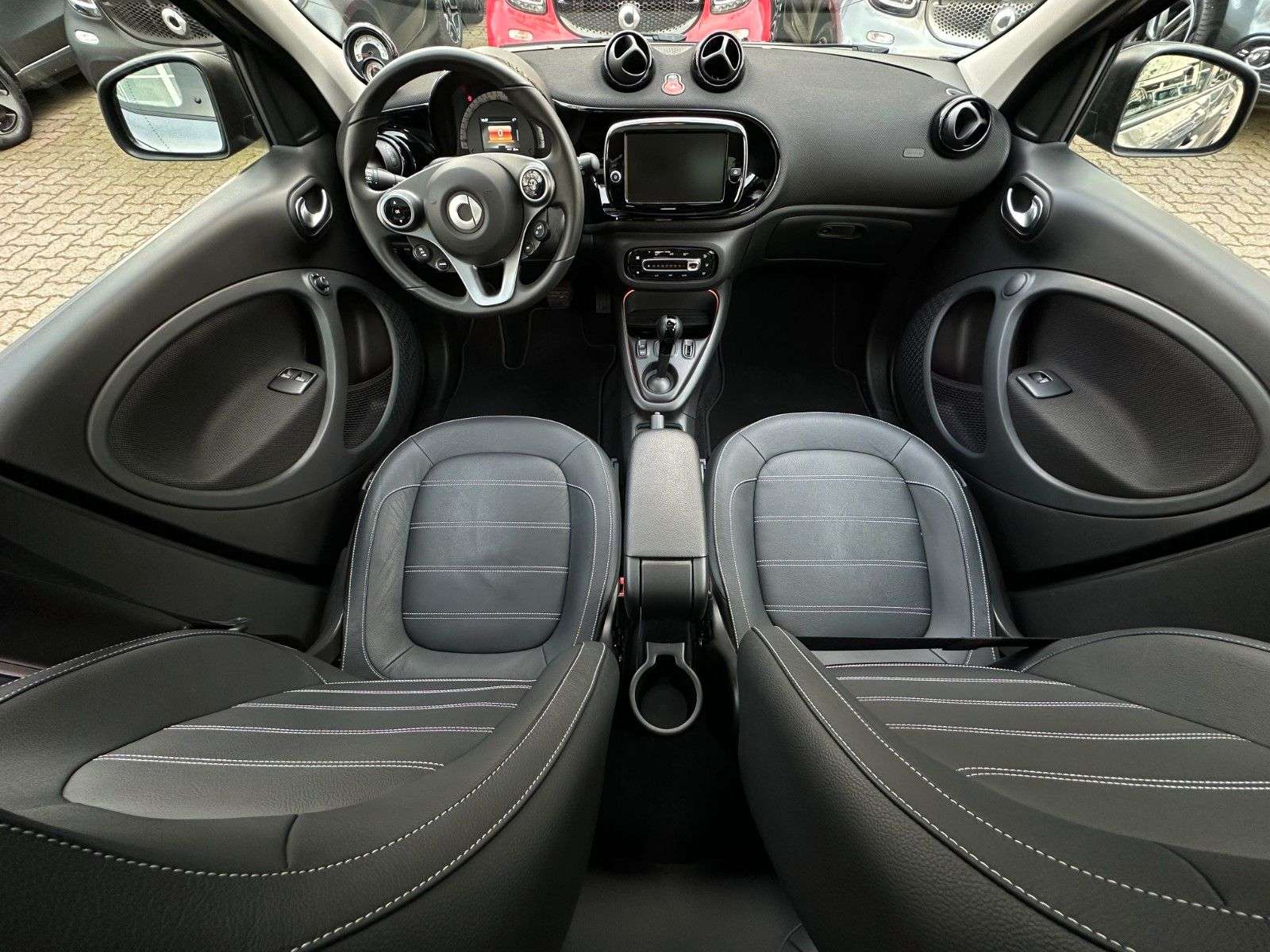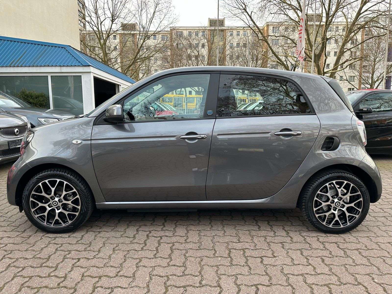 sstattung:Audiosystem Smart Media-System connect, Ausstattungs-Paket: Exclusive, Ausstattungs-Paket: Plus, Erste Hilfe-Kasten / Verbandkasten, Ladekabel-Paket, Metallic-Lackierung, Schnellladevorrichtung, Tridion-Sicherheitszelle Graphite-greyWeitere Ausstattung:Airbag Beifahrerseite abschaltbar, Airbag Fahrer-/Beifahrerseite, Akustischer Fußgängerschutz (undmodul), Außenspiegel schwarz, Außentemperaturanzeige, Blinkleuchten seitlich Weiß, Bordcomputer, Cool & Audio-Paket, Design- und Ausstattungslinie Prime, Elektromotor 60 kW (cont. 41 kW), Fahrassistenz-System: aktiver Bremsassistent, Fahrassistenz-System: Berganfahr-Assistent, Fahrzeug mit HV-Kauf-Batterie, Heckscheibenwischer, Isofix-Aufnahmen für Kindersitz, Karosserie: 5-türig, Knieairbag Fahrerseite, Kopf-Airbag-System / Seitenairbag, Kühlermaske schwarz, genarbt, Laderaumabdeckung, Modellbezeichnung geändert, Modellpflege, Radioempfang digital (DAB), Reifendruck-Kontrollsystem, Rücksitz klappbar, Schalt-/Wählhebelgriff Leder, Seitenfenster hinten ausstellbar, Sicherheitsgurte vorn höhenverstellbar, Sitzlehne vorn rechts umklappbar, Steckdose (12V-Anschluß), Verzurrösen Koffer-/Laderaum, Warnanlage / Statusanzeige für Sicherheitsgurte im Fond, Zusatzinstrumente für Batterieladezustand und LeistungsanzeigeTERMINVEREINBARUNG ZWECKS BESICHTIGUNG IST ERWÜNSCHT!Unsere Öffnungszeiten sind:Mo. - Fr.: 09-18 UhrSa.: 10-14 UhrGÜNSTIGE FINANZIERUNGSANGEBOTE DURCH UNSERE PARTNERBANK AUCH OHNE ANZAHLUNG MÖGLICHGERNE NEHMEN WIR IHREN ALTEN GEBRAUCHTEN IN ZAHLUNGSMART ForFour EXCLUSIVE EQ (60 KW / 82 PS)MODELLPFLEGEELEKTROMOTOR 60kWincl. BATTERIELADEKABEL-PAKET / AUFBEWAHRUNGS-PAKET22 kW BORDLADER MIT SCHNELLLADEFUNKTIONscheckheftgepflegtgraphite grey metallic (grau)TRIDION-SICHERHEITSZELLE grau metallicPANORAMADACH MIT SONNENSCHUTZROLLOLEDER SCHWARZBRABUS INSTRUMENTENTAFEL IN STOFF SCHWARZGETRIEBE AUTOMATISCH FÜR ELEKTROANTRIEBTEMPOMAT / SPEEDTRONICKLIMAAUTOMATIKSERVOLENKUNGDIREKTLENKUNGAKTIVER BREMSASSISTENTSITZHEIZUNGEINPARKHILFE HINTENRÜCKFAHRKAMERADAB-RADIOSPORT-PAKETPLUS-PAKETEXCLUSIVE PAKETCOOL & MEDIA PAKETKOMFORT-PAKETPLUS PAKETEXCLUSIVE PAKETNAVIGATIONSSYSTEMSMART MEDIA-SYSTEM MM2012 MIT SOUNDSYSTEMMULTIMEDIA BEDIENUNG AM LENKRADFREISPRECHANLAGEBORDCOMPUTERLEICHTMETALLFELGENKOMBIINSTRUMENT MIT FARB-DISPLAYREIFENDRUCKKONTROLLELED-TAGFAHRLICHTLICHTAUTOMATIKREGENSENSORNEBELSCHEINWERFERINNENSPIEGEL AUTOMATISCH ABBLENDENDAußenspiegel elektrisch verstellbarel. FensterheberLederlenkrad inkl. LederschaltknaufElektronisches Stabilitätsprogramm (ESP)Zentralverriegelung mit FernbedienungABSAirbags (FRONT-KOPF-KNIE-THORAX)WegfahrsperreFUSSGÄNGER-AUFPRALLSCHUTZ VORNE & SEITEMODELLPFLEGEEURO 6 TechnikGARANTIE BIS ZU 5 JAHREN MÖGLICHIrrtümer und Druckfehler vorbehalten