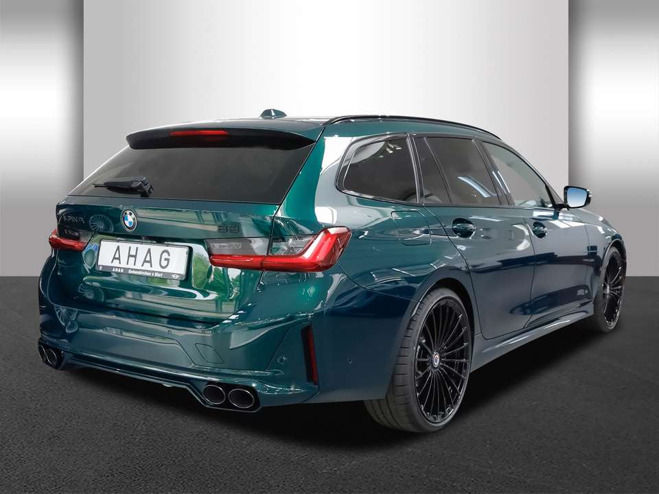 sstattungDriving Assistant ProfessionalALPINA CLASSIC 20“ Schmiederadnderlackierung ALPINA Grün II met.Hochleistungs-BremsanlageInstrumententafel lederbezogenPanorama GlasdachBMW Live Cockpit Professional incl. Full Colour Head-Up DisplayAnhängerkupplung, mit elektrisch schwenkbarem Kugelkopf und AnhängerstabilisierungskontrolleAdaptiver LED-ScheinwerferEndrohrblenden SchwarzParking Assistant PlusKomfortzugangHarman Kardon Surround und SystemFußmatten ALPINA mit LedereinfassungnnenschutzverglasungDeko-Set Schwarz, seitlich und FrontspoilerGepäckraumpaketActive ProtectionPersonal eSIMLeuchten Shadow LineKofferraummatte ALPINA mit LedereinfassungSWITCH-TRONIC Schaltwippen aus Vollaluminium, CNC gefrästLordosenstütze für Fahrer und BeifahrerWireless Charging AblageModellbezeichnung B3 und ALPINA Schriftzug, lackiert in SchwarzBMW Individual Hochglanz Shadow Line mit erweiterten UmfängenBMW Drive RecorderAkustikverglasungFernlichtassistentGalvanikapplikationen für BedienelementeSchriftzug ALPINA Schwarz hochglänzend, im Frontspoiler, freistehendALPINA Metallemblem in den Sitzlehnennderausstattung ab WerkEdelholzausstattung ALPINA Pianolack mit Insignia mit Akzentleiste Perlglanz ChromSerienaustattungElektrische Heckklappen-ZuziehhilfeElektr. Sitz-Memory für AußenspiegelGeschwindigkeitsregelanlageEinparkhilfe vorne Sensor, Einparkhilfe hinten Sensor & Kamera, Einparkhilfe seitlich SensorDifferentialsperre hintenTagfahrlichtKopf-/Dach Airbag vorn und hintenDachreling getöntFahrer-Airbag, Beifahrer-Airbag mit Deaktivierung für BeifahrerairbagSeiten-Airbag vorneArmlehne für RücksitzeFahrersitz Sportsitz mit fünf elektr. Verstellmöglichkeiten, Sitzheizung, Lehnenneigungsverstellung mit Memory, Längsverstellung mit Memory, Längsverstellung mit Memory, Sitzflächenneigungsverstellung mit Memory und mechanischer Oberschenkelauflage, Beifahrersitz Sportsitz mit vier elektr. Verstellmöglichkeiten, Sitzheizung, elektrischer Lehnenneigungsverstellung, elektrischer Längsverstellung, elektrischer Höhenverstellung, elektrischer Sitzflächenneigungsverstellung und mechanischer OberschenkelauflageSportfahrwerkAktive Radaufhängung mit wählbarer Einstellung und einstellbaren Stabilisatoren elektronischNavigationssystem mit Bedienung über Touch Screen, Datenquelle: Internet (Farbe), 14,90 Zoll-Bildschirm, Verkehrsinformation und Verkehrsinfo Monate inklusive: 24Sprachbedienung herstellereigenTelematik mit automatischem Notruf, mit SIM im Fahrzeug, Tracking System, Concierge Service Monate inkl.: und PannenhilfePartikelfilterLokale Sprache Deutsch, Alpina, B3, 3.0 Allrad Touring und 3.0 Allrad TouringCrash Warnsystem aktiviert Bremslicht, Müdigkeitswarnung, automatische Notbremsung, Front und Heck Mindestgeschw. Zur Aktivierung: 5 km/h Fußgängerschutz, visuelle/akustische Warnung, Funktion über 130 km/h 78 mph, Funktion über 50 km/h 30 mph und Funktion unter 50 km/h 30 mphBluetoothStart/StopEinparkassistent hinten und vollautomatisches Ein- und Ausparken 90°Multi-Funktions-Monitor mit 12,30 Zoll Bildschirm Kombi-Instrumente 1 und Bildschirmgröße (cm):, Multi-Funktions-Monitor mit 14,90 Zoll Bildschirm und Touch-Bedienung Armaturenbrett 1, Bildschirmgröße (cm):, fix, Drehknopf, Touchpadsteuerung und neinEnergie RückgewinnungParkplatzinformationInterner Speicher/Festplatte 320,00 GBFahrereinstellungen Motorcharakteristik, Lenkung, Fahrwerk, Stabilitätskontrolle und TraktionskontrolleFernbedienung Klimaanlage per Internet, per Telefon, mit Zeitschaltuhr, mit Heizen und mit KühlenInstallierte AppsApp-SteuerungText - Sprache/Sprache - Text6 AirbagsGarantie Antrieb - OEM Dauer (Monate) 36 und Gesamtfahrleistung (km) 9.999.999Mobiltelefonintegration Apple CarPlay, Android Auto, Apple Monate inklusive: 999, Android Monate inklusive: 999, MirrorLink Monate inklusive: 0, Apple drahtlos und Android drahtlosAmbientelicht einhüllend, Farbauswahl und reaktives LichtWLTP Emissionen ICE und kombiniert: 229,0Elektrisches System 12Remote Services Fensterbruchwarnu