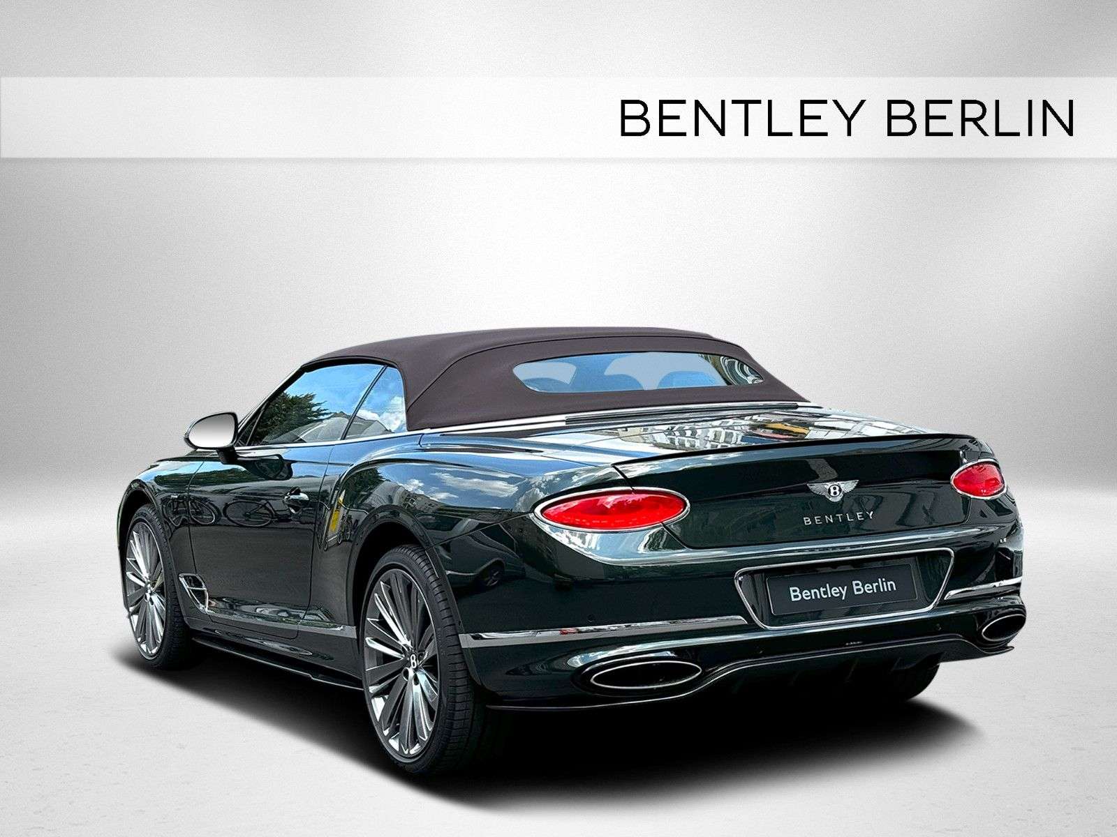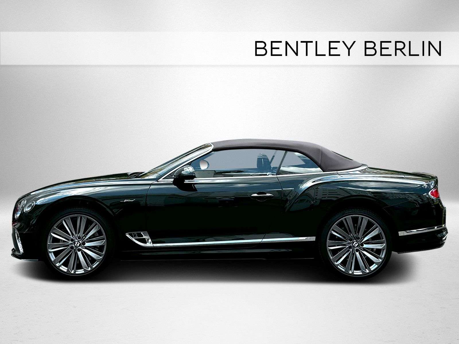 D - Sonderlackierung - NAIM Sound System - Rotating Display -Außenfarbe: Cumbrian GreenVerdeck: Dark BrwonInnenfarbe: Linen mit Burnt OakDekor: Engine Turned Aluminium - hellAUSSTATTUNG :Sonderlackierung "Cumbrian Green"Dekoreinlagen Engine Turned Aluminium- hell Kontrastkeder für Fußmatten in "Linen"LED Welcome LampsKomfort Spezifikation für VordersitzeGrill und untere Lufteinlässe hell verchromtHochflorige Teppichmatten vornNAIM for Bentley Sound System Bentley Rotating Display TV-Tuner GaragentoröffnerValet Parking SchlüsselWelcome Lighting BegrüßungslichtVerdeck in dunkelbraun " Dark Brown"Kontrastnähte in "Linen"22" Speed Felgen - dunkel getöntLuft IonisatorInduktive TelefonlademöglichkeitMood Lighting - Ambientebeleuchtung Steinschlagschutzfolie für Vorderwagen Styling Specification - Carbon Exterior Paket Touring Specification Head-Up Display, Spurhalteassistent, Night Vision - Nachtsichtassistent, Stauassistent, Bentley Safeguard Plus - Pre-Safe-Bremsfunktion, Adaptive Cruise Control (ACC) Änderungen, Irrtum sowie Zwischenverkauf vorbehalten. BENTLEY BERLIN