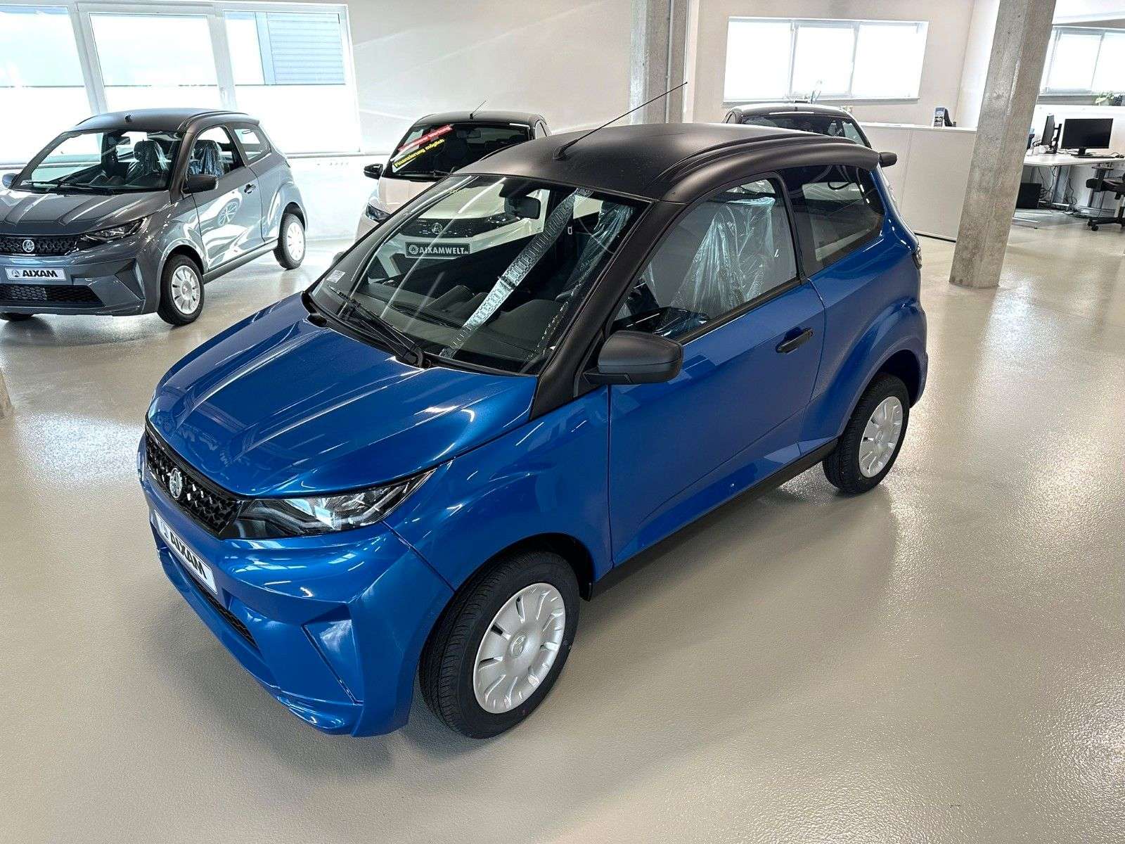 BITION CROSSLINE PACK saphirblauAuthentisch mit Ambition pur!ab 80,-€ monatlich möglich Junior Finanzierung mit oder ohne AnzahlungLaufzeit flexibel, Ratenhöhe flexibel, Anzahlung flexibel ganz nach Ihren Bedürfnissen angepasst*Gern verkaufen wir Ihr Fahrzeug nach der Laufzeit für Sie wiederXAM Leicht-Auto-Mobil• Kein TÜV, Keine HU, Keine Steuer, Zulassungsfrei• Fahren mit dem Mopedführerschein AM ab 15 Jahren• Nur Mopedkennzeichen notwendig -Vollkasko / Teilkasko / Haftpflicht möglichXAM AMBITION CROSSLINE PACKSerienausstattung ohne Aufpreis *siehe aktuelle PreislisteSerienausstattung Aussen• Außenspiegel links und rechts mit erweitertem Sichtfeld von innen einstellbar,• Doppelarmscheibenwischer,• Impulsblinker,• LED-Nebelschlussleuchten,• LED-Tagfahrlicht im Scheinwerfer integriert,• LED-Rückfahrscheinwerfer,• Scheiben getönt, • Verstärkte Türen,• Verstärkte vordere und hintere Stoßfänger,• Voll-LED-Frontscheinwerfer,• Voll-LED-RücklichtSerienausstattung Innen• Ablagefach in Türen & Armaturenbrett auf der Fahrerseite,• Gepäckraumabdeckung (Hutablage) und Gepäckstopp,• Haltegriff Beifahrerseite,• Handschuhfach mit Münz- und Getränkehalter,• Innenbeleuchtung LED,• Kofferraummatte in Stoff,• Kopfstützen in Höhe einstellbar,• Luftausströmer einstell- und regulierbar mittig,• Rückspiegel mit Abblendfunktion,• Sicherheitsgurte Automatik,• Sitz Fahrer in Längsrichtung und Rückenlehne einstellbar,• Sitze in Stoff,• Sonnenblende mit Schminkspiegel Beifahrer,• Steckdose 12V (bei Tablet Radio ersetzt durch USB Anschluss)Audio• Autoradio mit MP3/RDS/AUX/USB /DAB+/Bluetooth ohne CD,• 2 Lautsprecher Ø 130 mmWeitere Serienausstattung• Automatische Verriegelung der Türen bei 5 km/h,• Dritte LED Bremsleuchte,• Einschlüsselsystem Türen/Zündschloss/Tankdeckel,• Elektrische Heckklappenöffffnung mit Fernbedienung und externer Bedienung,• Fensterheber elektrisch,• Heckscheibenheizung mit automatischer Zeitbegrenzung,• Heizung-Lüftung-Enteisung dreistufig,• Lenkradschloss,• Scheibenwischer vorne dreistufig inklusive Intervallschaltung• Scheibenwaschanlage mit automatischer Wischfunktion,• Signalwarnton „Licht an“ ,• Türverriegelungs-/Entriegelungssteuerung am Armaturenbrett,• Warnblinkanlage mit automatischer Aktivierung bei Vollbremsung,• Wegfahrsperre bei eingelegtem Gang,• Zentralverriegelung mit Fernbedienung und optischer Blinker-Rückmeldung,• Zentralverriegelung mit Schlüssel einklappbarDekorelemente• Armaturenbrett- und Türdekor innen in Kunststoff schwarz,• Außenspiegelschalen in schwarz glänzend,• Dach, A-Säule und ggf. Heckspoiler in schwarz samt,• Innenverkleidung A- und B Säule in Kunststoff, • Kühlergrill Design Sternen schwarz glänzend,• Türgriffe außen in schwarz samt Kombiinstrument• Akustische Warnanzeige für Bremsbelagverschleiß,• Anzeige des eingelegten Gangs D-N-R, • LCD-Bildschirm 1 Zoll,• Tankreserveanzeige mit Nadel und Warnanzeige,• Wartungsanzeige,• 7 verschiedene Warnleuchten,• 9 verschiedene LichtanzeigenReifen und Felgen• Stahlfelgen mit Radzierblenden, Reifen 145/70R13• Reifenfüllflasche (nicht bei Option Ersatzrad)Optionale Zusatzausstattung (*gegen Aufpreis)• Aixam Connect: Tablet Radio mit 6,2’’ Touchscreen Bluetooth/USB/DAB/Rückfahrkamera• Alarmfunktion für Zentralverriegelung• Alufelgen, Reifen 155/65R14, “Rotor-Style” silber• Ersatzrad, Reifen 145/70R13 inkl. Wagenheber und Radschlüssel• Klimaanlage• Trennwand Fahrgastzelle / Kofferraum• Warmluftheizung dieselbetrieben (zusätzlich)*Fahrzeug kann Zusatzausstattung mit Aufpreis enthalten*Zusatzausstattung siehe aktuelle Preisliste*Wir liefern Ihr Fahrzeug gern inklusive Transportversicherung direkt bis vor die TürBesichtigung und Probefahrt nach vorheriger Terminvereinbarung jederzeit möglich.XAMWELT - die Welt der Leicht-Auto-Mobilewww.aixamwelt.dePreis zzgl. optionaler Zusatzausstattung, Extras und ZubehörIrrtümer, Zwischenverkauf und Änderungen vorbehaltenzzgl. 890,- € Überführung Frankreich - Deutschland