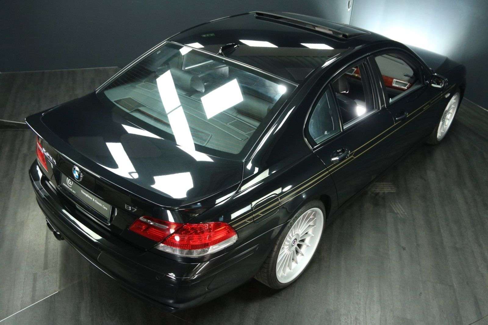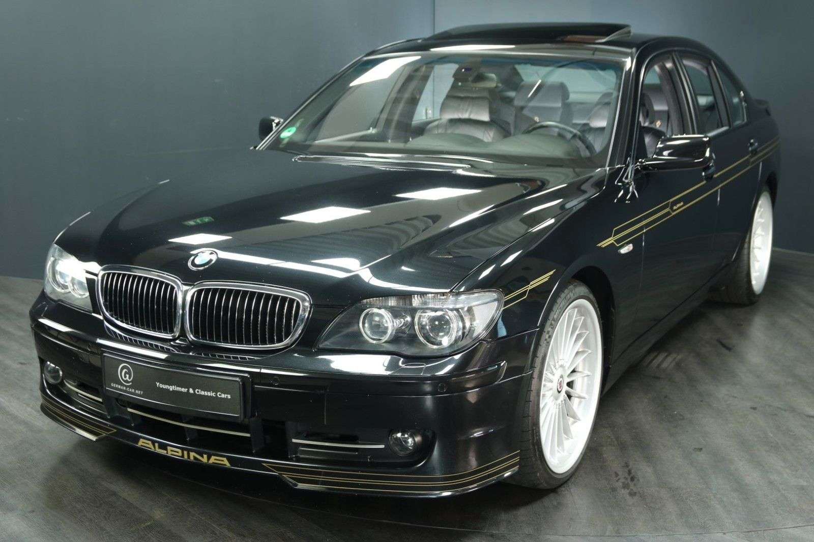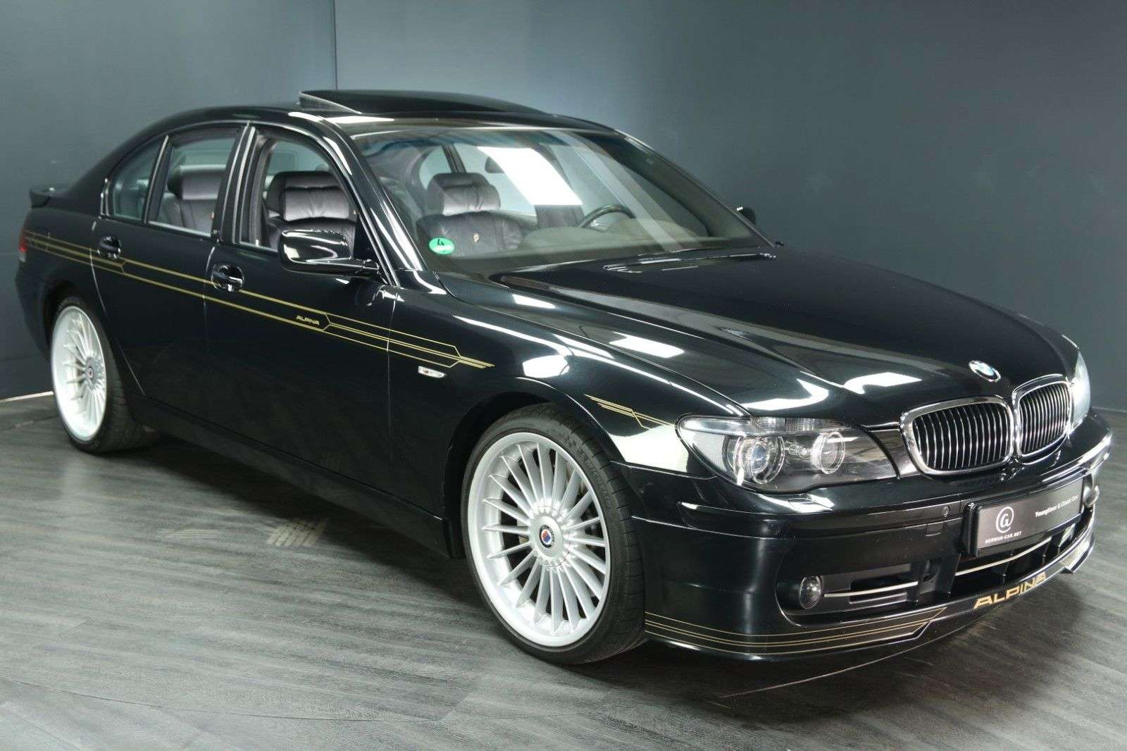 bungDieser Alpina B7 war stets in Deutschland zugelassen. Der aktuelle Eigentümer, in dessen Auftrag wir den B7 anbieten, besitzt das Auto seit 2019 und hat lediglich etwa 3.000 Kilometer mit ihm zurückgelegt.Der Zustand des Alpina ist einfach außergewöhnlich gut. Erheblich besser, als man es bei einem bald zwanzigjährigen Auto erwarten könnte.Der gesamte Innenraum überzeugt durch einen beinahe unbenutzt wirkenden Zustand. Das Leder duftet ausgesprochen verführerisch ...Für weitere Fragen und Informationen zu diesem Alpina oder für einen sichtigungstermin rufen Sie uns gern an oder schreiben uns eine E-Mail. Telefon: 0 46 24 - 803 1933E-Mail: niels.baumann@german-car.net BordmappeDie original Alpina Bordmappe aus schwarzem Leder ist erhalten. Darin befinden sich:die triebsanleitung von BMWdie Zusatzbetriebsanleitung von Alpinadas Verzeichnis der BMW Service-Stützpunkte (Europa)die Pflegehinweisedas originale Alpina ServiceheftIn diesem Scheckheft sind folgende Einträge zu finden:Übergabedurchsicht vom 8.5.2006 (Einlegerpapier)Einfahrkontrolle vom 05.07.2006 bei 2.577 Kilometern (BMW Maintal)Service am 18.11.2009 bei 18.971 Kilometern (BMW Maintal)Service am 26.09.2013 bei 28.539 Kilometern (BMW Wiesbaden)Service am 04.07.2014 bei 43.558 Kilometern (BMW Wiesbaden)Service am 07.11.2014 bei 53.437 Kilometern (BMW Wiesbaden)Service am 08.05.2015 bei 61.131 Kilometern (BMW Wiesbaden)Service am 14.09.2016 bei 70.073 Kilometern (Alpina Buchloe)Service am 02.05.2017 bei 71.397 Kilometern (Alpina Buchloe)Service am 03.09.2018 bei 74.423 Kilometern (Alpina Buchloe)Zusätzlich verfügen wir über folgende Dokumente:TÜV Gutachten vom 09.05.2006 bei 0 Kilometern (Neuwagenabnahme)Abgasuntersuchung bei 27.09.2013 bei 28.538 KilometernDekra richt vom 27.09.2013 bei 28.538 KilometernService Arbeitsblatt vom 07.11.2014 bei 53.437 KilometernService Arbeitsblatt vom 08.05.2015 bei 61.129 KilometernService Arbeitsblatt vom 13.05.2015 bei 61.617 KilometernTÜV richt vom 19.05.2015 bei 61.880 KilometernServicerechnung vom 14.09.2016 bei 70.073 KilometernServicerechnung vom 02.05.2017 bei 71.397 KilometernTÜV richt vom 07.08.2017 bei 74.407 KilometernServicerechnung vom 03.09.2018 bei 74.423 KilometernFahrzeugbewertung vom 13.08.2019 bei 76.962 KilometernTÜV richt vom 08.10.2019 bei 77.342 KilometernServicerechnung vom 11.08.2020 bei 78.335 KilometernGTÜ richt vom 18.10.2021 bei 78.657 KilometernTÜV richt vom 14.11.2023 bei 79.069 KilometernAusstattungAusgestattet ist unser Alpina B7 E65 ausgesprochen umfangreich. Er besitzt:AutomatikSchiebehebedach in GlasausführungKlimaautomatikWurzelholz4 elektrische FensterheberRadio mit CD-Wechsler undNavigationsystemelektrisch verstellbare Außenspiegelelektrisch verstellbarer Sitz vorn links mit Memoryelektrisch verstellbarer Sitz vorn rechts mit MemorySitzheizungMittelarmlehne vorn und hinten, jeweils mit FachFreisprecheinrichtunggetönte ScheibenMultifunktionslenkradDoppelairbag und Seitenairbags in den vier TürenServoschließungAlpina FußmattenPompadourtaschen an den Rückenlehnenelektrische Rollos in den FondtürenHeckrollo elektrischDachhimmel in schwarzKopfstützen im FondAlpina LeichtmetallfelgenSpiegel im Dachhimmel des Fonds, ausklappbarelektrisch verstellbare LenksäulePark Distance ControlReifendruckkontrolleKofferraumdeckel schließt und öffnet elektrischReserverad (Leichtmetallfelge)Alpina DekorInnenspiegel automatisch abblendendNebelscheinwerferBi-XenonscheinwerferScheinwerferreinigungsanlageetc. etc.Für weitere Fragen und Informationen zu diesem phantastischen Alpina B7 oder für einen sichtigungstermin rufen Sie uns gern an oder schreiben uns eine E-Mail.Telefon: 0 46 24 - 803 1933E-Mail: niels.baumann@german-car.netZwischenverkauf und Irrtümer für dieses Angebot sind ausdrücklich vorbehalten. Die Fahrzeugbeschreibung dient lediglich der allgemeinen Identifizierung des Fahrzeuges und stellt keine Gewährleistung im kaufrechtlichen Sinne dar. Ausschlaggebend sind einzig und allein die Vereinbarungen in der A