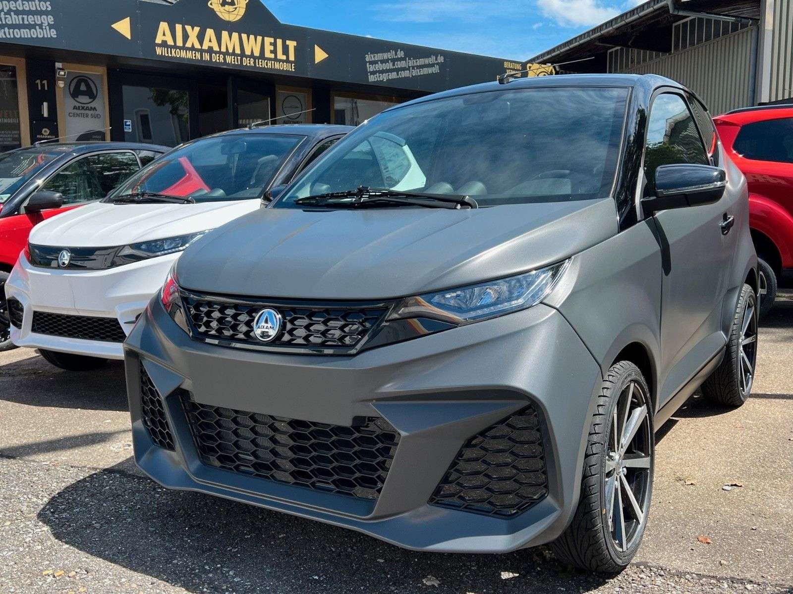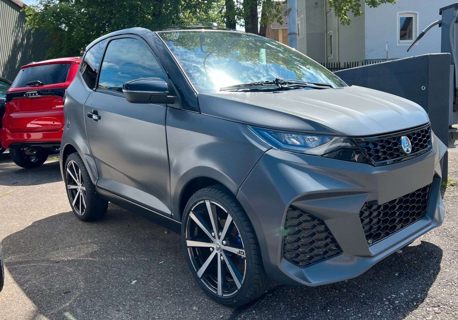 bition Coupé GTI graphitmatt– kraftvoll und sportlich*inklusive Zusatzausstattung auf Anfrage*Fahrzeug kann Zusatzausstattung mit Aufpreis enthalten*Zusatzausstattung mit Aufpreis siehe aktuelle PreislisteABS (bei City Pack nicht zubuchbar)7 Zoll Multimedia inklusive Rückfahrkamera DAB+, USB, Bluetooth Apple CarPlay, Android9 Zoll Multimedia inklusive Rückfahrkamera DAB+, USB, Bluetooth Apple CarPlay, AndroidSubwoofer Soundanlageseitliche Aufkleberseitliche Schweller CarbonKlimaanlageAlarmfunktionStandheizungReserveradPannensetTrennwand Kofferraum (nur bei City Pack und City Sport Aufpreis)Fußmatten (nur bei City Pack und City Sport Aufpreis)Sonderfarbe (bei City Pack und City Sport Aufpreis, Metallic)Sonderfarbe graphitmatt (bei City GTO und Coupé GTI)Winterreifen auf Alufelgen 155/65 R14 oder 155/65 R15ab 130,-€ monatlich möglich Junior Finanzierung mit oder ohne Anzahlung Laufzeit flexibel, Ratenhöhe flexibel, Anzahlung flexibel ganz nach Ihren Bedürfnissen angepasst*Gern verkaufen wir Ihr Fahrzeug nach der Laufzeit für Sie wiederKein TÜV, Keine HU, Keine Steuer, ZulassungsfreiFahren mit dem Mopedführerschein AM ab 15 JahrenNur Mopedkennzeichen notwendig -Vollkasko / Teilkasko / Haftpflicht möglichSerienausstattung ohne Aufpreis (inklusive)*siehe aktuelle PreislisteAIXAM COUPÉ GTI / SerienausstattungAussenspiegel links und rechts, von innen einstellbarBlinker im Aussenspiegel (zusätzlichDoppelarmscheibenwischerHeckspoiler, schwarz glänzendLED-Tagfahrlicht länglichNebelrückleuchtenRückfahrscheinwerfer rechts und linksScheiben getöntScheiben hinten stark getöntSportfahrwerkAblagefach in Türen & MittelkonsoleArmaturenbrett in moderner Automobil-Spritzgusstechnik,Handschuhfach mit Münz- und GetränkehalterDachhimmel in Stoff (bei Crossline Evo in Kunststoff)Fußmatten schwarz mit Stickereien und blau gesäumtGepäcknetz im Kofferraum, herausnehmbarGepäckraumabdeckung und GepäckstoppHaltegriff Fahrer- und Beifahrerseite (bei Pack nur Beifahrer)Innenbeleuchtung LED mit Zeitverzögerung beim Ausschalten(bei Pack ohne Zeitverzögerung)Kofferraum- und Radlaufverkleidung in StoffLuftausströmer einstell- und regulierbar, mittigLuftausströmer einstell- und regulierbar, rechts und linksMittelkonsole mit Getränke- und BecherhalterungRückspiegel mit AbblendfunktionSicherheitsgurte AutomatikSchalldämmung FahrgastzelleSchalldämmung MotorraumSitze in Sportausführung mit integrierten Kopfstützen inKunstleder schwarz und mit blauer Steppnaht - Sitz Fahrer in Längsrichtung und Rückenlehne einstellbar - Sitz Beifahrer Rückenlehne einstellbarSitzgestell Verkleidung seitlichSonnenblende mit Schminkspiegel Fahrer und BeifahrerSteckdose 12 VTrennwand Fahrgastzelle / Kofferraumxam Konzert 6 Lautsprecher (2x650W maxi)AIXAM CONNECT BASIS Tablet Radio mit 6,2’’ TouchscreenBluetooth/AUX/USB/RückfahrkameraDritte Bremsleuchte mit LEDEinparkhilfe akustisch -Fensterheber elektrischFensterheber mit Einklemmschutz und Impulsschaltung auf FahrerseiteHeckklappenöffnung und Türverriegelung elektrisch vom Fahrersitz bedienbarHeckscheibenheizung mit automatischer ZeitbegrenzungHeckscheibenwischerHeizung-Lüftung-Enteisung dreistufigLenkradschlossScheibenwischer vorne dreistufig inklusive IntervallschaltungScheibenwaschanlage mit automatischer WischfunktionSignalwarnton „Licht an“Warnblinkanlage mit automatischer Aktivierung bei VollbremsungWegfahrsperre bei eingelegtem GangZentralverriegelung mit Funk-Einschlüsselsystem auch fürHeckklappe, Schlüssel einklapbar, Ersatzschlüssel ohne FunkKombiinstrument mit Tachoanzeige und Tankanzeige analog mit Hintergrundbeleuchtung (nicht dimmbar bei Pack) sowie Kontrollleuchten für Handbremse, Batterie, Service, Beleuchtungen, Öl, Tankreserve, Vorglühen, Neutralstellung, Motortemperatur, ...Digitaler TFT-Aktivbildschirm 3,5” mittig im Kombiinstrument mit Anzeige von Uhrzeit, Außentemperatur, Gangwahl, Gesamtkilometerstand. Verschiedene Ebenen mit Geschwindigkeitsanzeige digital, Trip A und B (Tageskilometerzähler, Durchschnittsges