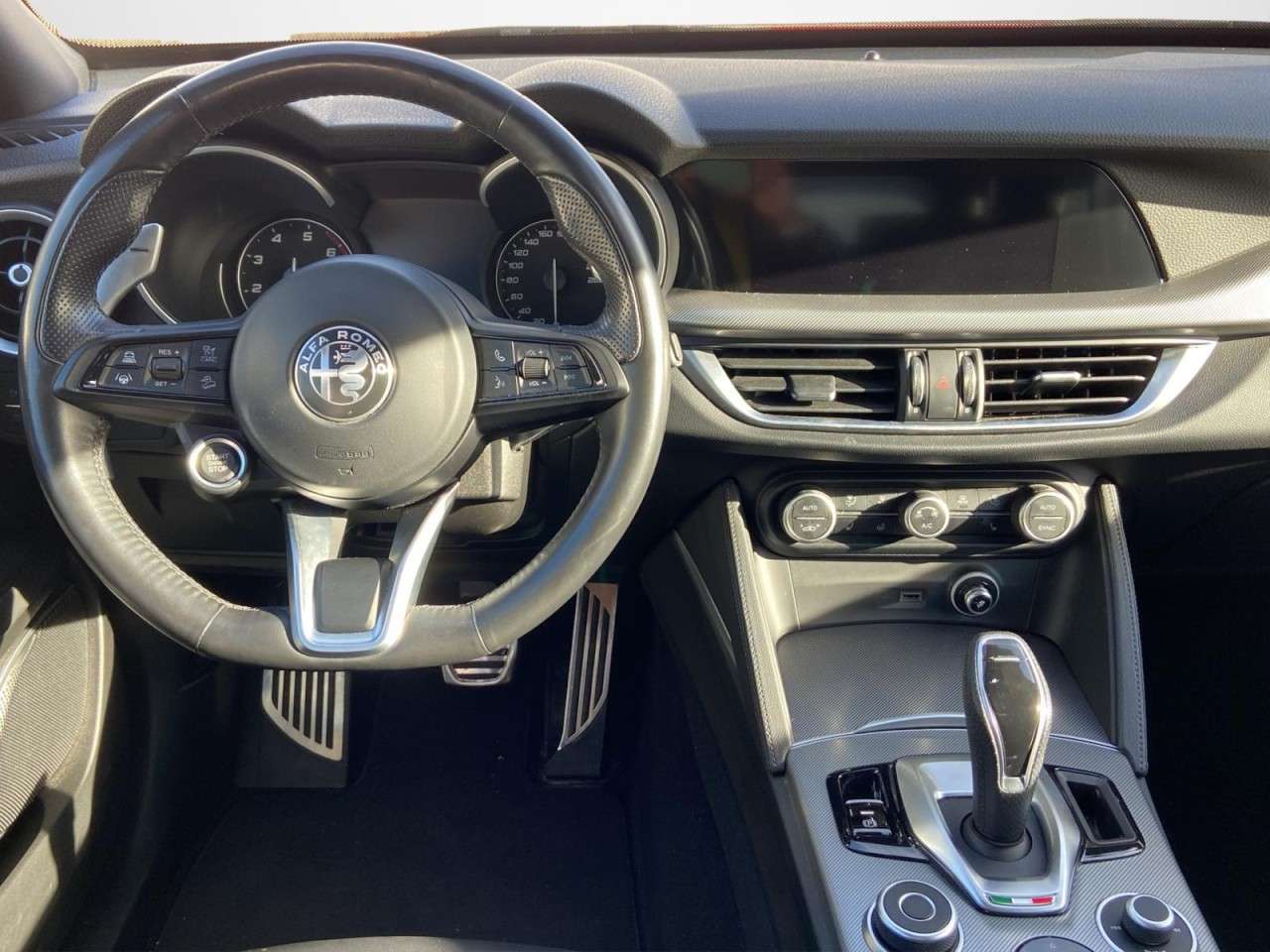 avigationssystem, BordcomputerGetriebeGetriebe Automatik - (8-Stufen)Licht und SichtBi-Xenon-Scheinwerfer mit dynamischem Kurvenlicht (AFS)Tagfahrlicht LEDLicht- und RegensensorTechnik und SicherheitFahrerairbagAirbag Fahrer-/BeifahrerseiteSeitenairbagKopf-Airbag-SystemZentralverriegelung mit FernbedienungKeyless-EntryServolenkung (Aktivlenkung)Adaptive Geschwindigkeitsregelanlage (Adaptive Cruise Control)Wegfahrsperre (elektronisch)Anti-Blockier-System (ABS)Vehicle-Dynamic-Control (ESP / VDC)Start/Stop-AnlageKopfstützen hintenSperrdifferential (Q2)Reifendruck-KontrollsystemScheibenwaschdüsen heizbarAssistenzsystemeFahrassistenz-System: Autonomer Notbrems-Assistent (AEB)Fahrassistenz-System: Berganfahrhilfe (Hill-Holder)Fahrassistenz-System: FernlichtassistentFahrassistenz-System: Spurhalteassistent (Lane Departure Warning)Fahrassistenz-System: Müdigkeitserkennungs-Sensor (DAA)Fahrassistenz-System: VerkehrszeichenerkennungMultimediadioempfang Digital (DAB)Audiosystem: Sound TheatreUSB-Anschluss im FondFreisprecheinrichtung Bluetooth inkl. Audio-StreamingInduktionsladeschale für SmartphoneKomfortKlimaautomatik 2-ZonenPanoramadach / Ausstelldach (Glas)RückfahrkameraEinparkhilfe elektronisch vorn und hintenAußenspiegel elektrischAußenspiegel elektr. verstell- - heiz- und anklappbarAußenspiegel mit AbblendautomatikFensterheber elektrisch vorn + hintenHeckklappenöffnung elektrischColorverglasungSeitenscheiben hinten und Heckscheibe abgedunkeltInnenausstattungSportsitze LederSitzheizung vornSitze vorn mit elektr. verstellbaren SeitenwangenInnenspiegel mit AbblendautomatikIsofix-Aufnahmen für KindersitzLenkrad mit Multifunktion für Audio-/TelefonbedienungLenkrad heizbarLenkrad mit Schaltwippen/-tastenLenkrad (Sport/Leder - unten abgeflacht)Sitze vorn elektr. verstellbar (6-fach) mit LendenwirbelstützeMittelarmlehne vorn mit AblagefachRücksitz geteilt / klappbar (Asymmetrisch)AussenausstattungScheinwerfer-Reinigungsanlage (SRA)LM-FelgenAnhängerkupplung (Kugelkopf abnehmbar)PaketeKomfort-PaketSport-PaketSonstigesRußpartikelfilterWeitere InformationenAssistenz-Paket 2Bremssättel Rot lackiertFahrassistenz-System: Autobahnassistent (Highway Assist)Fahrassistenz-System: Intelligente Geschwindigkeitskontrolle (ISC)Fahrassistenz-System: StauassistentFahrwerk Aktiv mit elektronischer Stoßdämpferregelung (Active Suspension)Frontscheibe infrarot-reflektierendInfotainment-System: UConnect 3D Nav (Farbbildschirm 8.8)LM-Felgen 8.5x20 (Trofeo - 10-Speichen - dunkel)Schienensystem im KofferraumTürgriffe außen mit LED-BeleuchtungAirbag Beifahrerseite abschaltbarAktive Giermomentkontrolle (AYC)Anhänger-Stabilisierungs-Programm (TSA)Antriebs-Schlupfregelung (ASR)Antriebsart: AllradantriebAuspuffanlage 2-flutigAuspuffendrohr schwarzAusstattungs-Paket: ConnectedAußenspiegel AnthrazitAußenspiegel schwarz - glänzendBlinkleuchten LED in Außenspiegel integriertBremsanlage verstärktBremsanlage: BremboBremsassistent (HBA / EBA)Bremslicht mit Notfallfunktion (Einschaltautomatik Warnblinkanlage)Bremssättel schwarz lackiertDachhimmel schwarzDynamic Steering Torque (DST)Einstiegsleiste mit Schriftzug (Logo)Elektron. Bremskraftverteiler (EBD)Elektron. Stabilitätskontrolle (ESC)Elektron. TraktionskontrolleFahrassistenz-System: Alfa Romeo D.N.A.-Fahrdynamik-SystemFahrassistenz-System: Frontkollisionswarnung (FCW)Fensterrahmen schwarzFrontgrill AnthrazitFrontgrill mit Wabendesign - hmen schwarzGetränkehalterGurtstrafferHeckdiffusorHeckle