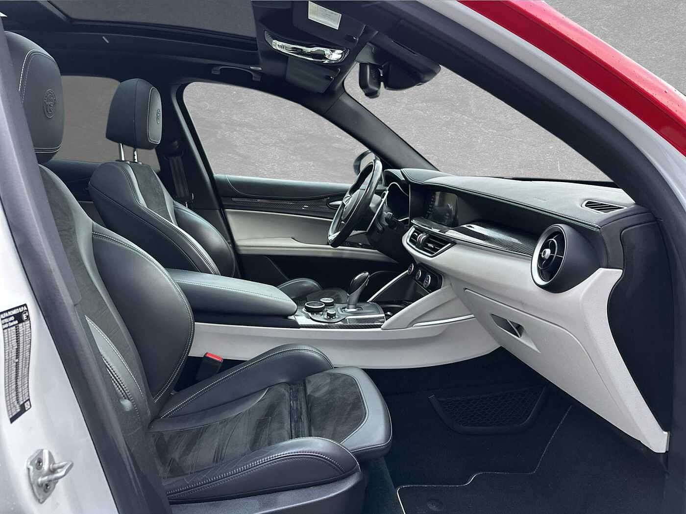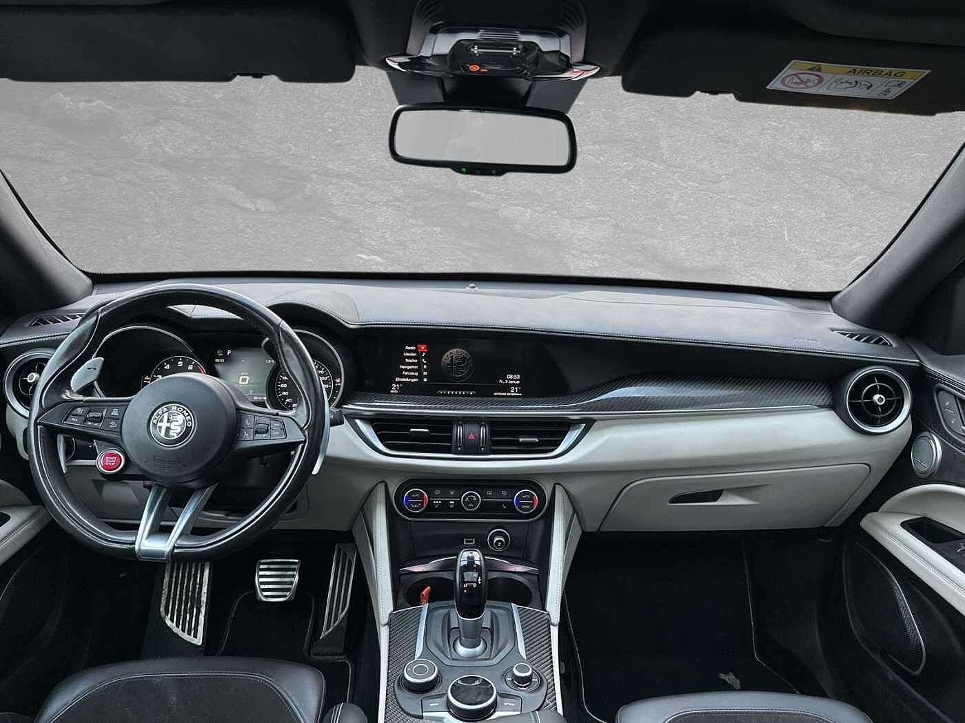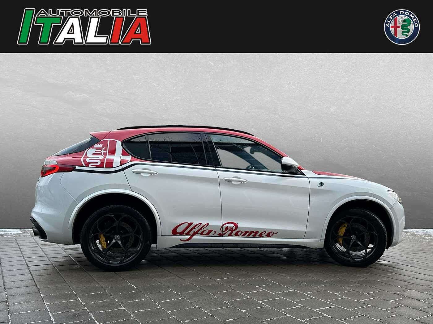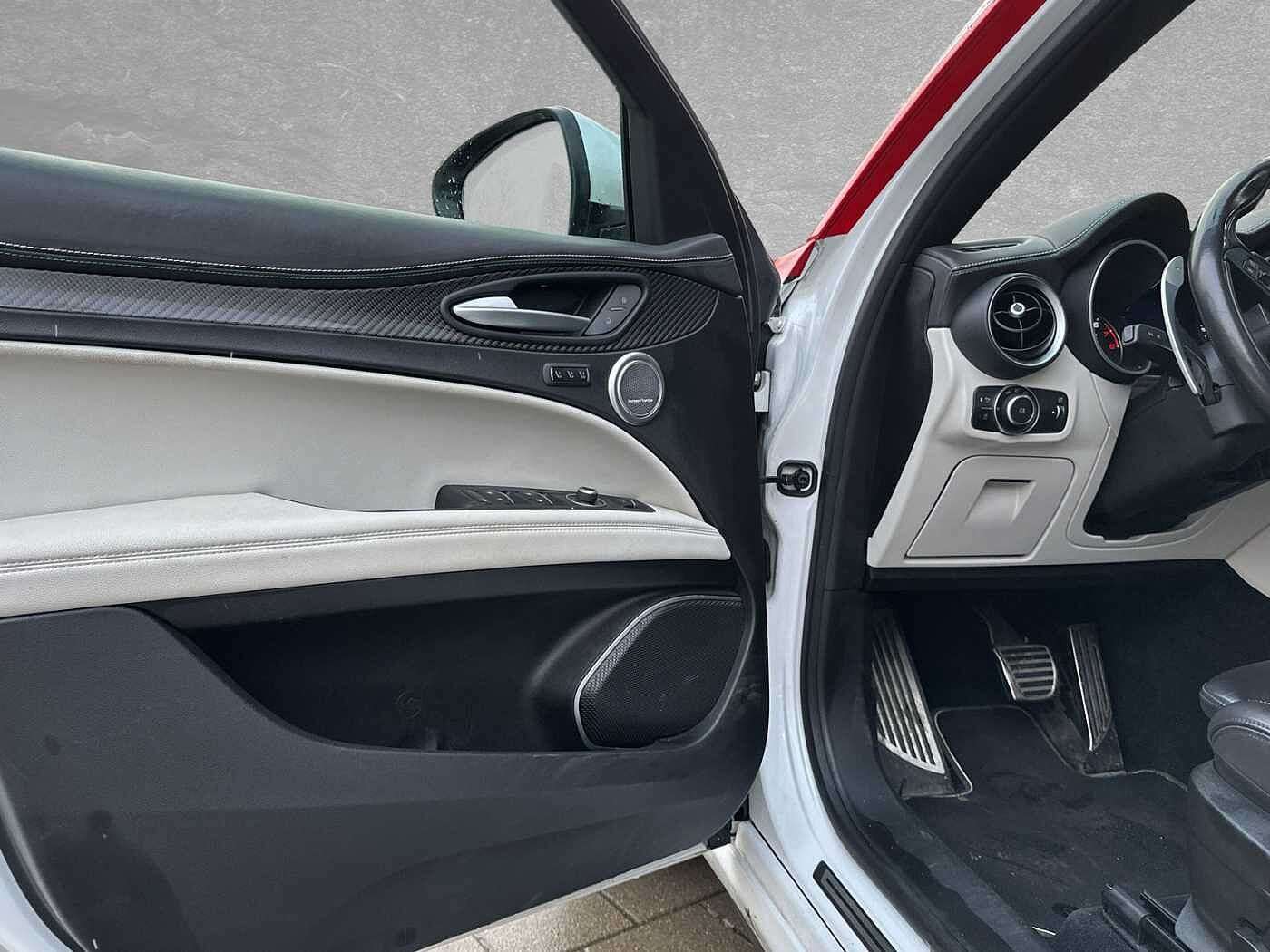 e ist Weiß und das Auto wurde vom Vorbesitzer im "SuperSport Design" foliert. Auf Wunsch kann die Folierung aber auch gerne entfernt werden.Aktuell steht der Stelvio auf Winterreifen, das Auto wurde viel auf der langstrecke bewegt und ist aus erster Hand. Sonder- und Serienausstattung: Elektrische Heckklappe Lenkrad: Lenkrad Paket: Komfort Parksensoren hinten Rückfahrkamera und Parksensoren vo/hi Schiebe-/Glashubdach elektrisch Paket: Winter Sitze: Sitzheizung vorn Quadrifoglio-Lenkrad Bremssättel gelb lackiert Radio: Hi-Fi-Audiosystem HARMAN/KARDON Adaptive Cruise Control Airbag: Kopfairbags (vorne und hinten) Airbag: Seitenairbag für Fahrer und Beif Frontairbags Fahrer- und Beifahrerseite Integriertes Bremssystem (IBS) Getriebe: 8-Stufen-Automatikgetriebe Fernlichtassistent (AHB) Fahrzeuginformations-Center mit 7"-TFT Drehzahlmesser Fahrwerk: Alfa Active Suspension Räder: LM 20" Classico Fensterheber elektrisch, vorn u. hinten Heckscheibenwischer Innenspiegel mit automat. Abblendung Kindersitzbefestigung ISOFIX im Fond Schlüssellose Motorstart-Funktion Klimaautomatik 2 Zonen Kollisionswarnsystem Kopfstützen vorn Kopfstützen: Hinten (3) höhenverstellbar Lenkrad beheizbar Lenkrad: Multifunktionstasten am Lenkrad Navigationssystem Alfa Connect 8,8" 3D Parksensoren vorn und hinten Polster: Sportsitz Leder/Alcantara QUADR Licht- und Regensensor Rückfahrkamera Außenspiegel verstell./beh./anklappbar Bi-Xenonscheinwerfer (35W) Servolenkung, elektrisch, mit DST Außenspiegelkappen in Wagenfarbe Bremsleuchte, dritte Heckscheibenheizung Reifendrucksensoren TMPS Scheibenwaschdüsen beheizbar Steckdose 230V/50HZ im Kofferraum Allradantrieb permanent Fahrdynamikregelung Alfa DNA Pro, 4-stuf Reifen-Reparaturset Fix&Go Schaltwippen hinter dem Lenkrad Einstiegsleisten aus Aluminium Elektromechanische Parkbremse Fußmatten Gepäcknetz Kofferraum-Schienensystem Lenksäule mechanisch verstellbar Mittelarmlehnen vorn Paket: Raucherpaket Quadrifoglio-Lederlenkrad Sicherheitsgurte vorne und hinten Sitze: Fahrer- und Beifahrersitz 6-fach Sportpedale und Fußstütze Aluminium Alfa Q4-Logo, hinten auf der Heckklappe Außenspiegel automatisch abblendend Bremssättel eloxiert Fensterrahmen m.Zierleiste in glänz.Schw Lackierung: Uni LED-Heckleuchten Quadrifoglio-Logo seitlich auf vorderen Stoßfänger im Quadrifoglio-Design Ottopartikelfilter OPF Sperrdifferenzial, mechanisch Spurhalteassistent (LDW) Start & Stopp-System Geschwindigkeitsregelanlage active (ACC) Totwinkel-Assistent (BSM) Wegfahrsperre elektronisch Schlüsselloses Ent- und Verriegelungssys Zentralverriegelung mit Funkfernbedienun Alle Angaben ohne Gewähr Wir sind offizieller Alfa Romeo, Jeep, Fiat, Abarth und Fiat Professional Vertriebs- und Servicepartner in Regensburg! Leasing/Finanzierung/Barkauf und die Inzahlungnahme Ihres Gebrauchten ist jederzeit möglich.Unsere Ansprechpartner für Sie:Fabian LöbMobil: +49 160 2908 001E-Mail: fabian.loeb@italia-automobile.deTel: 0941/490 88-45Armando Akgün E-Mail: armando@italia-automobile.deTel: 0941/463 793-49Elias SchlottE-Mail: elias.schlott@duennes.deTel: 0941/463 793-53Alle Angaben ohne Gewähr!