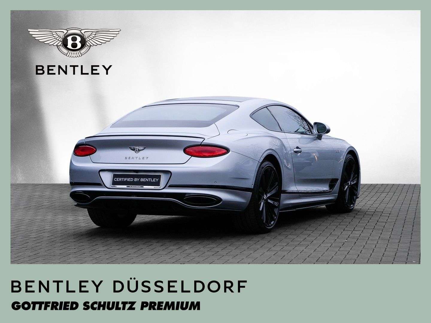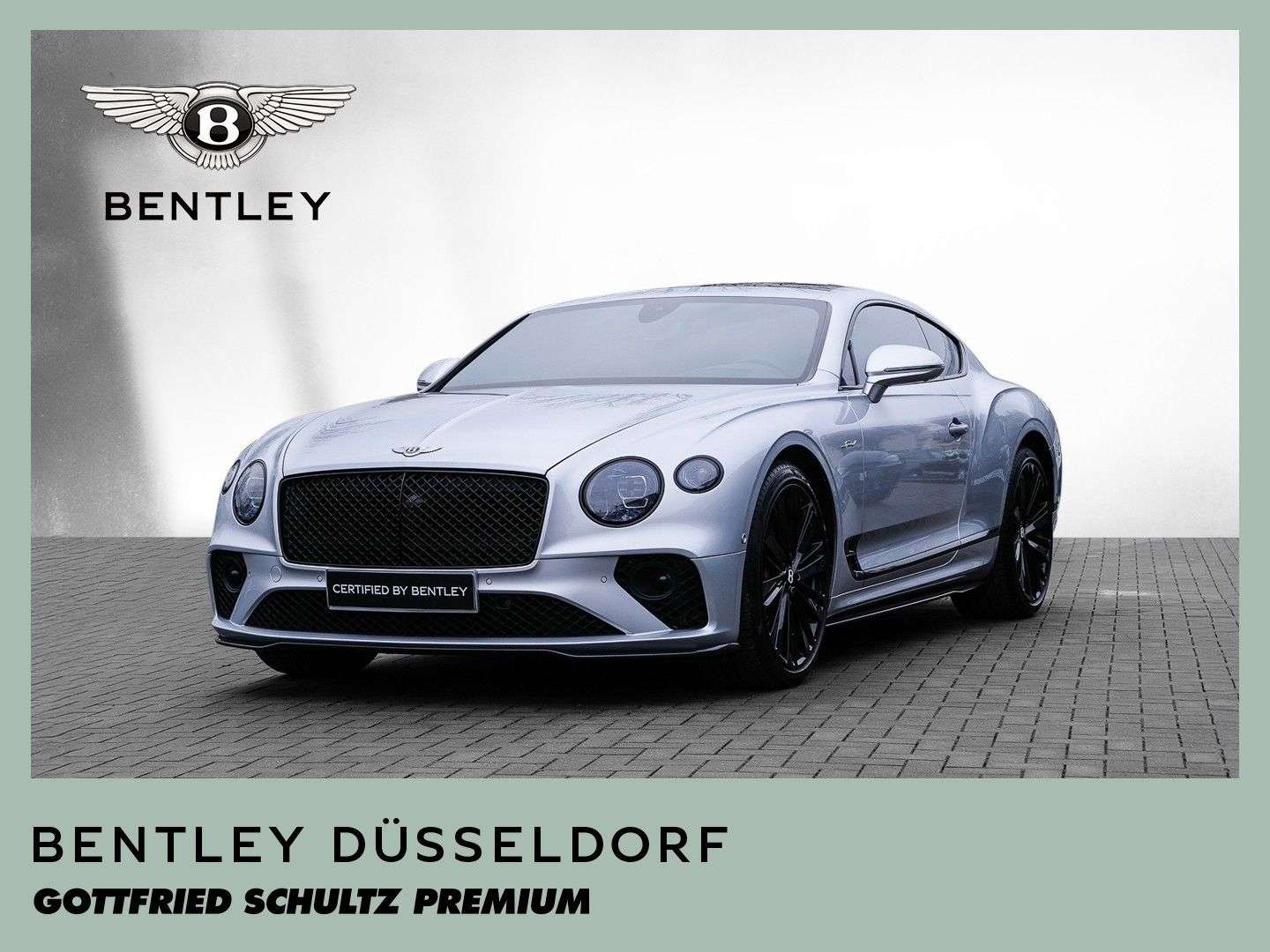 des Fahrzeuges: DüsseldorfBentley Continental GT SpeedVerkauf im KundenauftragFarbkombination:Außenfarbe: Moonbeam (silber)Hauptleder: Beluga (schwarz)Zweitleder: Beluga (schwarz)Furnier: High Gloss Carbon FibreSonderausstattung:22“ Leichtmetallfelge „Speed“, schwarz lackiertschwarz lackierte Bremssättel (auf ahlbremse)selbstnivellierendes Bentley Emblem auf den FelgenTouring Specification- ACC - Abstandregeltempomat- Kollisionswarnungssystem „Bentley Safeguard Plus“ uvm.yling Specification- oßfängerunterlippe in Carbon- Heckdiffuser aus Carbon- Seitliche Unterlippe aus CarbonBlackline Specification- äußere Zierelemente schwarz lackiert uvm.PanoramadachAmbientebeleuchtung inkl. beleuchtete EinstiegsleisteLED Bodenbeleuchtung mit Bentley-Emblem vor TürenGaragentoröffner, 3-fachandheizung (Bedienung über Smartphone)„NAIM for Bentley“ Highend Audiosystem mit 2.200 WattKomfortausstattung für die VordersitzeKontrastziernähte in Portland3-Speichen Lederlenkrad, 1-farbig, beheizbar, mit geprägtem LederRotierendes Display, 3-Fachhochflorige Fußmatten mit Ledereinfassung vorneHigh Gloss Carbon FibreTüreinlagen und Sitzflächen in Leder (ersetzt Alcantara)Batterieladezustanderhaltungsgerätinkl. gebrauchtem 21 " Bentley Original Winterkomplettradsatz ...Änderungen, Zwischenverkauf und Irrtümer vorbehalten.