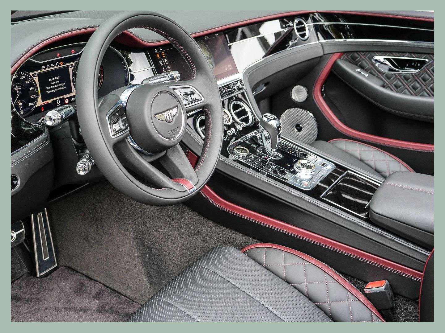 des Fahrzeuges: DüsseldorfBentley Continental GTC W12 SpeedFarbkombination:Außenfarbe: Cricketball (bordeauxrot)Lederfarbe: Beluga, Cricketball (bordeauxrot)Furnier: Piano BlackSonderausstattung:Extended Range Lackierung in Cricket BallDachfarbe Black22" Leichtmetallfelge "Sweped-Spoke" schwarz, lackiertselbstnivellierendes Bentley Embleme auf den Felgenschwarz lackierte BremssättelTouring SpecificationBlackline SpecificationKomfortausstattung für die VordersitzeKontrastziernähtegestickte Bentley Embleme auf den KopfstützenTüreinlagen und Sitzflächen in Leder (ersetzt Alcantara)Ambientebeleuchtung inkl. beleuchtete Einstiegsleistehochflorige Fußmatten mit Ledereinfassung vorne3-Speichen Lederlenkrad, 1-farbig, beheiztFurnier in Piano BlackChromstreifen im ArmaturentafelfurnierGaragentoröffner, 3-fachrotierendes Display, 3-FachBentley Dynamic Ride„NAIM for Bentley“ Highend Audiosystem mit 2.200 WattLuft-lonisatorWelcome Lighting – BegrüßungslichtLED Bodenbeleuchtung mit Bentley-Emblem vor TürenBatterieladezustanderhaltungsgerät inkl. SockelWindschott...Änderungen, Zwischenverkauf und Irrtümer vorbehalten.
