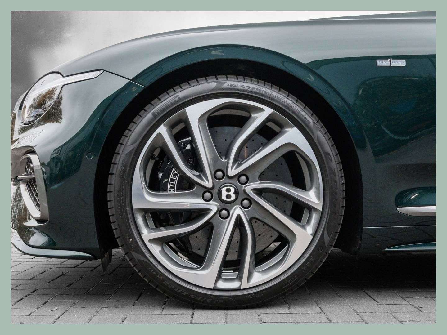 des Fahrzeuges: DüsseldorfBentley Continental GT Speed NeufahrzeugFarbkombination:Außenfarbe: Viridian (grün)Hauptleder: Portland (beige)Zweitleder: Beluga (schwarz)Furnier: Dark Tint Engine Turned Aluminium Sonderausstattung:Mulliner Range Lackierung in „Viridian“ 22“ Leichtmetallfelge im 10-Speichen „Swept Spoke“ Design, grau lackiertCarbon-Ceramic Bremsen mit schwarzen Bremssätteln selbstnivellierendes Bentley Embleme auf den Felgen First Edition Specification - Animated Welcome Lamps – by Mulliner- Technical Veneer Auswahl- Touring Specification- rotierendes Display, 3-fach- hochflorige Fußmatten vorne- “Naim for Bentley” Highend Audiosystem- Komfortausstattung für die Vordersitze- Garagentoröffner, 3-fach- Valet Key- Front Wellness Seating- Ambientbeleuchtungspaketbeheizbare Frontscheibe Panoramadach Türeinlagen und Sitzflächen in Leder (ersetzt Alcantara) Kontrastziernähte Interieurleisten und Lüftungseinlässe dunkel verchrom ...Änderungen, Zwischenverkauf und Irrtümer vorbehalten.