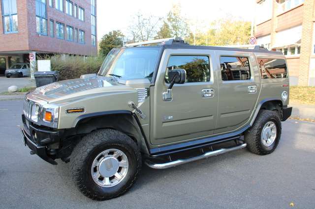 und gepflegter Hummer H2 6.0 L 243kw in Dunkelgrün MetallicPRINS Gasanlage (eingetragen), Gastank 100LiterNichtraucherfahrzeugOriginal 17" Hummer LeichtmetallfelgenReifen BFGoodrich All-Terrain neuwertig in T 315/70R17 DOT 2019Anhängerkupplung Antischlupfregelung (ASR)Außenspiegel elektrisch verstell- und anklappbarBildschirm für FondpassagiereBordcomputerDachträgerFensterheber elektrisch vorne und hintenKlimaautomatik 3-ZonenLichtsensorMultifunktionslenkradNavigationssystemPolsterung: Leder schwarzelektrisches hiebe-Aufstelldach: GlasSitzheizung vorneSitzheizung hintenSitzverstellung vorne elektrisch mit MemoryfunktionSoundsystem: BOSESperrdifferentialTempomatTrittbretterZentralverriegelung mit FunkfernbedienungHaupt- und Abgasuntersuchung NEU gültig bis November 2026 !!!Vielen Dank für Ihr Interesse an diesem Fahrzeug.DEKRA Gebrauchtwagensiegel auf Wunsch bei Übergabe möglich !!!FINANZIERUNGEN ZU TOP KONDITIONEN AUCH OHNE ANZAHLUNG MIT BIS 96 MONATEN LAUFZEIT MÖGLICH! Gerne unterbreiten wir Ihnen ein persönliches, individuelles Finanzierungsangebot der Santander Consumer Bank, sprechen Sie uns gerne an!Europaweite Fahrzeuganlieferung mit eigenem LKW oder Anhänger möglich!INZAHLUNGNAHME ist bei uns für JEDES Fahrzeug möglich, sprechen Sie uns an!Wir sind Montags bis Freitags von 10:00 Uhr bis 18:00 Uhr und Samstags von 11:00 Uhr bis 15:00 Uhr für Sie da.Besichtigung bzw. Probefahrt bitte nur nach telefonischer Absprache.Wir erstellen unsere Inserate gewissenhaft und sorgfältig. Trotzdem bitten wir um Verständnis, dass wir auf etwaige Fehler in der Anzeige keine Gewähr oder Haftung übernehmen können. Zwischenverkauf vorbehalten. ... Berganfahrhilfe, Leuchtweitenregulierung, Leseleuchten vorne, LED-Rückleuchten, LED-Blinkleuchten, 17 Zoll Leichtmetallfelgen, Bluetooth, Freisprecheinrichtung