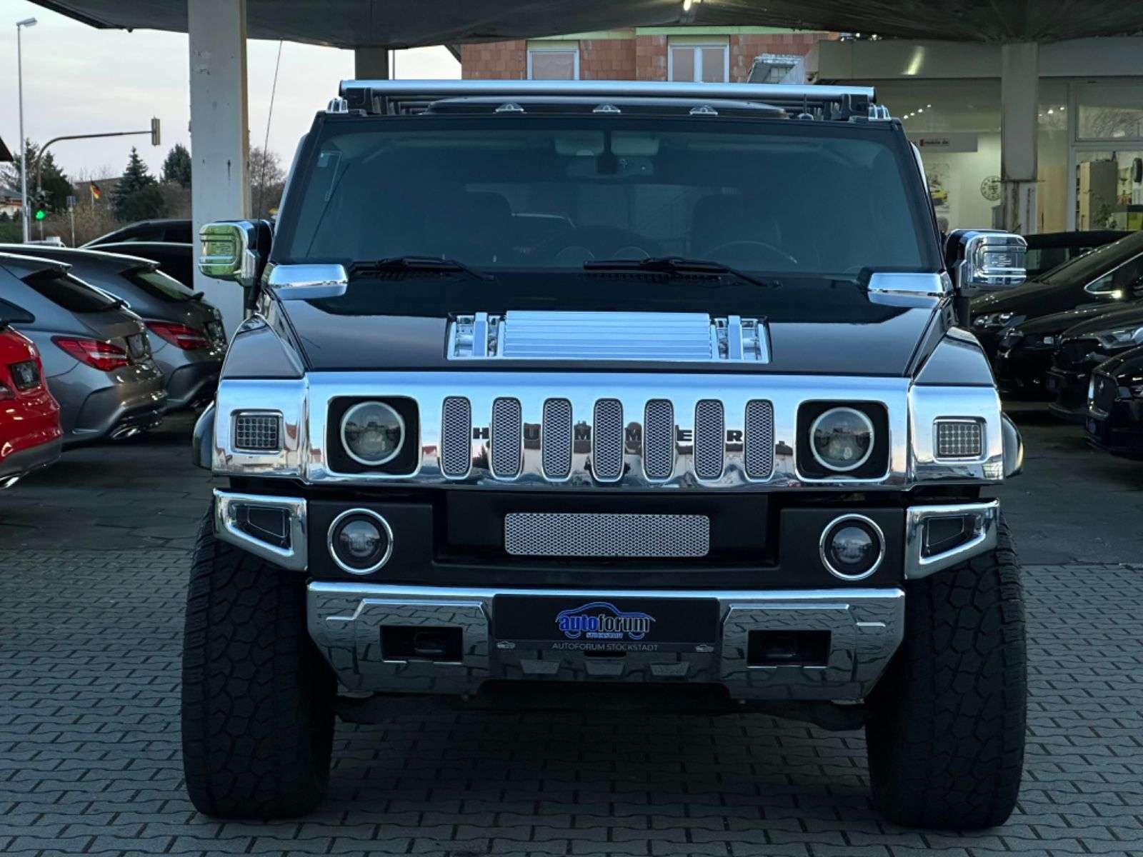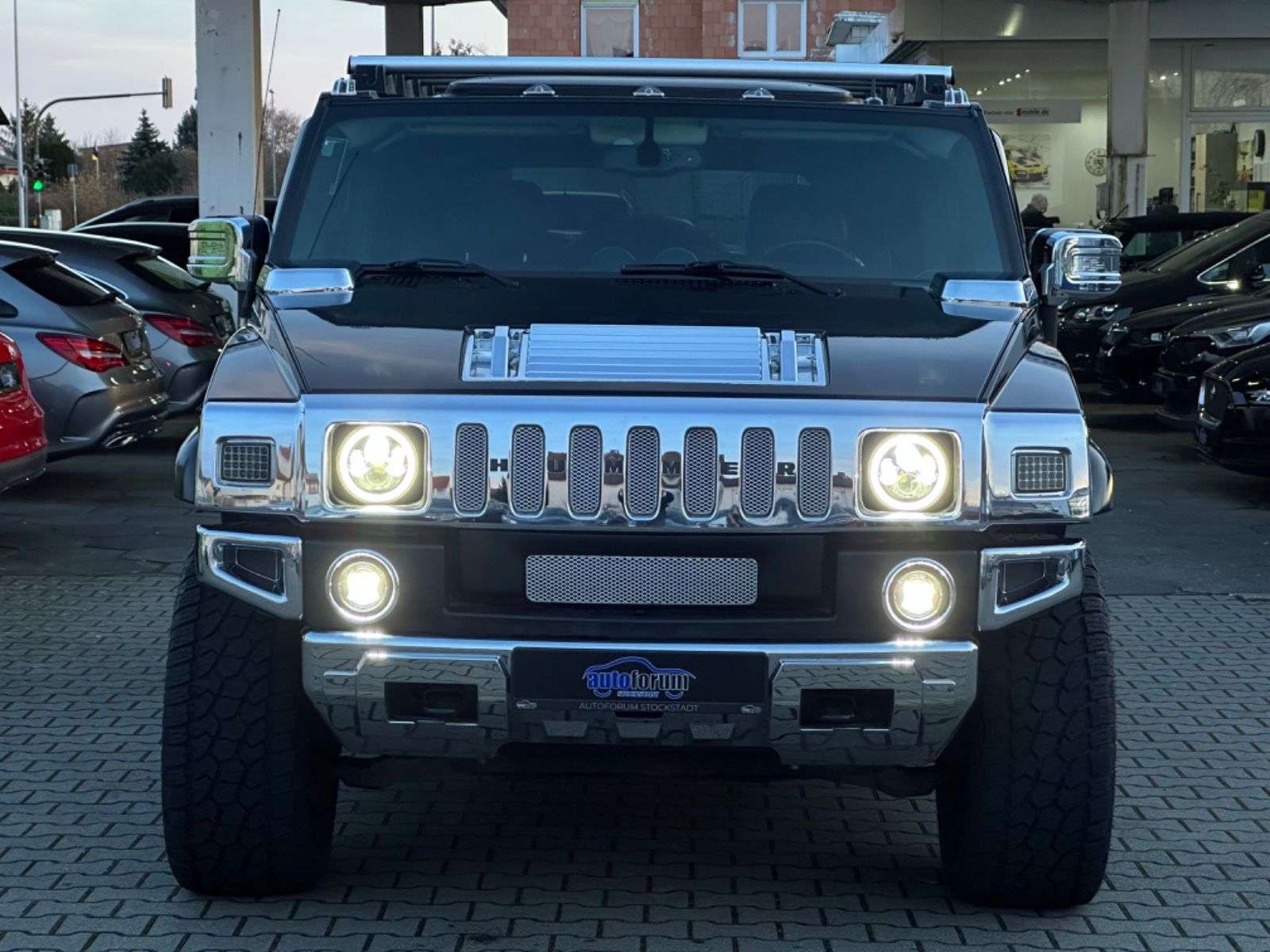 er H2 der absoluten Superlative, absolutes Unikat im Bestzustand!Der Hammer H2 ist eine Europa Version (Km/m Tacho) mit einer sehr geringen Laufleistung.Das originale Scheckheft mit Auslieferungsnachweis liegt vorDas Fahrzeug hat einen umfangreichen und einzigartigen Umbau, hierbei wurde unter anderem folgendes durchgeführt:Magnuson Kompressorumbau 508 PS (ngetragen) Verstärkte Automatikgetriebe für Kompressorbetrieb (vor 9000KM)Verteilergetriebe Generalüberholt (vor 9000KM)Brembo Bremsanlage vorne und hinten (vor 9.000KM) Vorderachskit mit Lenkgetriebe (vor 9000KM)Geänderte Edelstahlauspuffanlage mit 4 Endrohren mit brachialem Sound (vor 9000KM)Sonderräder mit All-Terrain Bereifung in 325/50 R22Kompletter LED Umbau der Aussenbeleuchtung, dieser umfasst voll-LED Scheinwerfer in schwarz mit StandlichtfunktionReserveradhalter TrittbretterK&N LuftfilterIm Innenraum wurde ein Rear Seat Entertainment (DVD in den Kopfstützen) verbaut, des weiteren fand ein großes, modernes Radio mit Touchdisplay und vielen unterschiedlichen Funktionen wie zb. Musikstreaming, Rückfahrkamera, AppleCar Play, Android Auto, Freisprecheinrichtung und vieles mehrVor 6.000KM wurden folgende Teile erneuert:Servopumpe Servoleitungs-KitMotorölkühlerleitungenGetriebeölkühlerleitungenÖlpumpeRadnaben vorne uvm.Alle Rechnungen vorhanden Zur umfangreichen Ausstattung des Fahrzeugs gehören unter anderem:SchiebedachBOSE SoundsystemLuftfahrwerk Hinterachse4x SitzheizungRückfahrkameraTempomatVollelektrische Sitze vorne, Fahrer mit Memory2-Zonen KlimaautomatikVoll-Lederausstattung Lederlenkradund vieles mehrUnser Service für Sie:-Inzahlungnahme oder Ankauf Ihres Gebrauchten-Finanzierung bis 96 Monaten möglich-Garantie bis zu 36 MonateÖffnungszeiten:-Mo - Fr 9:00 - 12:30 & 14:00 - 18:00 Uhr, Sa 9:00 - 12:00 Uhr-Auch außerhalb der Öffnungszeiten sind wir je nach Vereinbarung für Sie da!Dieses Angebot ist unverbindlich. Änderungen, Zwischenverkauf und Irrtümer vorbehalten!