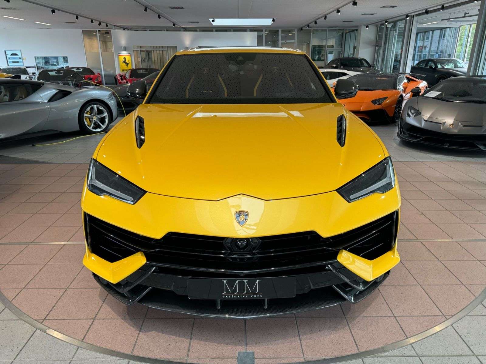 ng: Giallo Inti MetallicInnenausstattung:Bicolor-Sportivo-Alcantara mit Performante TrimHauptfarbe Nero CosmusErweitertes Lederpaket Performante Trim in den TürtafelnErweitertes Lederpaket Performante Trim auf Rückenlehnenmborghini Embleme gestickt in Kopfstütze in gialloKontrastfarbe gialloNähte in gialloCarbonfaser-Interieurpaket glänzendElektrische Vordersitze mit Belüftung und MassageElektrische Sitze Memory + Elektrische LenksäuleSportlenkrad in Alcantara beheiztFußmatten mit LedereinfassungEinstiegsleisten beleuchtetAmbiente Licht PaketSitzheizung vorn und hintenSonderaustattung:NightvisionFull ADAS PackageCarbonfaser-Exterieurpaket glänzendSpiegel CarbonHinteres mborghini Logo in schwarzAkrapovic Endrohre mattschwarzAmbiente-LichtpaketHead-Up-Display3D Bang & Olufsen Soundsystem360° KameraParkassistenzpaket mit Remote Park Assistbeheizbare und Wärmereflektierende WindschutzscheibeScheiben getönt und wärmegedämmtPanorama SchiebedachPelope Felgen 23" schwarz glänzendschwarze BremssättelSpiegel Umfeldbeleuchtung mit mborghini LogoWischerblätter mit integrierten DüsenGaragentoröffnerPremium Air Quality Systemmborghini Tracking SystemSerienaussatttung:Carbon KeramikbremsanlageSoftclose DAB RadioSonstiges: 1.HandUnfallfreiHerstellergarantieWeiterer Urus Performante im Angebot
