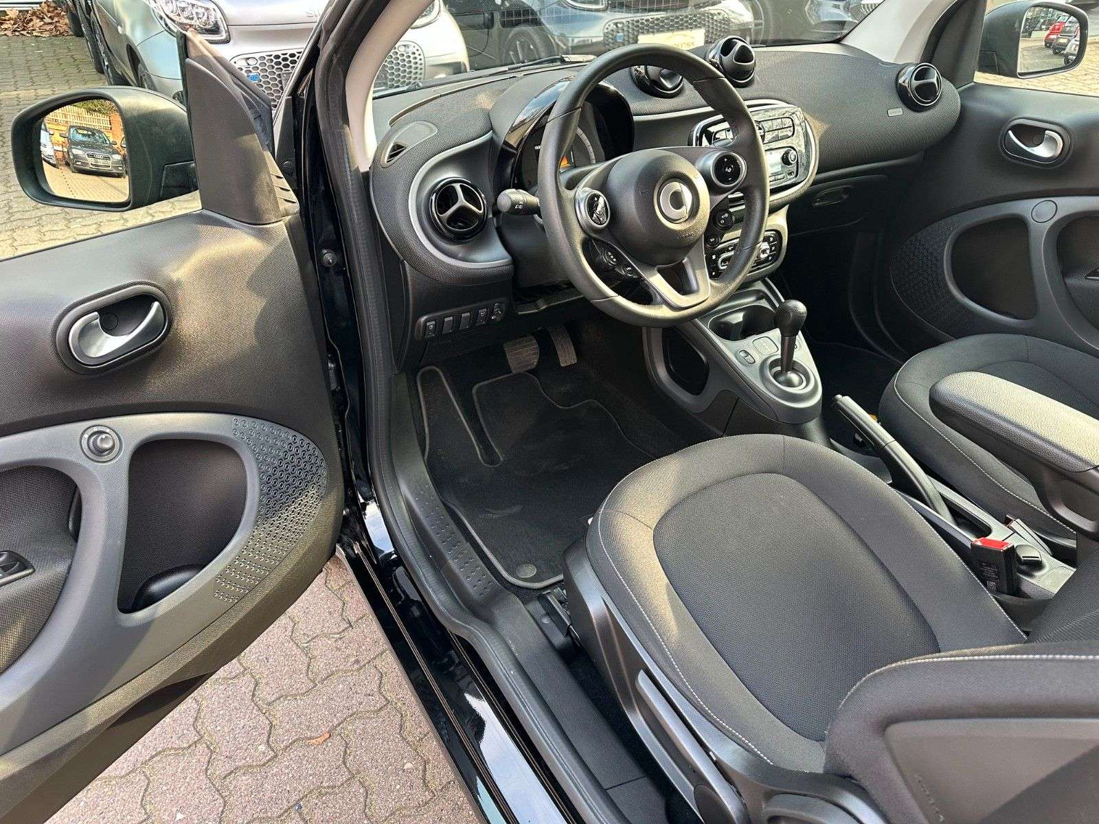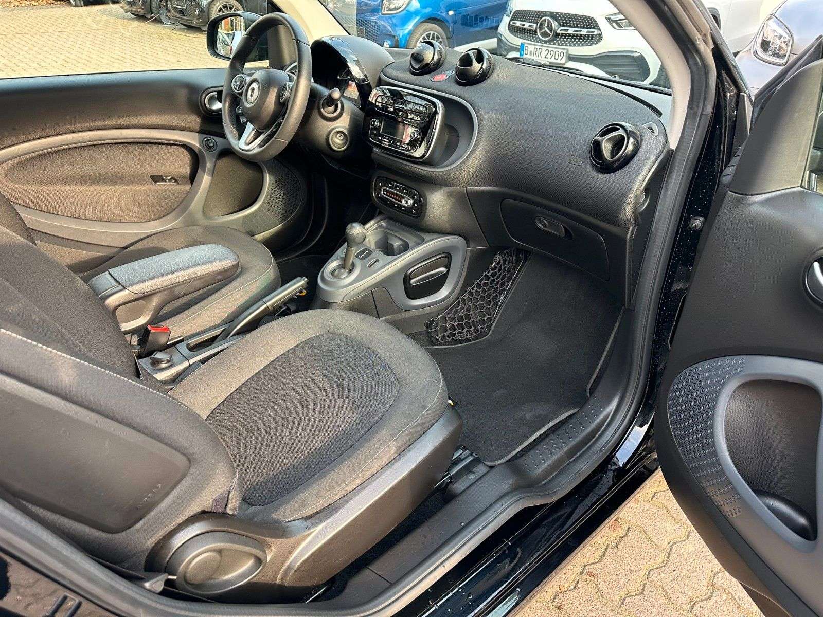 sstattung:Ablage-Paket, Cool & Audio-Paket, Einparkhilfe hinten, Erste Hilfe-Kasten / Verbandkasten, Fußmatten Velours, Komfort-Paket, Kraftstofftank: vergrößert, Laderaumabdeckung, LM-Felgen vorn/hinten: 5x15 / 5,5x15 (5-Doppelspeichen), Mittelarmlehne vorn klappbar, WarndreieckWeitere Ausstattung:Airbag Fahrer-/Beifahrerseite, Außentemperaturanzeige, Blinkleuchten seitlich Weiß, Bodypanel Tiefschwarz / Deep Black (Farbcode ECAO), Bordcomputer, Design- und Ausstattungslinie passion, Direktlenkung mit variabler Lenkkraft-Unterstützung, Fahrassistenz-System: Berganfahr-Assistent, Fensterheber elektr. vorn, mit Einklemmschutz, Getriebe 6-Gang - Doppelkupplungsgetriebe DCT, Heckscheibenwischer, Isofix-Aufnahmen für Kindersitz, Karosserie: 3-türig, Knieairbag Fahrerseite, Kombiinstrument mit Monochrom-Display, Kopf-Airbag-System / Seitenairbag, Kühlermaske schwarz, genarbt, Motor 0,9 Ltr. - 66 kW Turbo KAT, Reifendruck-Kontrollsystem, Schadstoffarm nach Abgasnorm Euro 6, Sitzlehne vorn rechts umklappbar, Start/Stop-Anlage, Steckdose (12V-Anschluß), Tridion-Sicherheitszelle schwarz (Farbcode), Verzurrösen Koffer-/LaderaumTERMINVEREINBARUNG ZWECKS BESICHTIGUNG IST ERWÜNSCHT!Unsere Öffnungszeiten sind:Mo. - Fr.: 09-18 UhrSa.: 10-14 UhrGÜNSTIGE FINANZIERUNGSANGEBOTE DURCH UNSERE PARTNERBANK AUCH OHNE ANZAHLUNG MÖGLICH!!! GERNE NEHMEN WIR IHREN ALTEN GEBRAUCHTEN IN ZAHLUNG !!!SMART ForTwo TWINAMIC passion 0.9 L (66 KW / 90 PS)aus 1. HandscheckheftgepflegtschwarzTRIDION-SICHERHEITSZELLE schwarzStoff schwarzINNENVERKLEIDUNG BRABUS/ VALUE/ LIFESTYLE (schwarz)DOPPELKUPPLUNGSGETRIEBE AUTOMATISCHTEMPOMAT / SPEEDTRONICKLIMAAUTOMATIKSMART AUDIO-SYSTEM MM2012 MIT SOUNDSYSTEMSERVOLENKUNGDIREKTLENKUNGBREMSASSISTENTCOOL & AUDIO PAKETFREISPRECHANLAGEKOMFORT-PAKETSOUNDSYSTEMMULTIMEDIA BEDIENUNG AM LENKRADBORDCOMPUTERLEICHTMETALLFELGENMITTELARMLEHNEKOMBIINSTRUMENT MIT FARB-DISPLAYREIFENDRUCKKONTROLLETAGFAHRLICHTAußenspiegel elektrisch verstellbarabschließbares Handschuhfachel. FensterheberLederlenkrad inkl. LederschaltknaufElektronisches Stabilitätsprogramm (ESP)Zentralverriegelung mit FernbedienungABSISOFIX (KINDERSITZBEFESTIGUNG)Airbags (FRONT-KOPF-KNIE-THORAX)WegfahrsperreFUSSGÄNGER-AUFPRALLSCHUTZ VORNE & SEITEAbgasreinigung EURO 6 TechnikHU / AU wird vor dem Verkauf neu gemachtNETTOPREIS FÜR EXPORT MÖGLICHGARANTIE BIS ZU 5 JAHREN MÖGLICH!!! GERNE NEHMEN WIR IHREN ALTEN GEBRAUCHTEN IN ZAHLUNG !!!Irrtümer und Druckfehler vorbehalten.
