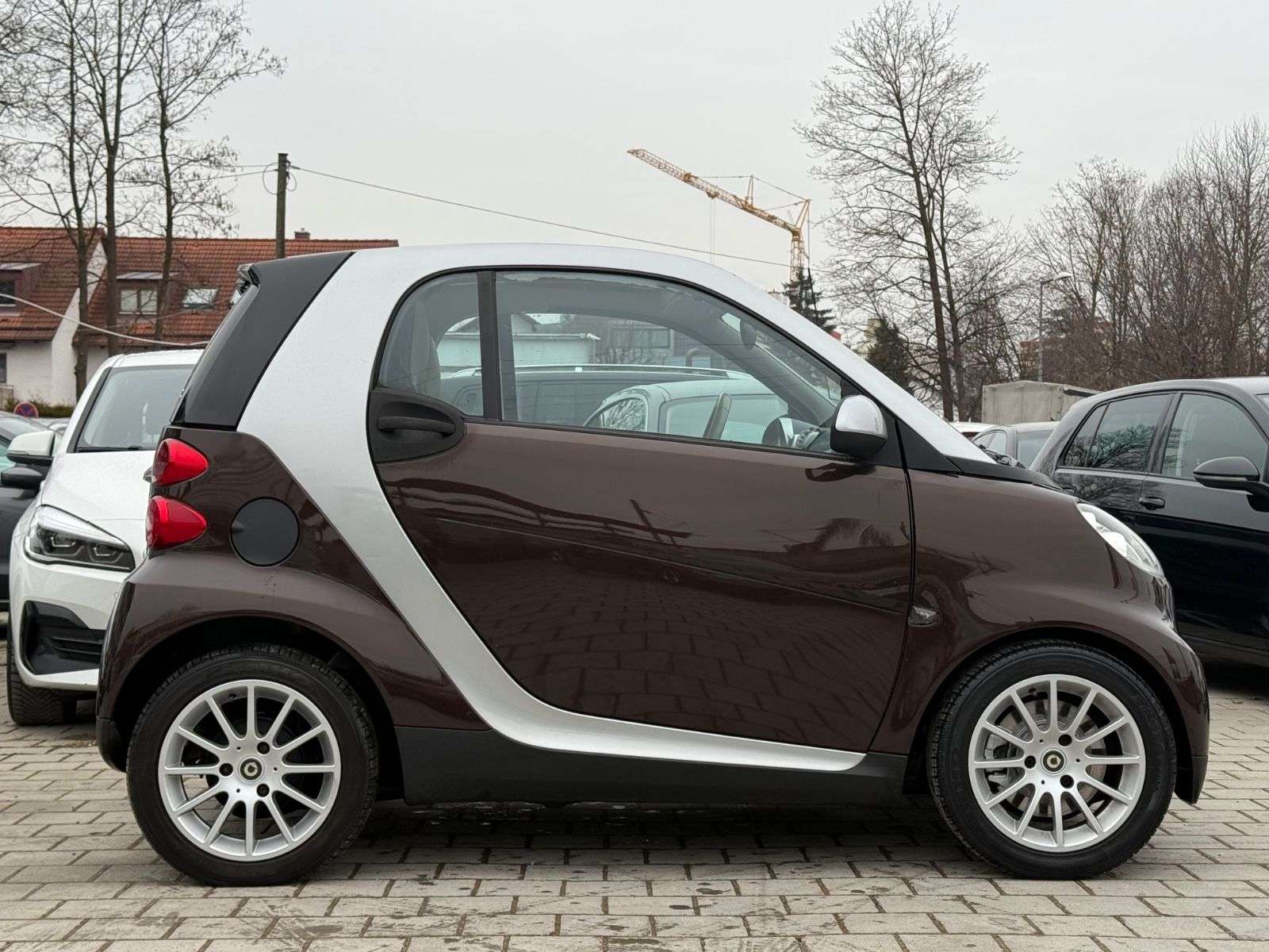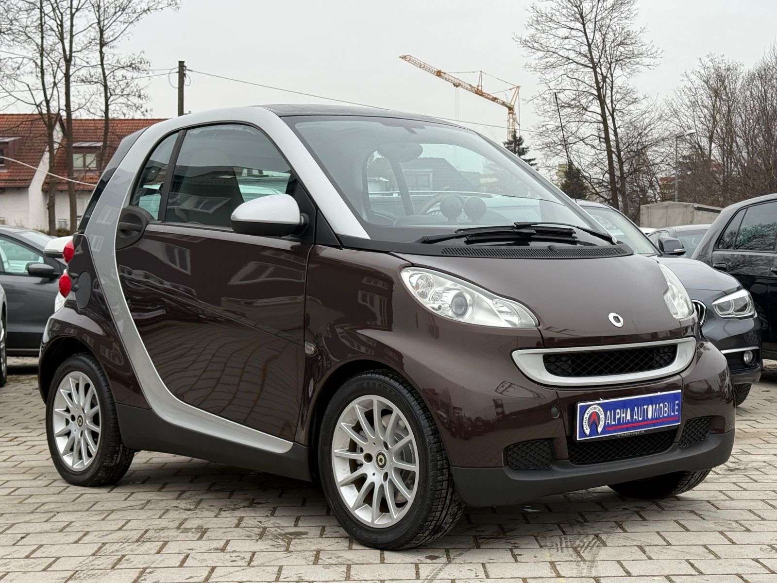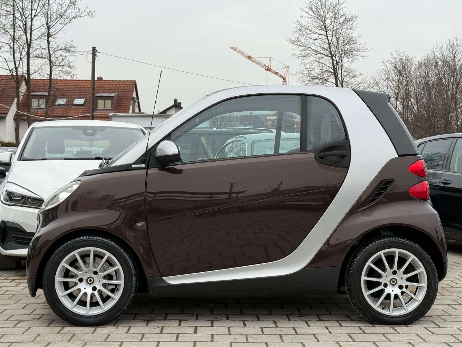 sstattung:Handschuhfach abschließbar,Sitzheizung,und-System SmartWeitere Ausstattung:Airbag Fahrer-/Beifahrerseite,Audiosystem smart radio nine (Radio/CD-Player),Außenspiegel silber,Außentemperaturanzeige,Blinkleuchten seitlich Weiß,Bodypanel Chocolate Brown Metallic,Design- und Ausstattungslinie passion,Gepäckraumabdeckung / Rollo,Heckscheibenwischer,Instrumententafel Leder-Optik,Karosserie: 2-türig,Klimaautomatik,Kühlermaske Silber,LM-Felgen,Motor 1,0 Ltr. - 52 kW KAT,Panorama-Glasdach,Start/Stop-Anlage,Tridion-Sicherheitszelle Silber (Farbcode EB2U),Zusatzinstrumente für Cockpituhr und Drehzahlmesser