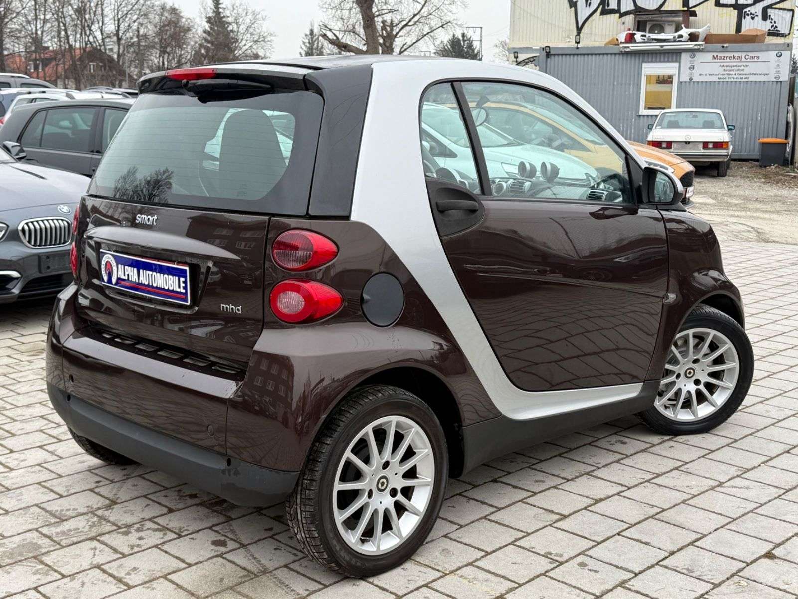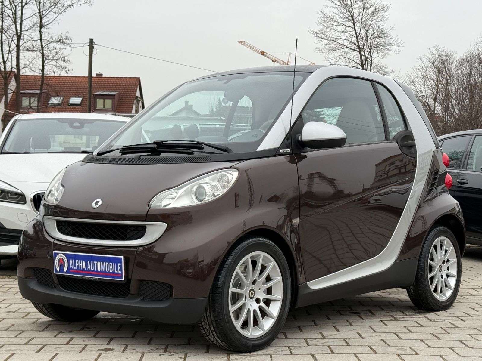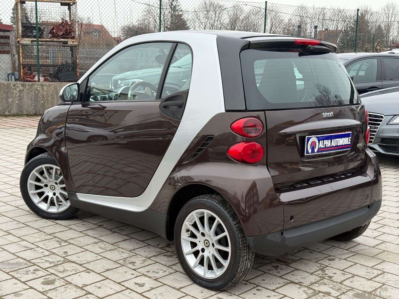 sstattung:Handschuhfach abschließbar,Sitzheizung,und-System SmartWeitere Ausstattung:Airbag Fahrer-/Beifahrerseite,Audiosystem smart radio nine (Radio/CD-Player),Außenspiegel silber,Außentemperaturanzeige,Blinkleuchten seitlich Weiß,Bodypanel Chocolate Brown Metallic,Design- und Ausstattungslinie passion,Gepäckraumabdeckung / Rollo,Heckscheibenwischer,Instrumententafel Leder-Optik,Karosserie: 2-türig,Klimaautomatik,Kühlermaske Silber,LM-Felgen,Motor 1,0 Ltr. - 52 kW KAT,Panorama-Glasdach,Start/Stop-Anlage,Tridion-Sicherheitszelle Silber (Farbcode EB2U),Zusatzinstrumente für Cockpituhr und Drehzahlmesser