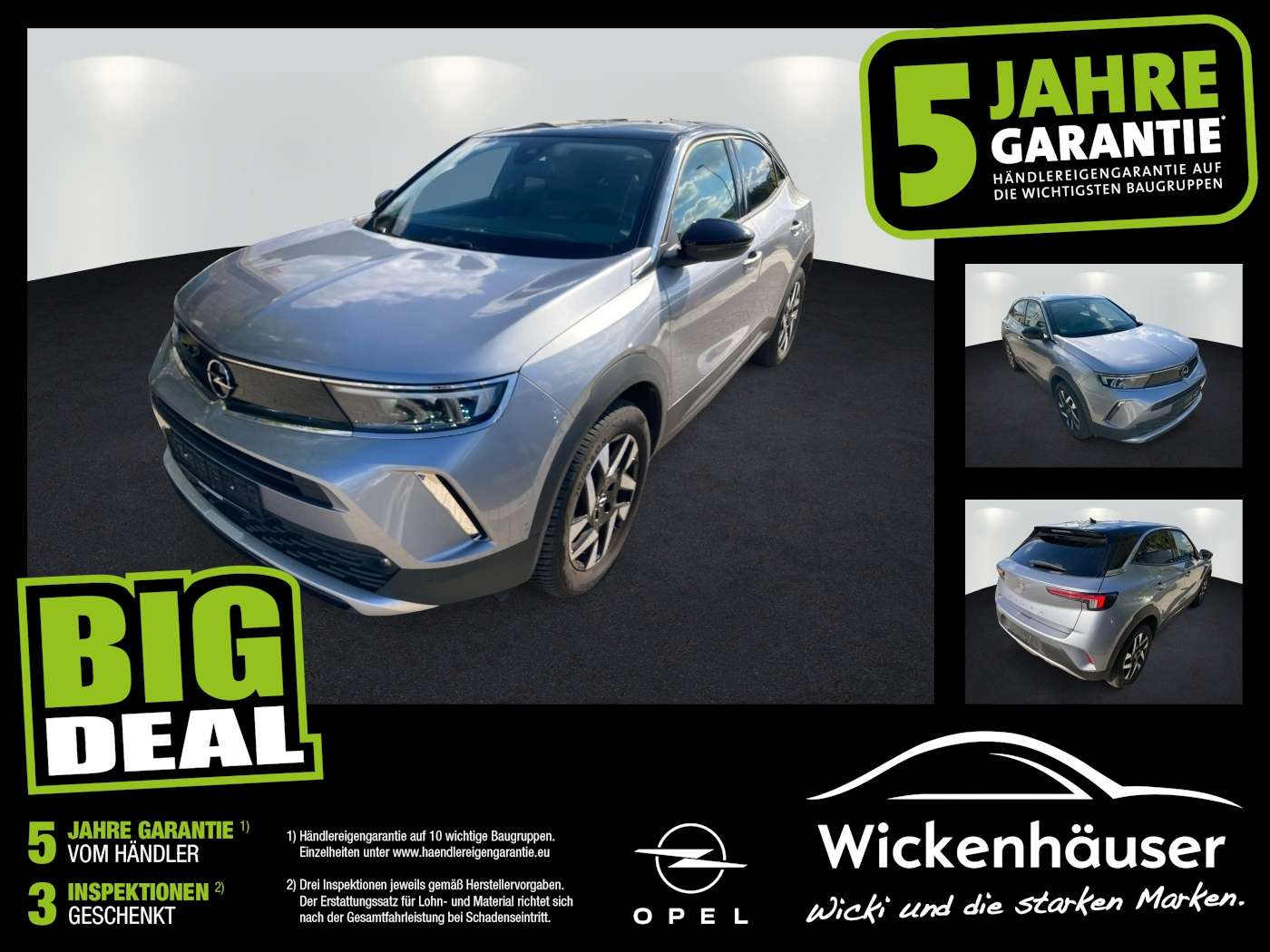 TS & PAKETESicht-PaketTechnologie-Paket Park & GoASSISTENZSYSTEMEMüdigkeitserkennungs-SensorRückfahrkamera mit 180° UmgebungsansichtTotwinkel-AssistentElektron. Stabilitäts-Programm Plus (ESP)Parkpilotsystem vorn und hintenVerkehrszeichenerkennungMOTOR GETRIEBE & FAHRWERKStart/Stop-AnlageAnti-Blockier-System (ABS)Getriebe 6-GangOtto-Partikelfilter (OPF)Antriebsart: FrontantriebAUDIO & KOMMUNIKATIONMP3-Schnittstelle für Mobiltelefon/Handy6 LautsprecherAudiosystem MultimediaBluetooth Audio-StreamingDAB-Tuner (Radioempfang digital)Freisprecheinrichtung BluetoothSmartphone Schnittstelle (Apple CarPlay & Android Auto)INTERIEURKlimaautomatikDachhimmel GrauGepäck-/Laderaumboden doppeltInnenspiegel mit AbblendautomatikSeitenairbag vornSitzheizung vornLICHT & SICHTFernlichtassistentScheinwerfer LEDEinschaltautomatik für Fahrlicht mit TunnelerkennungNebelscheinwerfer LEDScheibenwischer mit RegensensorTagfahrlicht LEDHeckleuchten LEDTECHNIK & SICHERHEITKopf-Airbag-SystemFeststellbremse elektrischSchliess-/Startsystem Keyless OpenEXTERIEURDachspoilerMetallic-/Mineraleffekt-LackierungWärmeschutzverglasungWärmeschutzverglasung hinten abgedunkelt (Solar-Protect)SONSTIGE AUSSTATTUNGENFahrzeugschlüssel (2) beide klappbarKarosserie: 5-türigRadstand 2557 mmReifen-ReparaturkitSchadstoffarm nach Abgasnorm Euro 6dWeitere MerkmaleAussenspiegel elektr. verstell- und heizbar - elektr. anklappbarLM-Felgen 6.5x17 (5-Doppelspeichen - Bicolor)Kühlergrill - Opel Vizor - Rahmen in Chrom Wir bieten Ihnen attraktive Finanzierungs- oder Leasingkonditionen und eine Gebrauchtwagen-Garantie. Außerdem haben wir die tagesaktuellen Bestpreise in und um München.IrrtümerTippfehler und Zwischenverkauf vorbehalten.