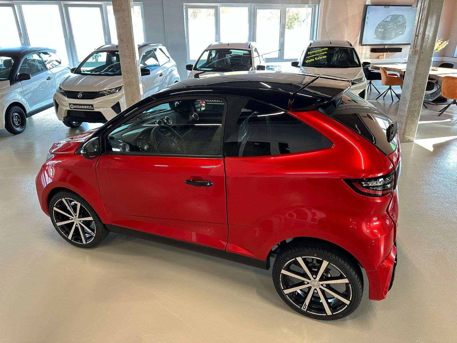 bition Coupé GTI rotmetallic – kraftvoll und sportlich*inklusive Zusatzausstattung auf AnfrageKein TÜV, Keine HU, Keine Steuer, ZulassungsfreiFahren mit dem Mopedführerschein AM ab 15 JahrenNur Mopedkennzeichen notwendig -Vollkasko / Teilkasko / Haftpflicht möglichSerienausstattung ohne Aufpreis (inklusive)*siehe aktuelle PreislisteAIXAM COUPÉ GTI Ambition Modell / SerienausstattungAussenspiegel links und rechts, von innen einstellbarBlinker im Aussenspiegel (zusätzlichDoppelarmscheibenwischerHeckspoiler, schwarz glänzendLED-Tagfahrlicht länglichNebelrückleuchtenRückfahrscheinwerfer rechts und linksScheiben getöntScheiben hinten stark getöntSportfahrwerkAblagefach in Türen & MittelkonsoleArmaturenbrett in moderner Automobil-Spritzgusstechnik,Handschuhfach mit Münz- und GetränkehalterDachhimmel in Stoff (bei Crossline Evo in Kunststoff)Fußmatten schwarz mit Stickereien und blau gesäumtGepäcknetz im Kofferraum, herausnehmbarGepäckraumabdeckung und GepäckstoppHaltegriff Fahrer- und Beifahrerseite (bei Pack nur Beifahrer)Innenbeleuchtung LED mit Zeitverzögerung beim Ausschalten(bei Pack ohne Zeitverzögerung)Kofferraum- und Radlaufverkleidung in StoffLuftausströmer einstell- und regulierbar, mittigLuftausströmer einstell- und regulierbar, rechts und linksMittelkonsole mit Getränke- und BecherhalterungRückspiegel mit AbblendfunktionSicherheitsgurte AutomatikSchalldämmung FahrgastzelleSchalldämmung MotorraumSitze in Sportausführung mit integrierten Kopfstützen inKunstleder schwarz und mit blauer Steppnaht - Sitz Fahrer in Längsrichtung und Rückenlehne einstellbar - Sitz Beifahrer Rückenlehne einstellbarSitzgestell Verkleidung seitlichSonnenblende mit Schminkspiegel Fahrer und BeifahrerSteckdose 12 VTrennwand Fahrgastzelle / Kofferraumxam Konzert 6 Lautsprecher (2x650W maxi)AIXAM CONNECT BASIS Tablet Radio mit 6,2’’ TouchscreenBluetooth/AUX/USB/RückfahrkameraDritte Bremsleuchte mit LEDEinparkhilfe akustisch -Fensterheber elektrischFensterheber mit Einklemmschutz und Impulsschaltung auf FahrerseiteHeckklappenöffnung und Türverriegelung elektrisch vom Fahrersitz bedienbarHeckscheibenheizung mit automatischer ZeitbegrenzungHeckscheibenwischerHeizung-Lüftung-Enteisung dreistufigLenkradschlossScheibenwischer vorne dreistufig inklusive IntervallschaltungScheibenwaschanlage mit automatischer WischfunktionSignalwarnton „Licht an“Warnblinkanlage mit automatischer Aktivierung bei VollbremsungWegfahrsperre bei eingelegtem GangZentralverriegelung mit Funk-Einschlüsselsystem auch fürHeckklappe, Schlüssel einklapbar, Ersatzschlüssel ohne FunkKombiinstrument mit Tachoanzeige und Tankanzeige analog mit Hintergrundbeleuchtung (nicht dimmbar bei Pack) sowie Kontrollleuchten für Handbremse, Batterie, Service, Beleuchtungen, Öl, Tankreserve, Vorglühen, Neutralstellung, Motortemperatur, ...Digitaler TFT-Aktivbildschirm 3,5” mittig im Kombiinstrument mit Anzeige von Uhrzeit, Außentemperatur, Gangwahl, Gesamtkilometerstand. Verschiedene Ebenen mit Geschwindigkeitsanzeige digital, Trip A und B (Tageskilometerzähler, Durchschnittsgeschwindigkeit, Fahrzeit), Einstellungsmenü, sowie Anzeige von Informationen wie geöffneten Türen, Service, Batteriestatus, Handbremse, TankreserveReifenfüllflascheAlufelgen, Reifen 165/45R16, 8 Speichen GT Diamant-Style*Fahrzeug kann Zusatzausstattung mit Aufpreis enthalten*Zusatzausstattung mit Aufpreis siehe aktuelle PreislisteABS (bei City Pack nicht zubuchbar)7 Zoll Multimedia inklusive Rückfahrkamera DAB+, USB, Bluetooth Apple CarPlay, Android9 Zoll Multimedia inklusive Rückfahrkamera DAB+, USB, Bluetooth Apple CarPlay, AndroidSubwoofer Soundanlageseitliche Aufkleberseitliche Schweller CarbonKlimaanlageAlarmfunktionStandheizungReserveradPannensetTrennwand Kofferraum (nur bei City Pack und City Sport Aufpreis)Fußmatten (nur bei City Pack und City Sport Aufpreis)Sonderfarbe (bei City Pack und City Sport Aufpreis, Metallic)Sonderfarbe graphitmatt (bei City GTO und Coupé GTI)Winterreifen auf Alufelgen 155/65 R14 oder 155/65 R