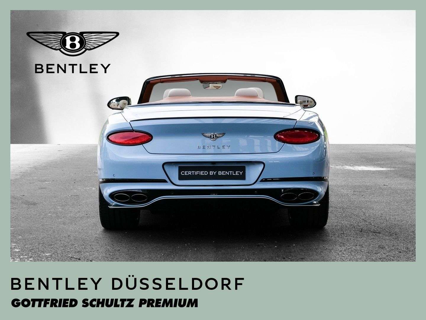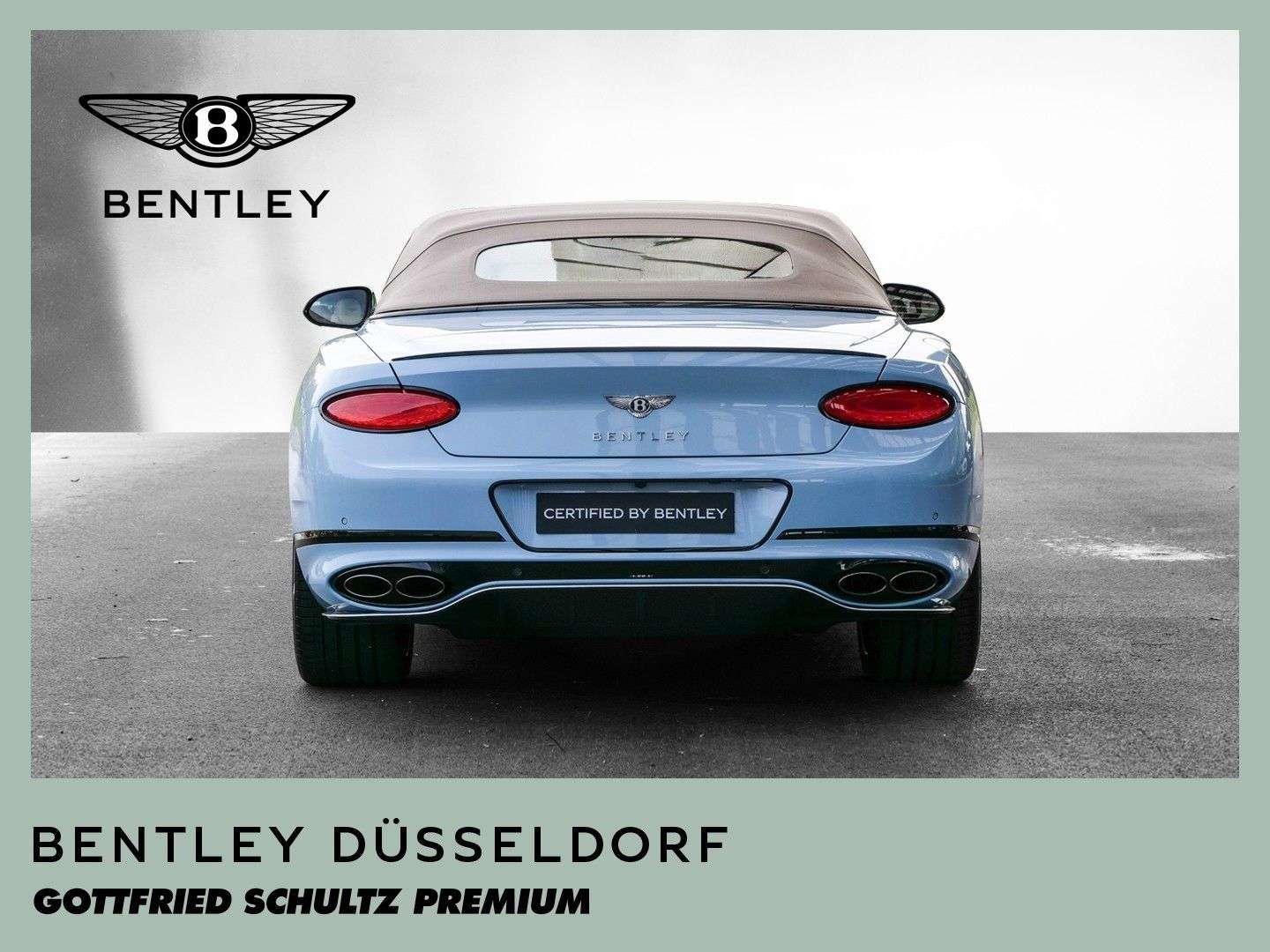 des Fahrzeuges: DüsseldorfBentley Continental GTC S V8 Fahrzeug aus VorbesitzFarbkombination:Außenfarbe: Jetstream II (babyblau)Hauptleder: Linen (beige)Zweitleder: Newmarket Tan (braun)Furnier: Carbon FibreSonderausstattung:Extended Range Lackierung in Jetstream II22“ Leichtmetallsportfelge im 10-Speichen-Design, schwarz lackiertSelbstnivellierende Bentley Embleme auf den FelgenAußendachfarbe in TweedCarbonaußenteile mit Jetstream II Akzenten versehenTouring Specificationyling SpecificationColour SpecificationKomfortausstattung für die VordersitzeSitzflächen und Türeinlagen in Leder mit DiamantsteppungFurnier in High Gloss CarbonSitzgurte in KontrastfarbeKreuzstichnähte – by Mullinerzusätzliche “Diamant-Riffelung” der LüftungseinlässeAmbientebeleuchtung inkl. beleuchtete Einstiegsleistehochflorige Fußmatten mit Ledereinfassung vorneFußmatteneinfassung in Kontrastleder3-Speichen Lederlenkrad, 2-farbig, beheizbar, mit geprägtem LederSportpedalerieLED Bodenbeleuchtung mit Bentley-Emblem vor Türen„NAIM for Bentley“ Highend AudiosystemMulliner Tankverschluss und ÖleinfülldeckelRotierendes Display, 3-FachGaragentoröffner, 3-fachBatterieladezustanderhaltungsgeräteinschlagschutzfolie (Front)Carbon Spiegelkappen...Änderungen, Zwischenverkauf und Irrtümer vorbehalten.