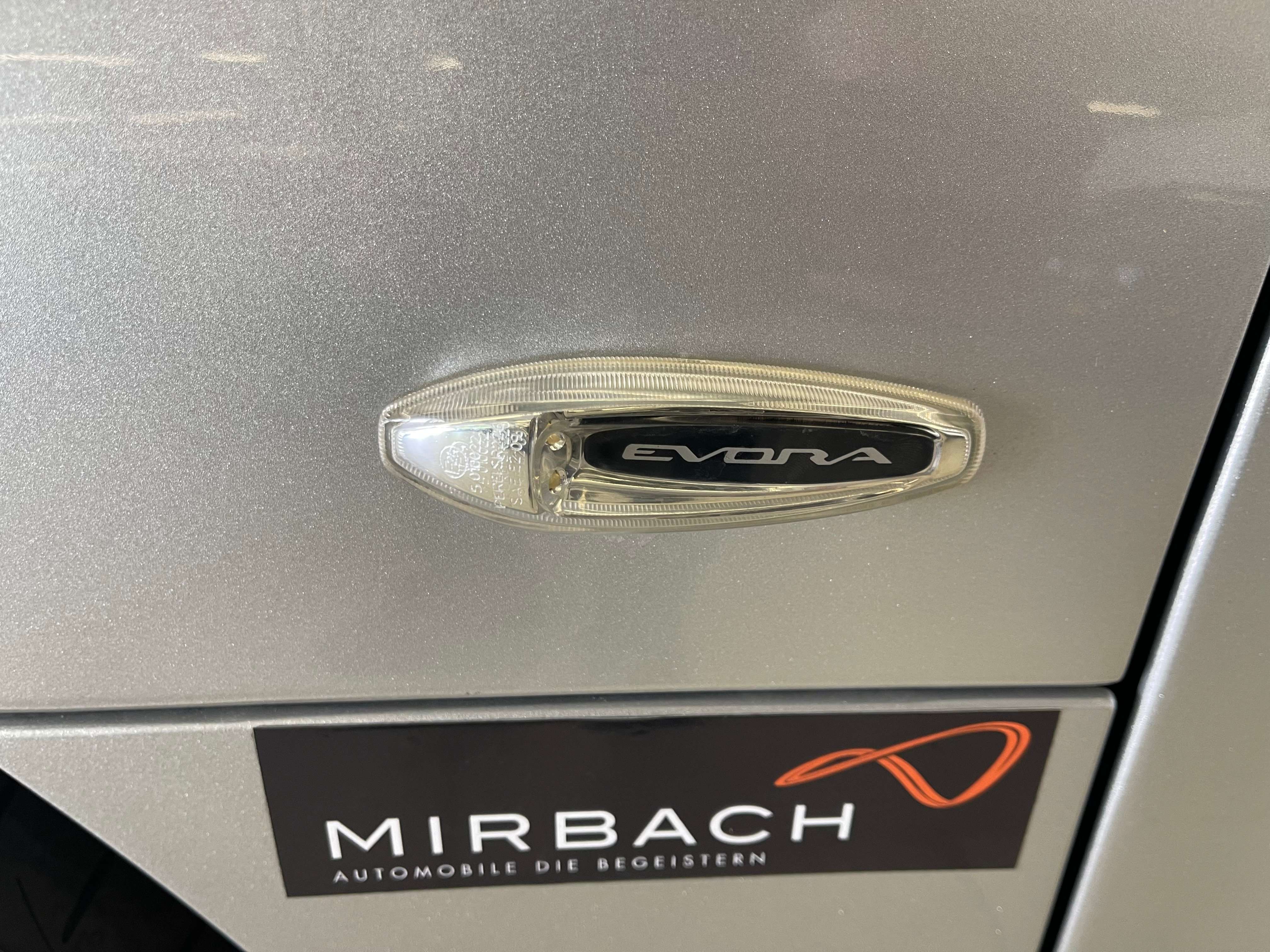 s Evora (Typ 122) ist ein viersitziger Mittelmotor-Sportwagen des britischen Automobilherstellers Lotus Cars mit einem Motor des japanischen Herstellers Toyota.AusstattungABS, Alarmanlage, Armlehne, Bi-Xenon Scheinwerfer, Bordcomputer, CD-Spieler, ESP, Elektrische Fensterheber, Elektrische Seitenspiegel, Elektrische Wegfahrsperre, Freisprecheinrichtung, Heckantrieb, Klimaanlage, Tagfahrlicht, Lederlenkrad, Leichtmetallfelgen, Arctic Silber Metallic, Mulitfunktionslenkrad, Navigationssystem, Nichtraucherfahrzeug, Notrad, Radio (Tuner/Radio), Reifendruckkontrolle, Scheckheft gepflegt, Scheinwerferreinigung, Servolenkung, Sommerreifen, Sportsitze, Traktionskontrolle, Zentralverriegelung.Der Wagen befindet sich in einem super Zustand, keine Beschädigungen, leichte Gebrauchsspuren innen und außen. 100% nachvollziehbare Historie, Scheckheft gepflegt bei einem offiziellen Lotus Service Partner in Deutschland. Serviceheft liegt im Original vor.e Evora mit dem besten Preis / Leistungsverhältnis am Markt, der Wagen für den Evora Einsteiger.---Probefahrt und Sichtprüfung des Fahrzeuges auf der Hebebühne sind selbstverständlich nach kurzer Absprache möglich.Als versierter Fachbetrieb verfügen wir über eine eigene Werkstatt. Unser erfahrenes und speziell geschultes Mechaniker-Team steht bereit für Service, Reparaturen und individuelle Änderungswünsche am Fahrzeug.Alle unsere Verkaufsfahrzeuge finden Sie gesammelt auf unserer homepage unter www.mirbach.deWir freuen uns auf Sie!