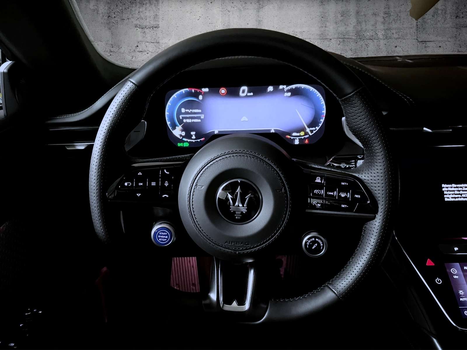 ts: 1. HandScheckheftgepflegtTechnik + Sicherheit: LuftfederungESPABSASRAutomatische FeststellbremseKopfairbagsFahrerairbagSeiten-AirbagsBeifahrer-AirbagMultimedia: NavigationssystemFreisprecheinrichtungSoundsystemMp3Multimediabuchse: USBAssistenzsysteme: BerganfahrassistentRückfahrkameraSpurwechselassistentSpurhalteassistent (lane assist)Verkehrszeichen-ErkennungLichtsensor: FernlichtassistentTempomat (GRA): autom. DistanzregelungTotwinkelassistent (side assist)EinparkhilfeEinparkhilfe hintenEinparkhilfe vornRegensensorLichtsensorGeschwindigkeitsregelanlage (GRA) TempomatInnen: Klimaautomatik: MehrzonenklimaautomatikKlimaautomatikLederausstattungMultifunktionslenkradStaub- und PollenfilterSchaltwippenSitze + Polster: SitzheizungSitzheizung vorneMittelarmlehneMittelarmlehne hintenMittelarmlehne vorneMemorysitz(e)elektr. Sitz(e)belüftete Sitz(e)Aussen: ZV mit FunkfernbedienungStoßfänger WagenfarbeScheinwerfer + Leuchten: LED-Rückleuchtenadaptives KurvenlichtLED-ScheinwerferLED-Scheinwerfer: LED-Matrix ScheinwerferRäder + Reifen: Reifendruck-KontrollePakete: HerstellerpaketHerstellerpaket: KomfortHerstellerpaket: SportSonstiges: Interieur:Applikationen aus 3D CarbonGestickte Dreizack Logos auf den Kopfstützen Premium LedervollausstattungExterieur:Metallic-Lackierungschwarze Fenstereinfassungen 20/21 Zoll Leichtmetallräder im Astreo-Design, matt dunkel mit DiamantschliffPrivacy Verglasung hintenrot lackierte Aluminium BremssättelLED-Matrix-ScheinwerferMultimedia:Sonus Faber gh-Premium-Soundsystem mit 19 LautsprechernNavigationssystemApple CarPlay & Android Auto*Fahrassistenzpaket 1:Adaptive Geschwindigkeitsregelanlage mit Stop&GoAktiver Spurhalteassistent mit TotwinkelassistentTotwinkelassistentMüdigkeitserkennung360°-Surroundview-Kamera mit 2D Darstellung und virtuellen ndernissen sowie seitliche AbstandswarnungFahrassistenzpaket 2:Intelligenter GeschwindigkeitsassistentAktiver FahrassistentVerkehrszeichenerkennungKreuzungs-Kollisions-AssistentKomfortpaket:Elektrische Kofferraumdeckelbetätigung mit Kick-SensorInduktionsladeschale (Wireless Charger)Garagentoröffner HomelinkDigitales Komfortpaket:Rahmenloser digitaler RückspiegelHead Up DisplayAdaptive Voll-LED-Matrixscheinwerfer mit dunklem Finish:Sportdesignpaket:Leichte Sportpedale aus Edelstahl und Aluminium mit Fußstütze aus AluminiumBeleuchtete Einstiegsleisten aus Edelstahl mit Maserati LogoPrivacy-VerglasungSonstiges:aktives elektr. DämpfungssystemLuftfederungKeyless Entry18-fach elektr. einstellbare Vordersitze inkl. Memoryfunktion für den FahrersitzIrrtümer vorbehalten Änderungen, Zwischenverkauf und Irrtümer vorbehalten!