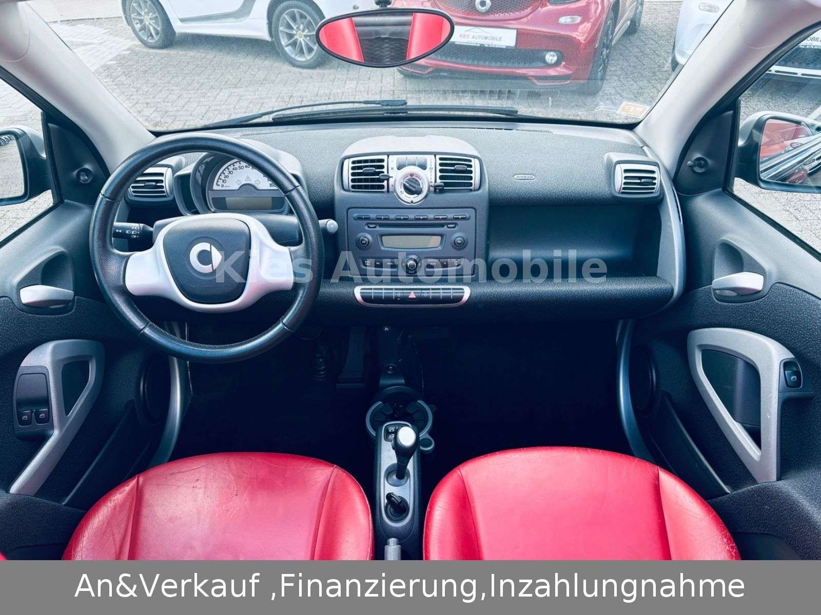 RUNG AB 4,99% DURCH UNESERE PARTNER BANKSmart Fortwo 451 Cabrio PassionVollautomatikHighlihts: -nur 118tkm gelaufen!!!-Inspektion frisch-TÜV NEU-Klimaanlage-El. Fensterheber-Alufelgen mit AllwetterreifenAusstattung:Elektr.FensterheberUmklappbarerBeifahrersitzZentralverriegelungBerganfahrassistentBordcomputerSoundsystemLeichtmetall USB/Aux INKlimatisierung:KlimaautomatikSicherheit:ABSElektr. WegfahrsperreESPTraktionskontrolleAirbags:Front- und Seiten-AirbagsPannenhilfe:PannenkitInnenausstattung:LederFarbe der Innenausstattung:ROTTÜV NEU!!!Sonderausstattung:Audio-Paket (radio inkl. Sound-Paket und MP3-Schnittstelle), Innenausstattung: Grundfarbe schwarz / schwarz, Kopf-Airbag-System / Seitenairbag, Raucher-Paket, Reifen-Reparaturkit (Kompressor)Weitere Ausstattung:Airbag Fahrer-/Beifahrerseite, Außentemperaturanzeige, Blinkleuchten seitlich Weiß, Bodypanel Tiefschwarz / Deep Black (Farbcode ECAO), Design- und Ausstattungslinie passion, Karosserie: 2-türig, Motor 1,0 Ltr. - 52 kW KAT, Sitzbezug / Polsterung: Stoff, Tritop (vollautomatisch / elektrisch), Tritop VerdeckUnser Service:NANZIERUNG AB 4,99% DURCH UNESERE PARTNER BANKZulassungsserviceWerkstattserviceExport ServiceWir fahren, bei Absprache , das gekaufte Fahrzeug bis zur HaustürTÜV ServiceWir nehmen gerne ihr altes Fahrzeug in ZahlungEine Gebrauchtwagen Garantie kann bis zu 3 Jahren abgeschlossen werden. Der Verkäufer haftet nicht für Irrtümer, Eingabefehler und Datenübermittlungsfehler, im Internet gemachte Angaben sind ohne Gewähr. Keine Haftung für nicht erkennbare Schäden.Irrtümer, Änderungen und Zwischenverkauf vorbehalten.