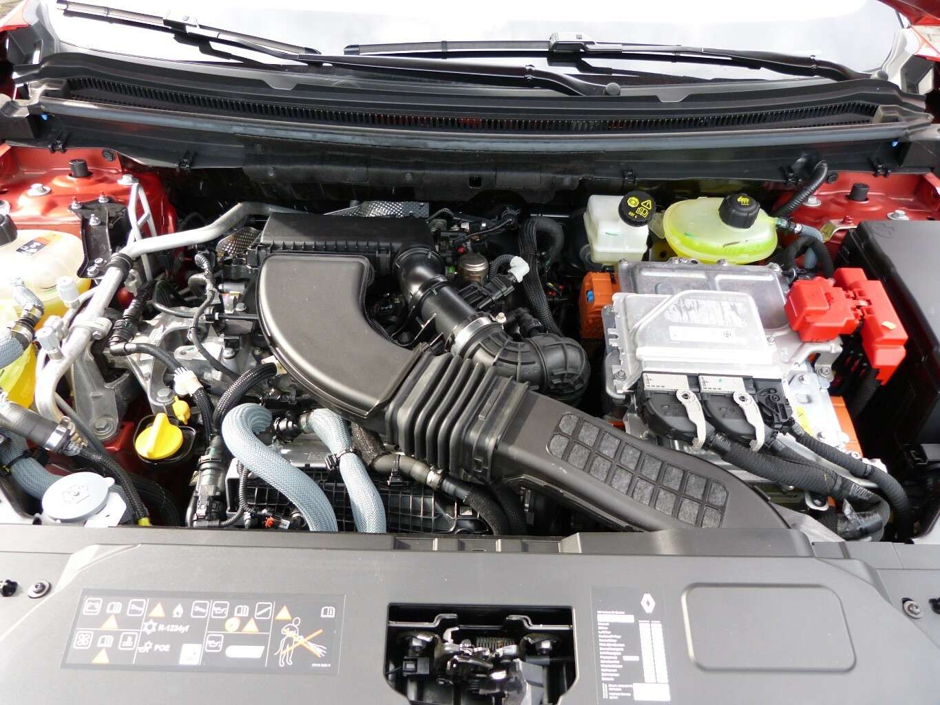 Geschwindigkeitsregelanlage (ACC), Airbag Beifahrerseite, Airbag Beifahrerseite abschaltbar, Airbag Fahrerseite, Ambiente-Beleuchtung, Anti-Blockier-System (ABS), Antriebsart: Frontantrieb, Armaturenbrett schwarz, Außenspiegel elektr. verstell-, heiz- und anklappbar, mit Memory, Außenspiegel schwarz lackiert, Blinkleuchten mit Lauflicht vorn und hinten, Dachantenne im Haifischflossen-Design, Dachreling silber, Eco Mode (Fahrmodusschalter), Einparkhilfe vorn, hinten und seitlich mit Rückfahrkamera, Einstiegsleisten, Elektr. Bremskraftverteilung, Elektron. Stabilitäts-Programm (ESP), Fahrassistenz-System: Abstandswarner, Fahrassistenz-System: Aktiver Notbrems-Assistent mit Fußgängererkennung, Fahrassistenz-System: Ausstiegswarnung, Fahrassistenz-System: Berganfahr-Assistent (HSA), Fahrassistenz-System: Fernlichtassistent, Fahrassistenz-System: Multi-Sense (Fahrmodusschalter), Fahrassistenz-System: Müdigkeitserkennungs-Sensor, Fahrassistenz-System: Querverkehrs-Assistent, Fahrassistenz-System: Sicherheitssystem mit automatischem Notruf (ERA GLONASS / eCall), Fahrassistenz-System: Spurhalteassistent Aktiv, Fahrassistenz-System: Totwinkel-Assistent mit aktivem Lenkeingriff, Fahrassistenz-System: Verkehrszeichenerkennung, Fahrassistenz-System: Warnsystem Totwinkel (Blind Spot Warning, BSW), Fensterheber elektrisch vorn + hinten, Geräuschsimulator (Außensound), Geschwindigkeits-Regelanlage (Tempomat), Getriebe Automatik - Multi-Mode (15-Stufen), Heckleuchten LED mit Moiré-Effekt, Heckscheibe heizbar, Hybrid 147 kW E-Tech (Motor 1,2 Ltr. - 96 kW), Infotainment-System: OpenR link (12' Touchscreen, Arkamys Auditorium Sound, Navigationssystem mit Google Maps), Innenspiegel mit Abblendautomatik, Ionisator zur Luftreinigung, Isofix-Aufnahmen für Kindersitz, Kamerasystem Around View 360°, Karosserie: 5-türig, Keyless Go, Kinderspiegel (zusätzlicher Innenspiegel für den Fond), Klimaautomatik 2-Zonen mit autom. Umluft-Control, Koffer-/Laderaumboden doppelt, Kofferraumdeckel / Heckklappe elektrisch betätigt (öffnen + schliessen, sensorgesteuert), Kombiinstrument digital (12,3 Zoll), Kopf-Airbag-System hinten, Kopf-Airbag-System vorn, Kopfstützen hinten, LM-Felgen, Lendenwirbelstütze Sitz vorn links, Lenkrad (Leder), Lenkrad heizbar, Lenkrad mit Schaltwippen/-tasten, Lenksäule (Lenkrad) höhenverstellbar, Lenksäule (Lenkrad) längsverstellbar, Licht- und Regensensor, Mittelkonsole mit Armlehne und Staufach, Parkbremse elektrisch mit Auto-Hold-Funktion, Radioempfang digital (DAB+), Reifen-Reparaturkit, Reifendruck-Kontrollsystem (Aktiv), Rücksitzbank geteilt/klappbar (1/3-2/3), Rücksitzbank verschiebbar, Schadstoffarm nach Abgasnorm Euro 6e, Schaltpunktanzeige, Scheinwerfer Full-LED, mit adaptivem Kurvenlicht, Schlechtwetter-Licht, LED-Signatur (Pure Vision), Seitenairbag vorn, Seitenairbag vorn mitte (Center-Airbag), Sitz vorn links elektr. verstellbar (6-fach), Sitz vorn rechts verstellbar (6-fach), Sitzbezug / Polsterung: Stoff/Kunstleder, Schwarz mit farbigen Akzenten, Sitzheizung vorn, Smartphone kabellose Schnittstelle (Apple CarPlay & Android Auto), Sonderlackierung Metallic Dezir Rot, Sonnenblenden mit Spiegel (beleuchtet), Tagfahrlicht LED, USB-Anschlüsse (Typ C) Mittelkonsole hinten, USB-Anschlüsse (Typ C) Mittelkonsole vorn, Verglasung hinten abgedunkelt (Privacy Glass), Warnanlage für Sicherheitsgurte, Zentralverriegelung mit FernbedienungAllradlenkung, Frontscheibe heizbarAirbag Beifahrerseite abschaltbar, Ambiente-Beleuchtung, Antriebsart: Frontantrieb, Außenspiegel schwarz lackiert, Dachreling silber, Eco Mode (Fahrmodusschalter), Elektr. Bremskraftverteilung, Fahrassistenz-System: Abstandswarner, Fahrassistenz-System: Berganfahr-Assistent (HSA), Fahrassistenz-System: Fernlichtassistent, Fahrassistenz-System: Multi-Sense (Fahrmodusschalter), Fahrassistenz-System: Verkehrszeichenerkennung, Fahrassistenz-System: Warnsystem Totwinkel (Blind Spot Warning, BSW), Heckscheibe heizbar, Ionisator zur Luftreinigung, Kinderspiegel (z