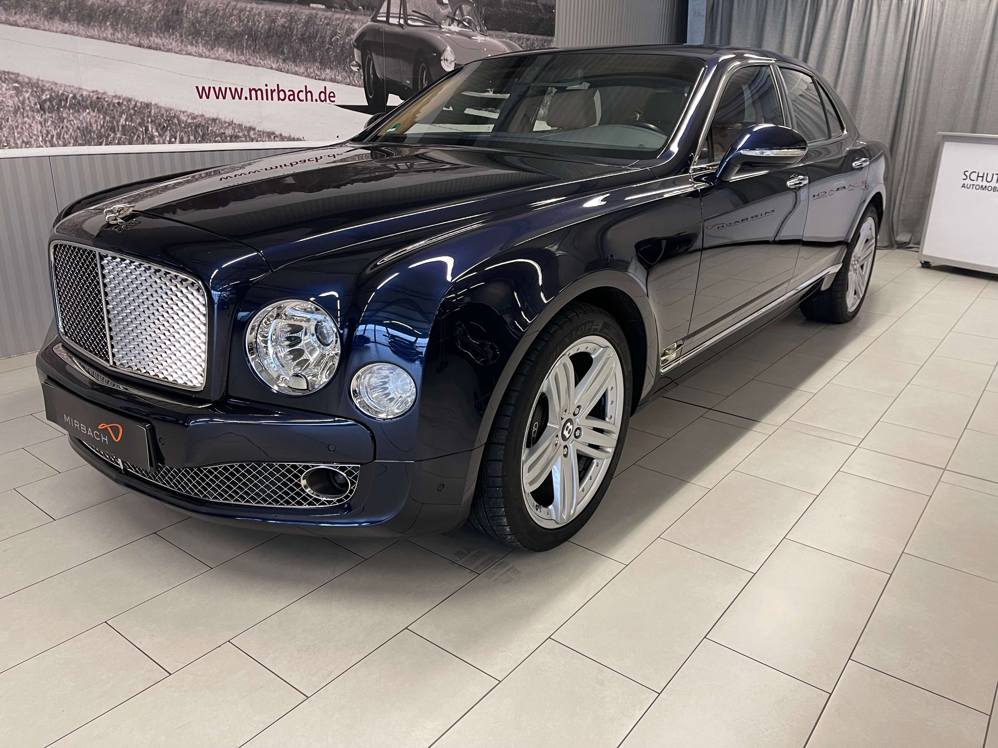 ley Mulsanne wurde im Jahr 2009 auf dem Pebble Beach Concours d’Elegance in den USA vorgestellt und ist der Nachfolger des damals schon in die Jahre gekommenen Bentley Arnage. r Name des Modells orientiert sich an einem Streckenabschnitt der legendären "24 Stunden von Le Mans", der durch die Ortschaft Mulsanne führt. Bei diesem Rennklassiker hatte Bentley mehrere Triumphe gefeiert. r Bentley Mulsanne ist das Flaggschiff des britisch-deutschen Automobilherstellers. Mit einem Grundpreis von 297.191 Euro tritt die 5,58 Meter lange Luxus-Limousine gegen die automobile Upper-Class und damit gegen Ikonen wie den Rolls-Royce Phantom an.r angebotene Bentley Mulsanne mit dem Flying B ist aus Sammlerhand in einem Top Zustand.Einer der Vorbesitzer hatte den Wagen vor ein paar Jahren bei Bentley Monaco erworben und nach utschland importiert, ein reines Sommerfahrzeug.Kürzlich erhielt der Wagen einen neuen Service, neue Reifen, sämtliche Flüssigkeiten getauscht, eine Hohlraumversiegelung, etc.Die Rechnung in Höhe von 5.900,00€ liegt vor.Laut Bentley System wurden die Service Arbeiten in der Historie überwiegend bei Bentley Cannes und Monaco durchgeführt. Ein elektronischer Nachweis dieser Arbeiten liegt vor, leider ist in Monaco das haptische Serviceheft verloren gegangen.Die Frontstoßstange wurden wegen Steinschläge nachlackiert.r Bentley Mulsanne hat aktuell eine deutsche Zulassung, HU/AU werden bei Auslieferung neu gemacht.---Probefahrt und Sichtprüfung des Fahrzeuges auf der Hebebühne sind selbstverständlich nach kurzer Absprache möglich.Als versierter Fachbetrieb verfügen wir über eine eigene Werkstatt. Unser erfahrenes und speziell geschultes Mechaniker-Team steht bereit für Service, Reparaturen und individuelle Änderungswünsche am Fahrzeug.Alle unsere Verkaufsfahrzeuge finden Sie gesammelt auf unserer homepage unter www.mirbach.deWir freuen uns auf Sie!