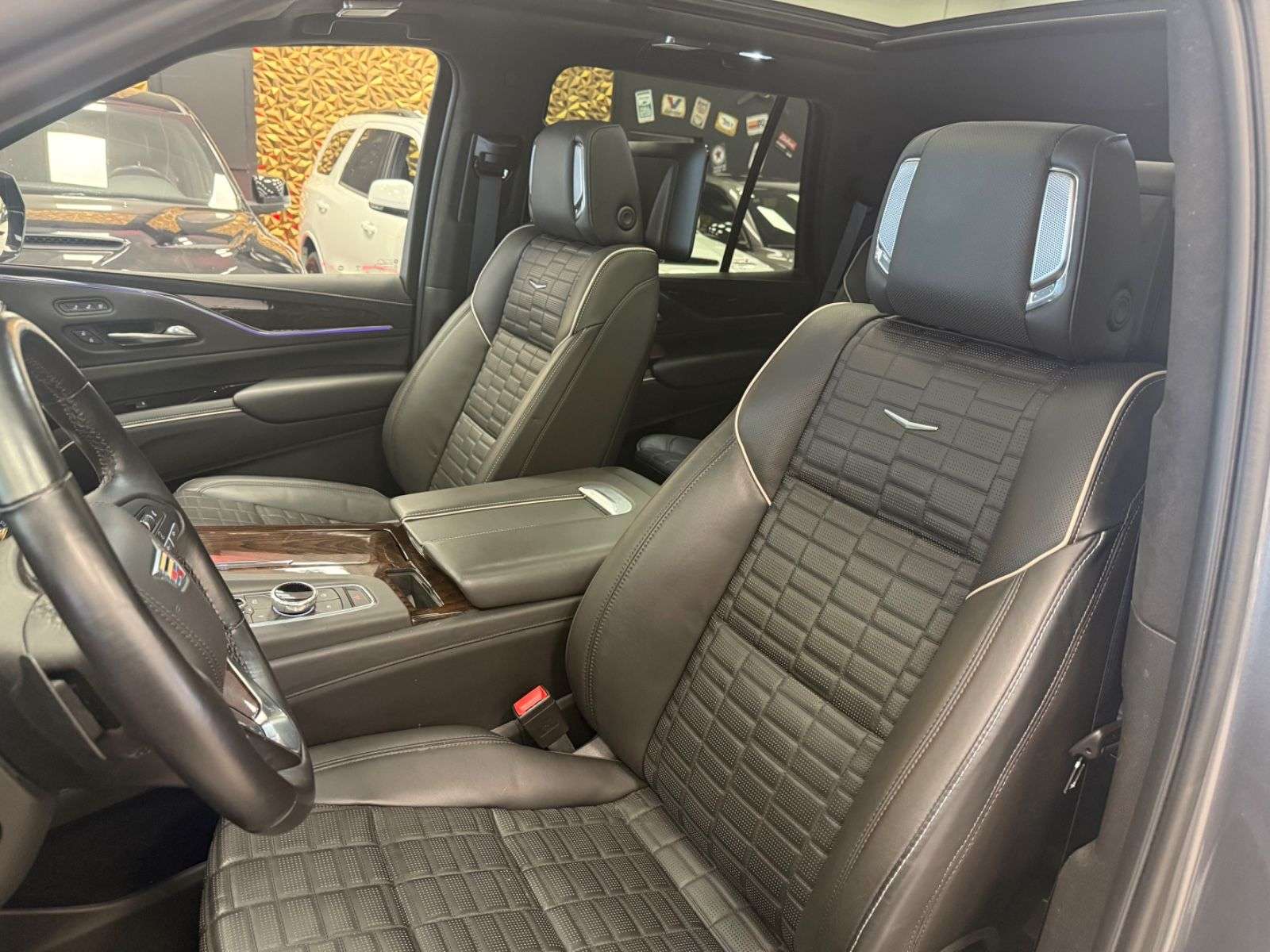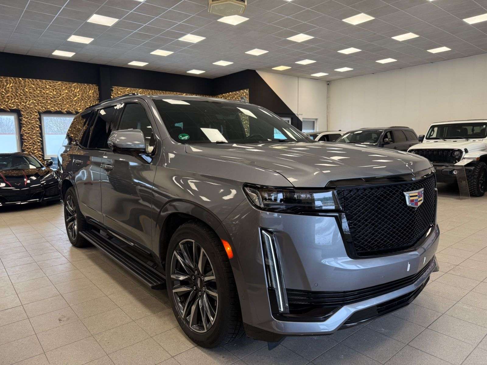 epflegte Cadillac Escalade aus dem Jahr 2021 mit nur einem Vorbesitzer vereint Luxus und Leistung in einem beeindruckenden SUV-Paket. Der kraftvolle 6,2-Liter V8-Motor mit 426 PS sorgt für souveräne Fahrleistungen, während der Allradantrieb optimale Traktion unter allen Bedingungen gewährleistet. e graue Metallic-Lackierung harmoniert perfekt mit dem schwarzen Lederinterieur, das durch Ambientbeleuchtung stilvoll in Szene gesetzt wird. e 4-Zonen-Klimaautomatik sorgt für individuellen Komfort auf allen sieben Sitzplätzen. Modernste Technologie wie das digitale Cockpit, Head-up-splay und 360-Grad-Kamera machen jede Fahrt zum Erlebnis.e umfangreiche Sicherheitsausstattung umfasst adaptive Scheinwerfer, Spurhalteassistent, Totwinkelwarner und Kollisionsvermeidungssystem. Für maximalen Komfort bietet der Escalade elektrisch verstellbare Sitze mit Massage- und Belüftungsfunktion, ein Panorama-Glasdach und eine elektrische Heckklappe.6,2-Liter V8-Motor mit 426 PS und AutomatikgetriebeAllradantrieb und adaptive Luftfederung360-Grad-Kamera und Head-up-splaySchwarze Lederausstattung mit Massage- und BelüftungsfunktionPanorama-Glasdach und elektrische HeckklappeApple CarPlay, Android Auto und kabelloses Laden4-Zonen-Klimaautomatik für individuellen KomfortUmfangreiche Fahrassistenzsysteme inklusive adaptivem TempomatLED-Scheinwerfer und TagfahrlichtAusstattung:Abgedunkelte ScheibenAmbiente-BeleuchtungArmlehneBeheizbares LenkradElektr. FensterheberElektr. HeckklappeElektr. SeitenspiegelElektr. Seitenspiegel anklappbarElektr. SitzeinstellungElektr. Sitzeinstellung mit Memory-FunktionInnenspiegel autom. abblendendLederlenkradLordosenstützeMassagesitzePanorama-DachRaucherpaketSchiebedachSchlüssellose Zentralverriegelung (Keyless)SitzheizungSitzheizung hintenSitzbelüftungSkisackStandheizungUmklappbarer BeifahrersitzZentralverriegelungBordcomputerHead-Up splayMultifunktionslenkradSchaltwippenServolenkungVolldigitales KombiinstrumentAndroid AutoBluetoothApple CarPlayCD-SpielerMulti-CD-WechslerFreisprecheinrichtungInduktionsladen für SmartphonesMusikstreaming integriertNavigationssystemSoundsystemSprachsteuerungTouchscreenTVUSBWLAN / Wifi HotspotWinterreifenLeichtmetallfelgenDachrelingLuftfederungScheinwerferreinigungTuner/Radio:Radio DABTuner/RadioGeschwindigkeitsregulierung:AbstandstempomatAnhängerkupplung:Anhängerkupplung abnehmbarKlimatisierung:4-Zonen-KlimaautomatikSicherheit:AlarmanlageABSAbstandswarnerAdaptives FahrwerkAnhängerrangierassistentBlendfreies FernlichtElektr.WegfahrsperreESPFernlichtassistentGeschwindigkeitsbegrenzerIsofixIsofixBeifahrersitzLichtsensorNebelscheinwerf Seiten- und weitere AirbagsTagfahrlicht (Art):LED-TagfahrlichtHauptscheinwerfer:LED-ScheinwerferKurvenlicht (Art):Adaptives KurvenlichtEinparkhilfe:360°-KameraInnenausstattung:VolllederFarbe der Innenausstattung:Schwarz1 Jahr Garantie und GewährleistungTÜV und Service NeuFinanzierung über unsere Hausbank ab 5,49& möglich.Gerne nehmen wir Ihren "Gebrauchten" in Zahlung.Garantie gegen Aufpreis bis zu 36 MOnate möglich.Für weitere Fragen oder einen Besichtigungsterminstehen wir IHnen per Mail oder telefonisch jederzeitzur Verfügung.Ihr E-Cars Hannover TeamTippfehler,Zwischenverkauf und Irrtümer vorbehalten