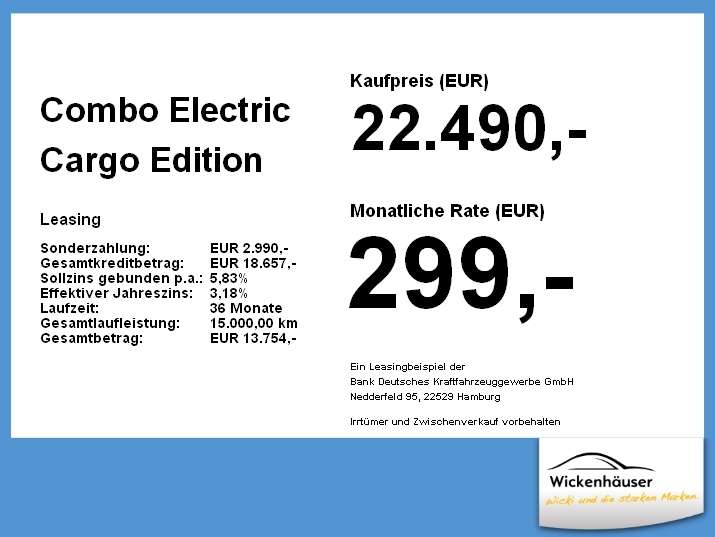 Opel Combo Electric Cargo Edition XL Holzboden OBC11kW