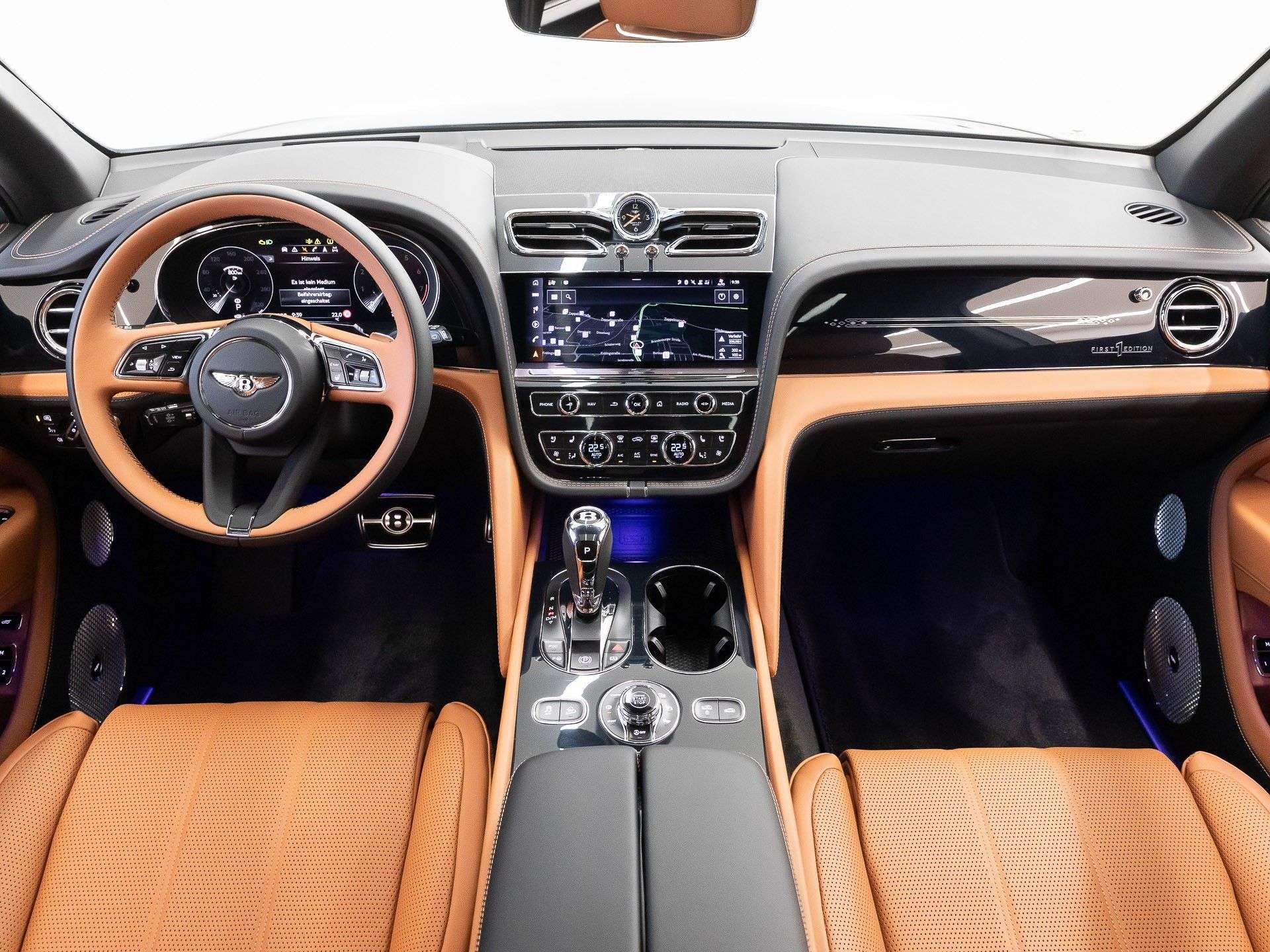 Automatikgetriebe, 8 GängeAssistenzsystemeHead-up-Display HUDFernlichtassistentEinparkhilfeRückfahrkameraAdaptive Cruise ControlACCBerganfahrhilfeSpracheingabesystemSpurwechselassistentSpurhalteassistentBremsassistentNachtsichtassistentKo und SichtLED-ScheinwerferAdaptives KurvenlichtTagfahrlichtRegensensorAutomatisch abblendende Innen- und AußenspiegelAmbientebeleuchtungNebelscheinwerferScheinwerferreinig.Audio & KommunikationNavigationssystemRadioDigitaler Radioempfang DABSoundsystemUniverselle Audio-Schnittstelle AUX USB iPodHandyvorbereitung BluetoothSmartphone-App IntegrationKabelloses Laden für HandysWLAN HotspotKomfortDigitales KombiinstrumentKlimaautomatikPanorama-Schiebedach elekt.Fahrer-/Beifahrersitz und Rücksitze elektrischLordosenstützeSitzheizungArmauflage Fahrer/BeifahrerServolenkungKeylessStart-Stopp SystemZentralverriegelungFensterheber elektrischAutomatisch öffnende HeckklappeSitzklimatisierungMassagesitze vorn u. hintenBeifahrersitz umklappbarInterieurSitze Leder Newmarket Tan/Beluga (Split-EWB)LederlenkradLenkradheizungBordcomputerDurchladesystemLenkrad-SchaltwippenExterieurAntrieb: AllradLuftfederungTouchscreen BedienungLeichtmetallfelgen 22 ZollAußenspiegel elekt. verstell- & anklappbar, beheiztDachrelingReichweitenerhöhungNotrufsystemschwindigkeitsbegrenzerSicherheitFahrer- /BeifahrerairbagKopfairbag vorn und hintenSeitenairbag vorn und hintenFondairbagsKnieairbag FahrerTraktionskontrolleElektr. Stabilitätsprogramm ESPReifendruckkontrolleDiebstahlwarnanlageWegfahrsperreAntiblockiersystem ABSNotbremsassistentWeitere AusstattungWir sind Vertragshändler der Marke Bentley und bieten Ihnen hier einen wunderschönen Bentayga EWB (Extended Wheelbase) Azure V8 First Edition an:Außenfarbe: "Onyx"Innenraumfarbe: "Newmarket Tan" / "Beluga" (Colour Split - EWB)Kontrastnähte im InnenraumDekorleisten: "Grand Black"22-Zoll 10-Speichen Leichtmetallfelgen schwarz lackiert und poliertKomfortspezifikation für 5-Sitzer (SitzheizungSitzbelüftungMemory-Funktion und Massagesitze vorne und hinten)Bentley Airline Sitze im Fond (Elektrische Wellness-Sitze hinten mit LiegefunktionElektrische Kopfstützen vorne und hintenBeheizbare Armlehnen vorne und hintenErweiterte Massagefunktion hintenKopfstützen hinten in DinamicaRelax- und Business Funktion im FondPicknicktische im Fond)Bentley Rear Seat EntertainmentFirst Edition Spezifikation (Bentley Diamond IlluminationFirst Edition KontrastnähteBentley Embleme eingestickt in die Sitze in KontrastfarbeFirst Edition Embleme ExterieurFirst Edition Embleme im InterieurBeleuchtete Bentley-Logos als EinstiegsbeleuchtungMetallapplikationen auf den DekorleistenNaim-Soundanlage mit 1.780 Watt und 20 Lautsprechern)Touring Spezifikation (SpurhalteassistentAbstandsregeltempomat (ACC)Bentley Safeguard PlusNachtsichtassistentHead-up Display)City Spezifikation (Surround-View KamerasystemVerkehrszeichenerkennungCity-AssistentFußgängerwarnungSpurwechselassistentAutomatisch abblendende SpiegelAutomatische Kofferraumöffnung mit stensteuerung)Bentayga Blackline Spezifikation (Ausführung aller folgenden Teile der Karosserie in Schwarz: SeitenfenstereinfassungenLufteinlässe vorne und untere Zierleisten an der TürHeckstoßfängerScheinwerfereinfassungenFrontgrillTürgriffeHeckleuchteneinfassungEndrohr der Abgasanlage)Privacy-Verglasung im FondRautensteppung des Leders im InnenraumAzure Embleme im Exterieur und InterieurPanorama-Glasdach mit elektrischer SonnenblendeBeleuchtete Azure-EinstiegsleisteHochflorige Fußmatten mit LederkederAluminium PedalerieTank- und Öldeckel in Alu-OptikAmbiente-Beleuchtung im Innenraum2-farbiges Lenkrad mit LenkradheizungBentley Dynamic Ride FahrwerkBatterieerhaltungsgerätBesuchen Sie uns. Wir sind nur 15 Minuten vom Frankfurter Flughafen entfernt.Irrtümer und Änderungen vorbehaltenWie zufrieden bist du mit dieser Seite?