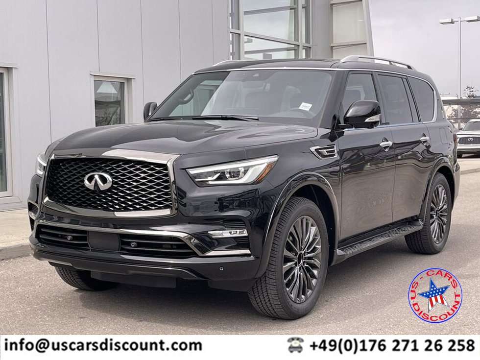 ISCOUNT - Ihr loyaler und preisgerechter PartnerDer neue 2024er INFINITI QX80Ein neu entwickeltes Meisterwerk in Design und Technik welches aus jedem Blickwinkel und für jeden Passagier amerikanischen Luxus ausstrahlt. Großzügig und mit allen Sicherheitdetails auf den letzten Stand der Technik ausgestattet, bietet er viel Platz und Komfort um alle Straßen des Lebens zu bewältigen. Ein Traumfahrzeug der obersten Luxusklasse!122.350 EUR Brutto Endverkaufspreis ex Sulingen, zulassungsfertig für Deutschland mit EU Umbau, inklusive deutscher TÜV Abnahme und Zulassungsbescheinigung Teil 2 (KFZ-Brief) und MWSt. Inklusive optionaler 2jähriger Premiumgarantie.SPEZIFIKATIONEN (metric System)Motor: 5.6L V8, VVED, DIG, 400 PS7 Gang Automatik mit adaptiver Schaltsteuerung (ASC)Schnee- und SchleppmodusSelbstnivellierung HinterradaufhängungGeschwindigkeitsabhängige sensitive LenkunterstützungBerganfahrhilfe Anhängerkupplung 22" x 8.0" Dunkle Alufelgen mit 275/50R22 H-bewerteten Allwetter Performance ReifenAutomatisches Ein-/Ausschalten LED-Fern-/Abblendlicht-Scheinwerfer mit automatischer NivellierungIntegrierte LED Nebellampen vorneElektrische abklappbare, beheizte und automatisch abblendende Aussenspiegel mit integrierten LED BlinkernDachrelingHintere getönte ScheibenRegensensorenTrittbretter in Wagenfarbe mit integriertem SpritzschutzUnterbodenfahrschutz (unter dem Kühler)Elektrisches Schiebedach (getöntes Glass)Beheiztes LederlenkradElektrisch verstellbare Lenksäule10-fach elektrisch verstellbare Fahrersitze und 2-fach Lordosenstützen8-fach elektrisch verstellbare Beifahrersitze und 2-fach Lordosenstützen2. Reihe: Kapitänsitze 3. Reihe: 60/40 elektrisch geteilte umklappbare und verstellbare SitzbankSelbstabblendender InnenrückspiegelIntelligenter TempomatAbstandskontrollassistINFINITI Intelligenter Schlüssel mit beleuchtetem DruckknopfanlasserFernanlasserBeheizte und gekühlte Vordersitze3 Zonen Klimaautomatik mit MikrofilterElektrische Heckklappe12.3" Infotainment Touchscreen Apple CarPlay und Android AutoBluetooth FreisprecheinrichtungFreisprech-SMS-AssistentAudio-Streaming kabellose Bluetooth TechnologieHD RadioBose Performance Series Audiosystem mit 17 LautsprechernHinteres UnterhaltungsystemAirbags: Vordersitze. Erweiterte mehrstufige Frontairbags und weitere Seitenairbags vorn/hinten. ÜberrollsensorKindersitzverankerungen (LATCH)Dynamische Kontrolle mit TraktionskontrollsystemReifendruckkontrollsystemFahrzeugsicherheitssystem (Alarm) und WegfahrsperreTrailer PendelregelungFrontale Notbremsung mit FußgängererkennungToter Winkel Infosystem (BSW) (BSI)Spurverlassenswarnung und -verhinderung360º Kamera mit BewegungserkennungVordere und hintere EinparkhilfssensorenFahreraufmerksamkeitswarnungZusatzoptionen (nicht inbegriffen):EU Anhängerkupplung.LPG-Prins Gasanlage mit doppeltem VerdampferPreise abhängig vom Devisenwechsel am VerkaufstagT1 Preis CFR Bremerhaven für Export (ohne Zoll, ohne EU Homologation, ohne MWSt) auf Anfrage. Sämtliche Angaben ohne Gewähr auf Richtig-Vollständigkeit -Irrtümer und Änderungen möglich. Zwischenverkauf vorbehalten. Angebot und Angaben inkl. Liefertermin sind unverbindlich und freibleibend! Vertragsgrundlage ist ausschliesslich der Kaufvertrag! Ein Kaufvertrag kommt nur durch schriftliche Bestätigung zustande! Der Verkäufer übernimmt keine Haftung für Tipp- und Datenübermittlungsfehler. Aufgeführte Ausstattungen sind ggfs. gesondert zu prüfen.Alle nordamerikanischen Fahrzeuge verlieren beim Verlassen des Kontinents ihre Werksgarantie. Aus diesem Grund offerieren wir Ihnen für deutsche Privatkunden gerne auf Wunsch eine ein- oder zweijährige hauseigene Zusatzgarantie.Wir sind langjährige Importeure amerikanischer Autos (aus Kanada, den A und Mexiko) für Händler und Privatkunden. Kontaktieren Sie uns für Informationen zu Ihrem Wunschfahrzeug. Unsere Marken sind unter anderem: Acura, Kia, Ford, Lincoln, Cadillac, Toyota, Lexus, Genesis, Mazda, Honda, Dodge, Hyundai, Infiniti, Nissan...Abbildun